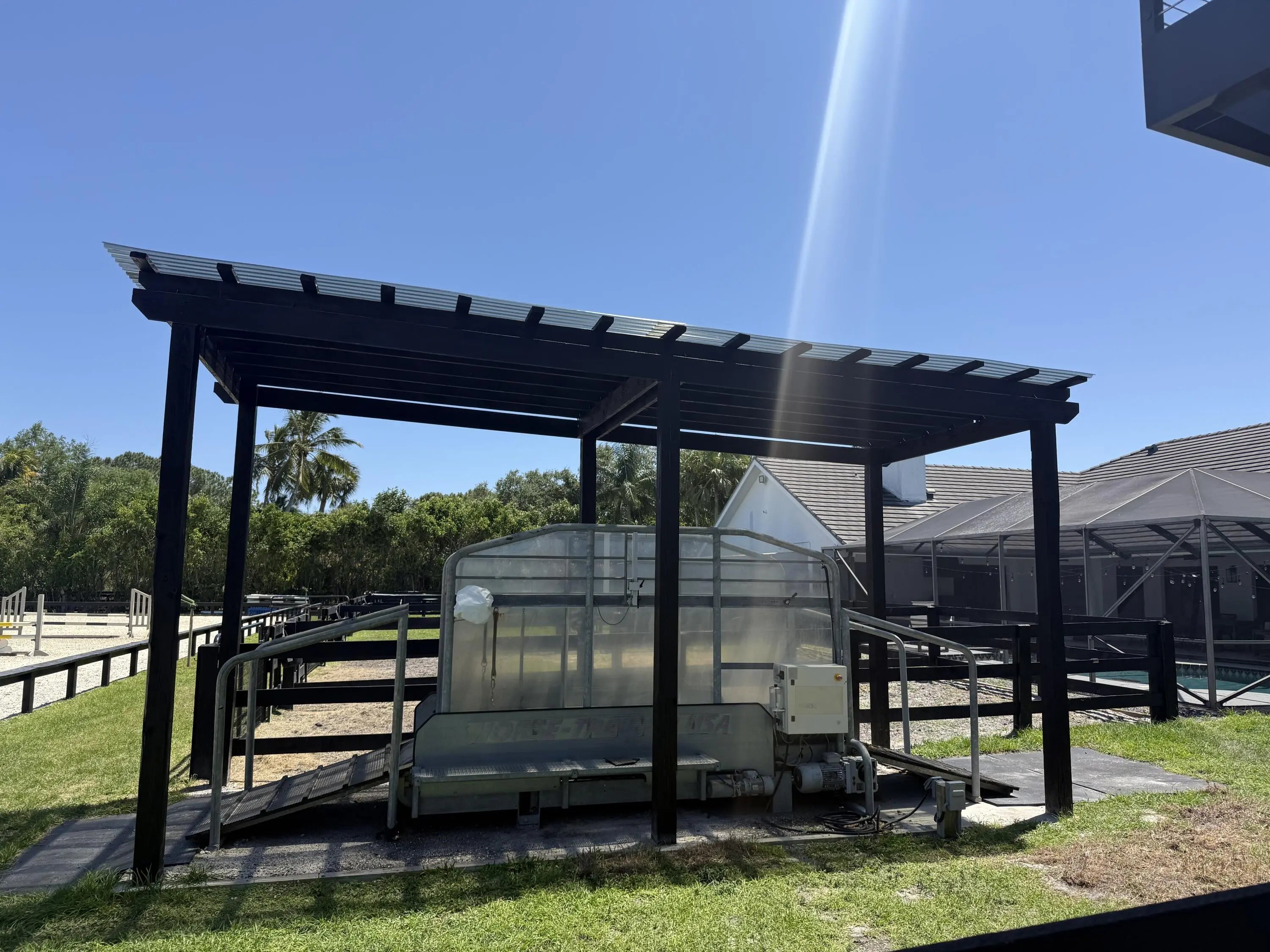 Brand new 8 stall barn with 1-2 available stalls nestled in beautiful Paddock Park 2 with a short hack to WEF. This barn features 12x12 stalls with rubber interlocking mats, custom water filler for buckets, camera, and two fans. There are 4 wash/grooming stalls with hot/'cold water, custom divider that features a saddle rack, drying rack and trough for supplies. A half bath with a dyson hand dryer, laundry room with subzero fridge/freezer, icemaker and storage. A/C hay room with a drain for easy clean up. Feed room with custom grain containers, quartzite countertop and cabinets above for supplements. Tack room features 12 saddle racks, bridle and girth hooks and ceiling to floor cabinets for extra storage. Available for Season, Off Season and Annual