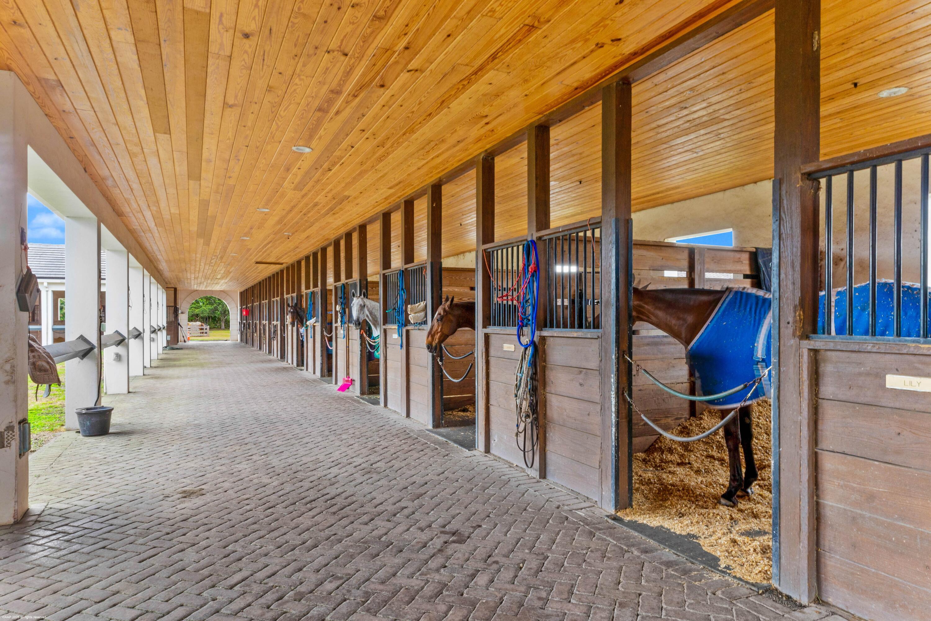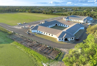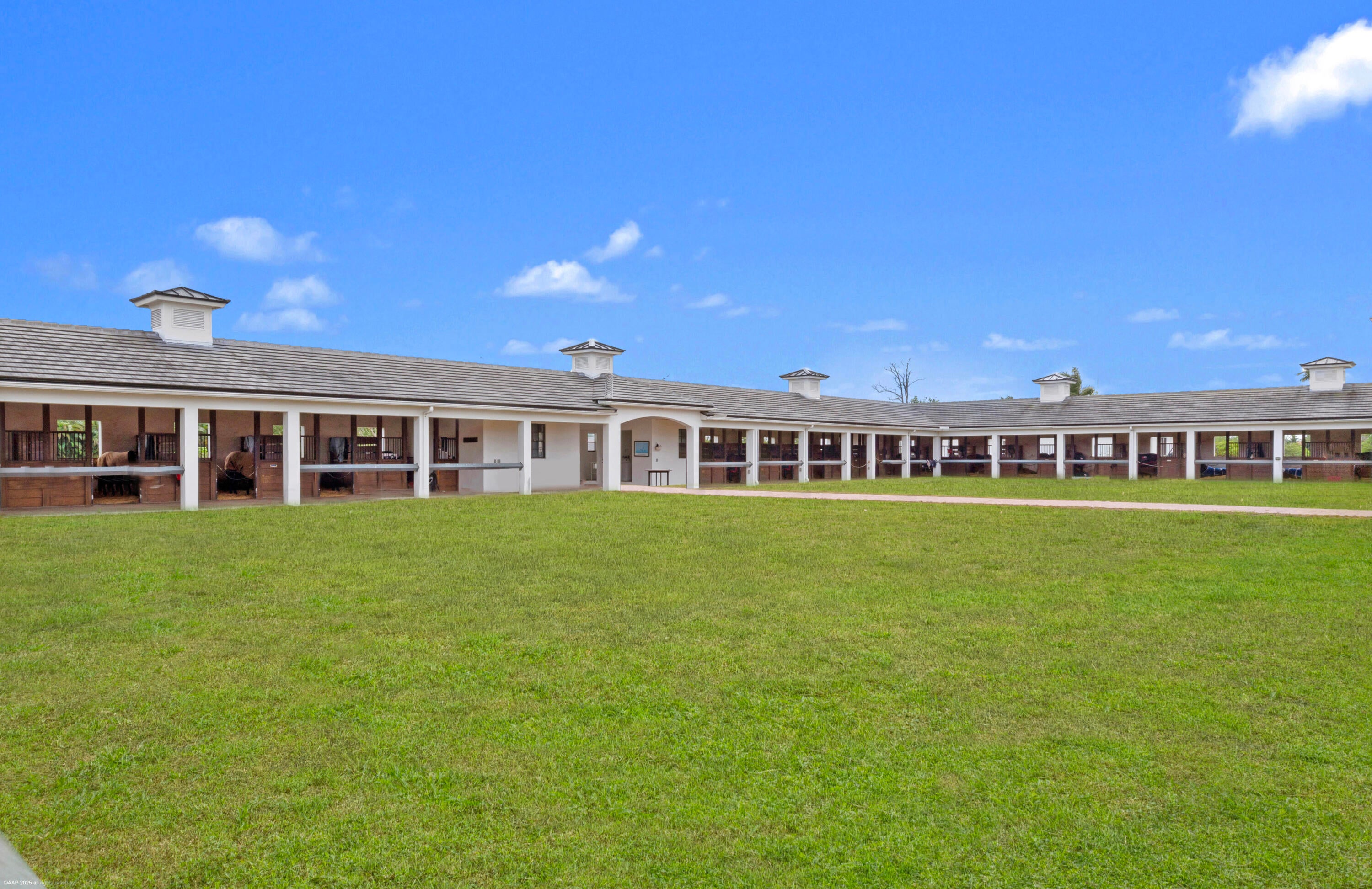 Reduced $7,500,000. One-of-a-kind opportunity to own a 46.96 acre equestrian facility in a prime Wellington location on a paved road and with no homeowner's association. The property boasts 4 stables, totaling175 stalls, full size polo field with exercise track, a second stick & ball practice field, maintenance garage and two staff houses. Two new show barns were built in 2024, one with 52 stalls & the other with 59, it also features a 2nd floor viewing room with balcony overlooking the polo fields. The original courtyard-barn holds 48 horses and the over flow barn has 16 stalls. The staff houses each have 4BR & 4Bths. The property is comprised of multiple parcels which could lend itself to future subdivision. This farm has unlimited potential for all equestrian disciplines. A must see!