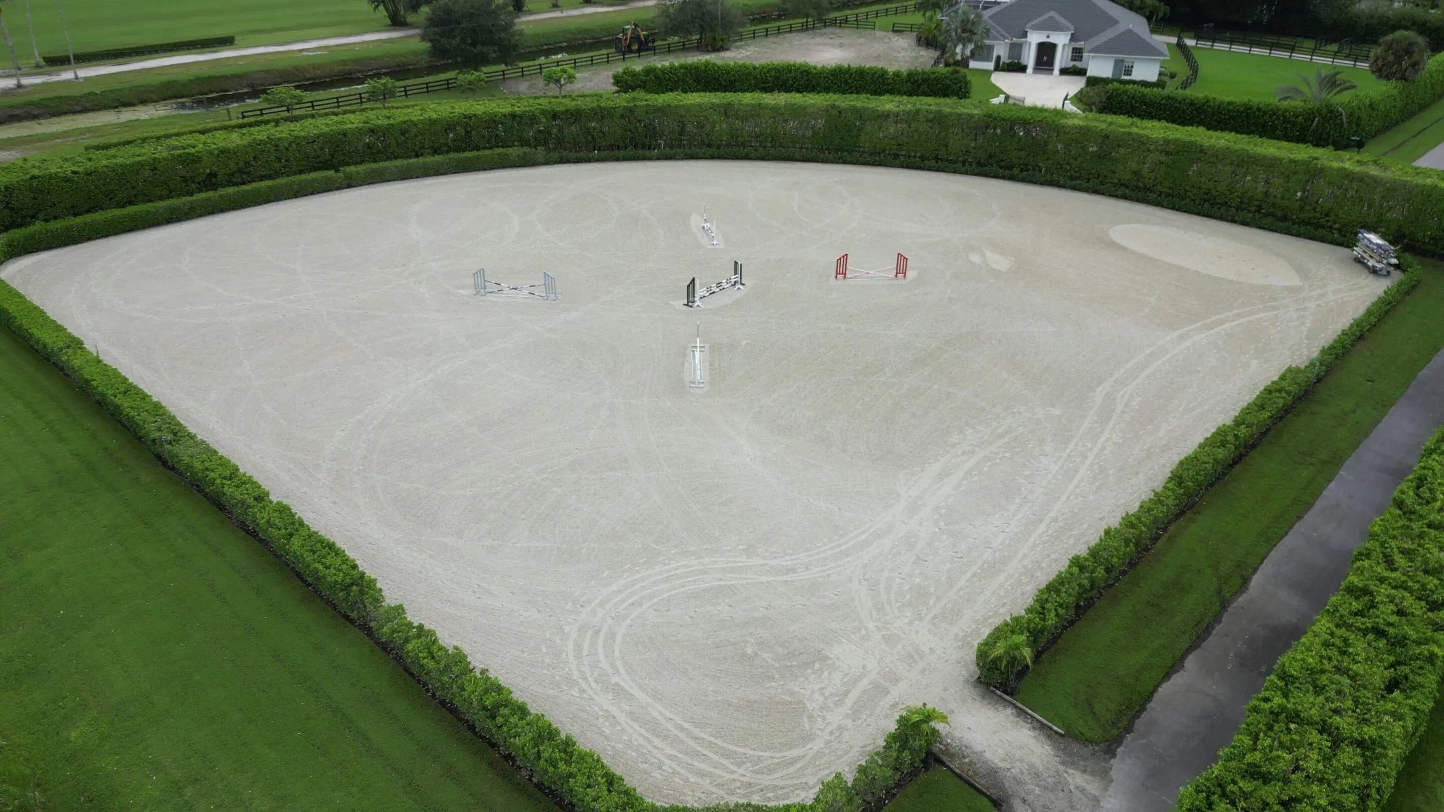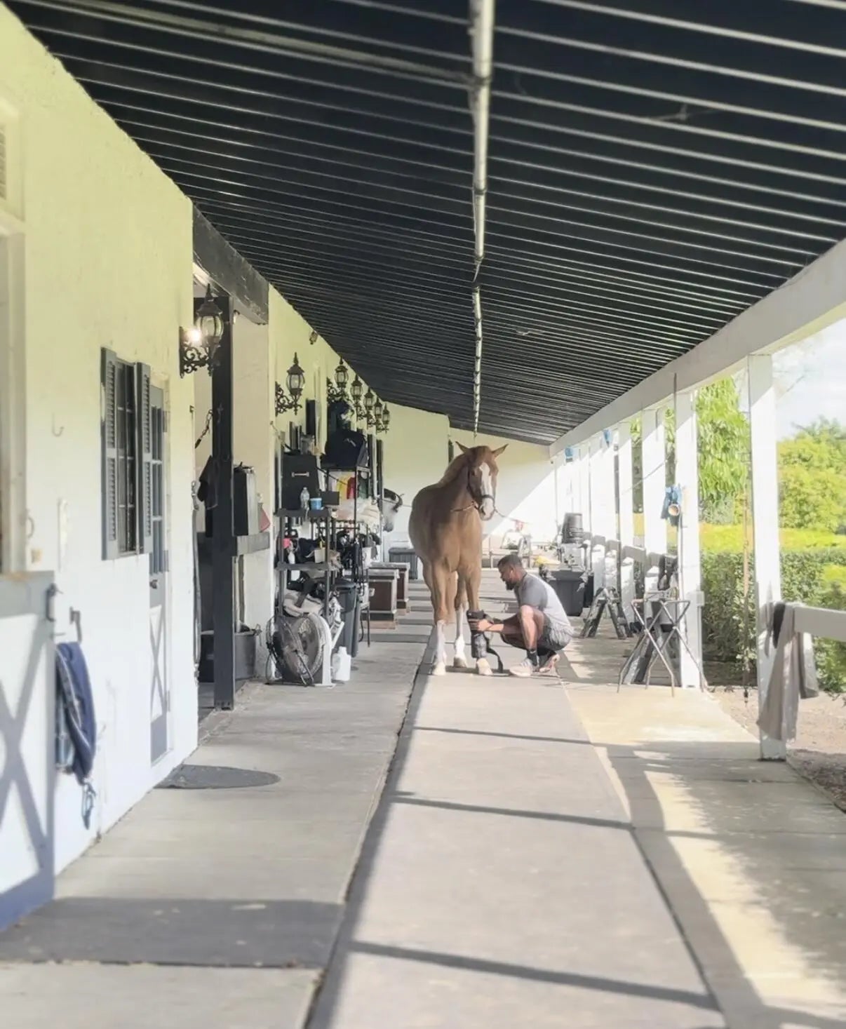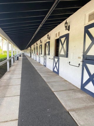 Beautiful 24 stall barn with 10 stalls available. Round pen and walker arena