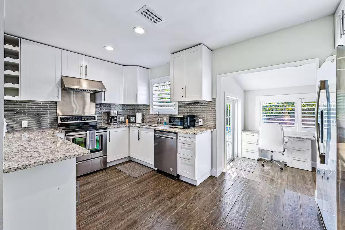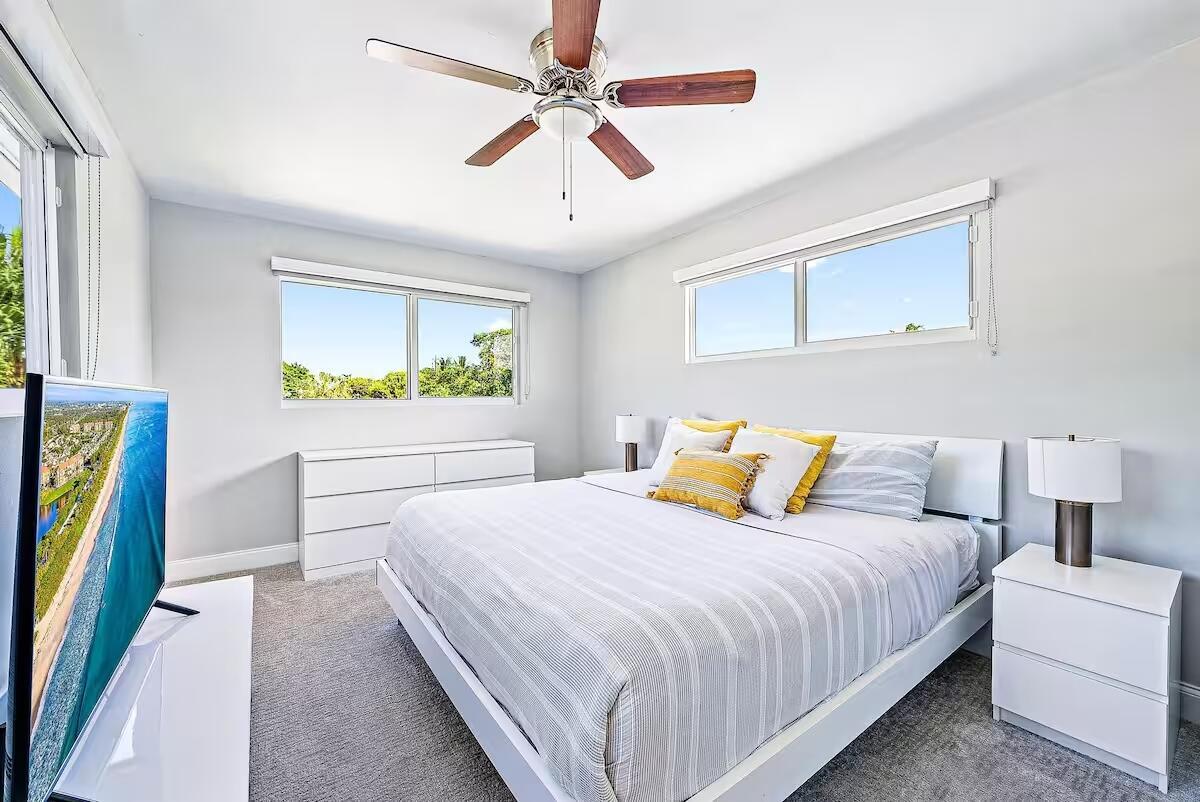 Introducing a newly renovated and meticulously remodeled 3-bedroom, 3-bathroom residence, a true South Florida retreat nestled in the heart of West Palm Beach. Thoughtfully reimagined with a redesigned open floor plan, this exquisite home features two spacious bedrooms and two full baths on the first floor, while the private upstairs owner's suite boasts a walk-in closet and a luxuriously appointed en-suite bath with dual vanity sinks. Step outside to an ultra-private, lushly landscaped backyard, where an expansive swimming pool and a covered lanai create the perfect setting for quintessential South Florida living. Offered fully furnished. Ideally situated minutes from dining, shopping, pristine beaches, PB Island, Kravis Center, and PBI Airport. The very best of PB, at your doorstep!