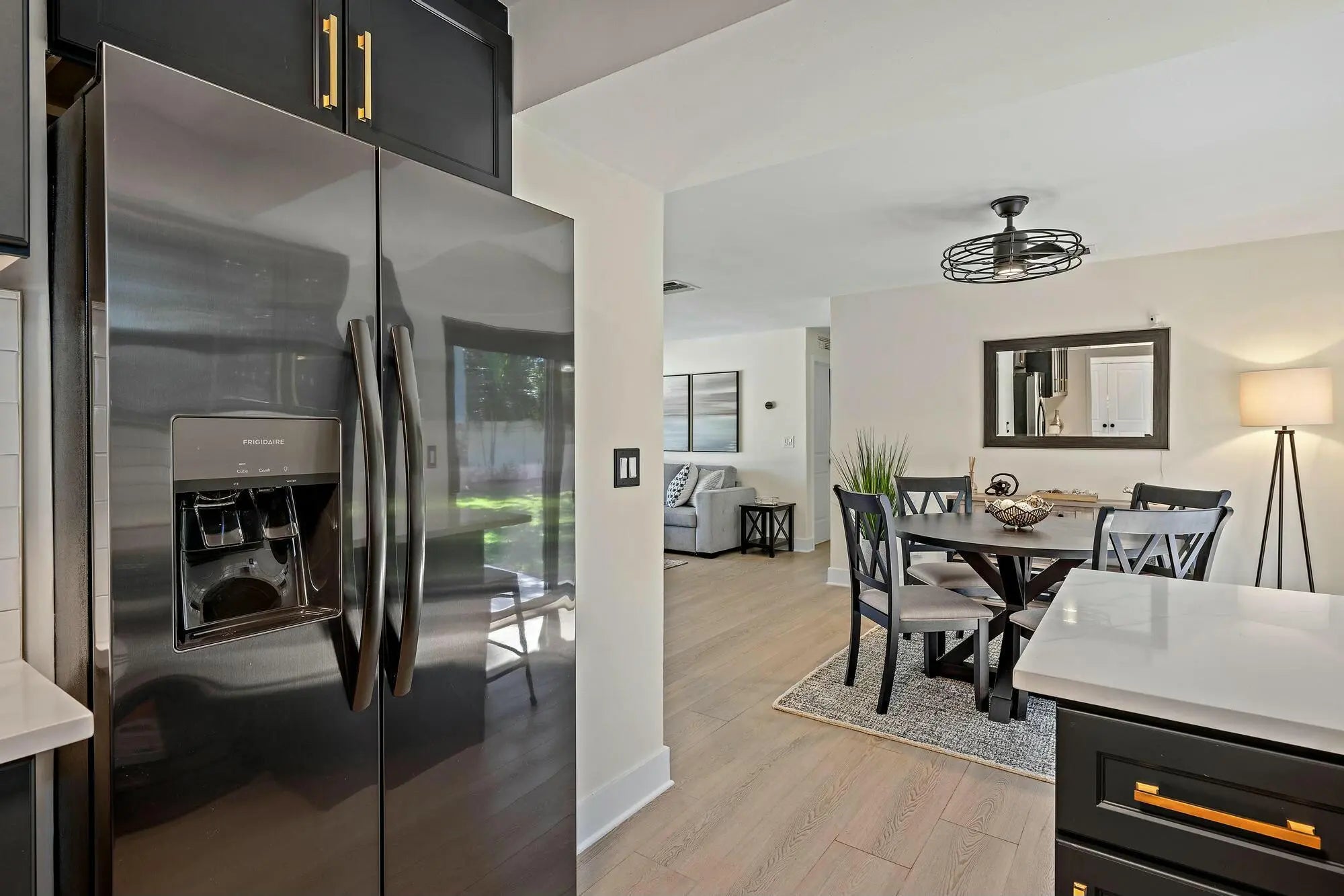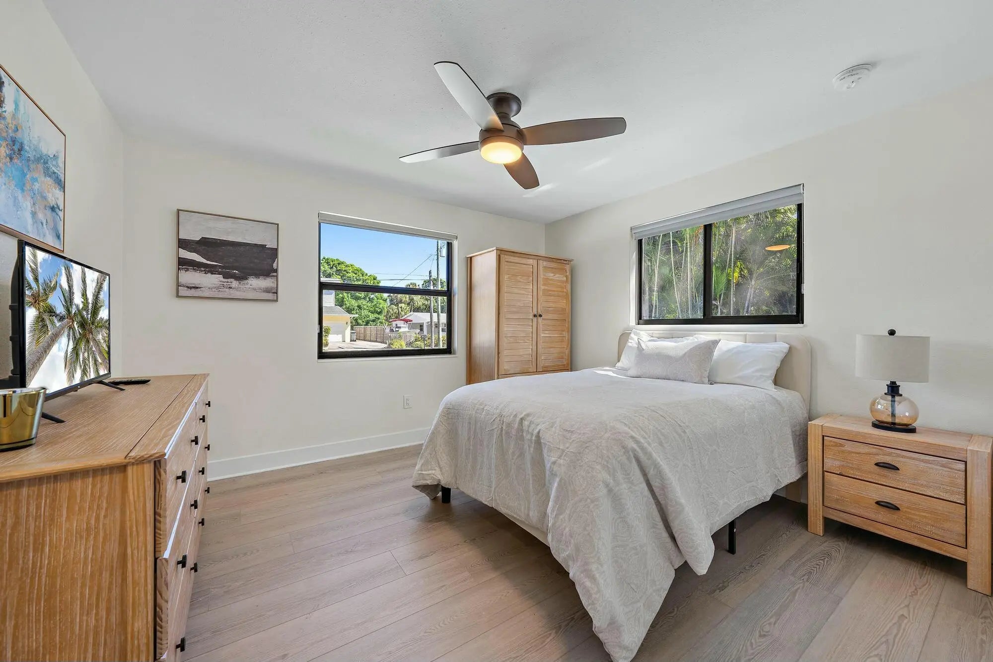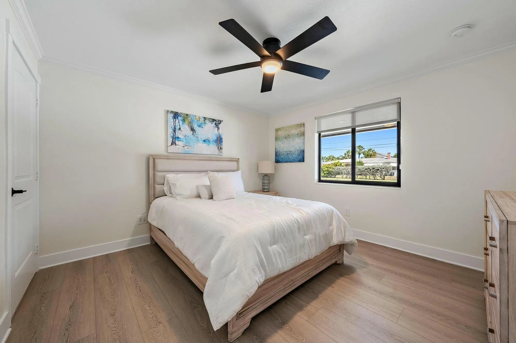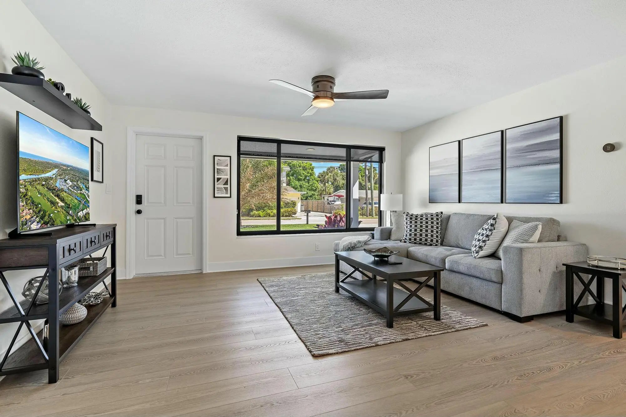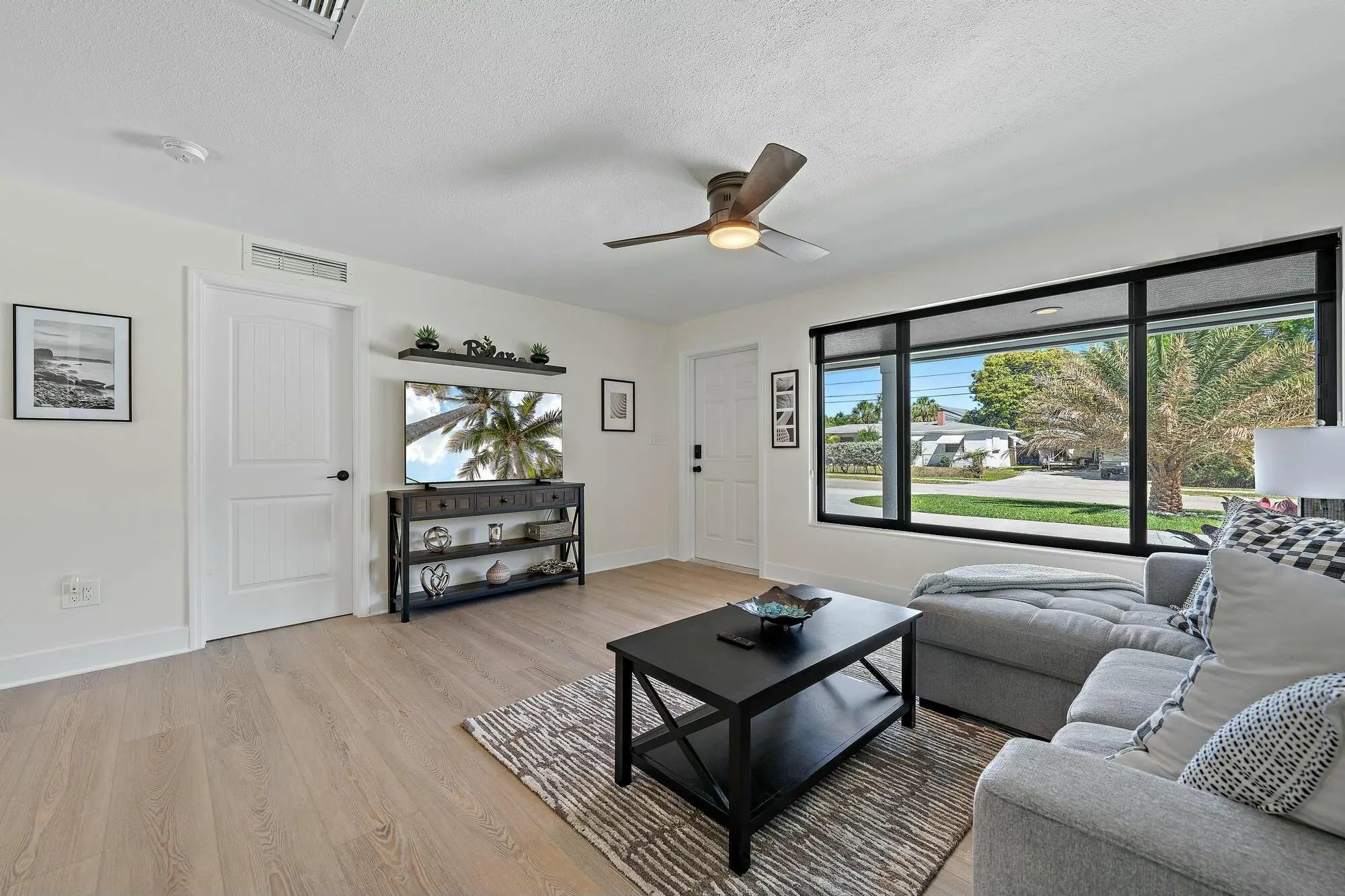 This beautifully renovated 3-bedroom, 2-bathroom home in Palm Beach Gardens is move-in ready! Featuring brand-new kitchen cabinets, countertops, appliances, impact windows, a new roof, gutters, and freshly painted interiors and exteriors, this home has been updated from top to bottom. Both bathrooms have been remodeled, and new flooring runs throughout the entire home.Situated on one of the largest lots in the neighborhood (.23 acres), the property boasts a spacious backyard with a concrete privacy wall--perfect for outdoor living. The converted garage now serves as a den, adding extra living space. Additionally, the home features all-new irrigation, fresh sod throughout the yard, and new plantings, enhancing its curb appeal and outdoor space.