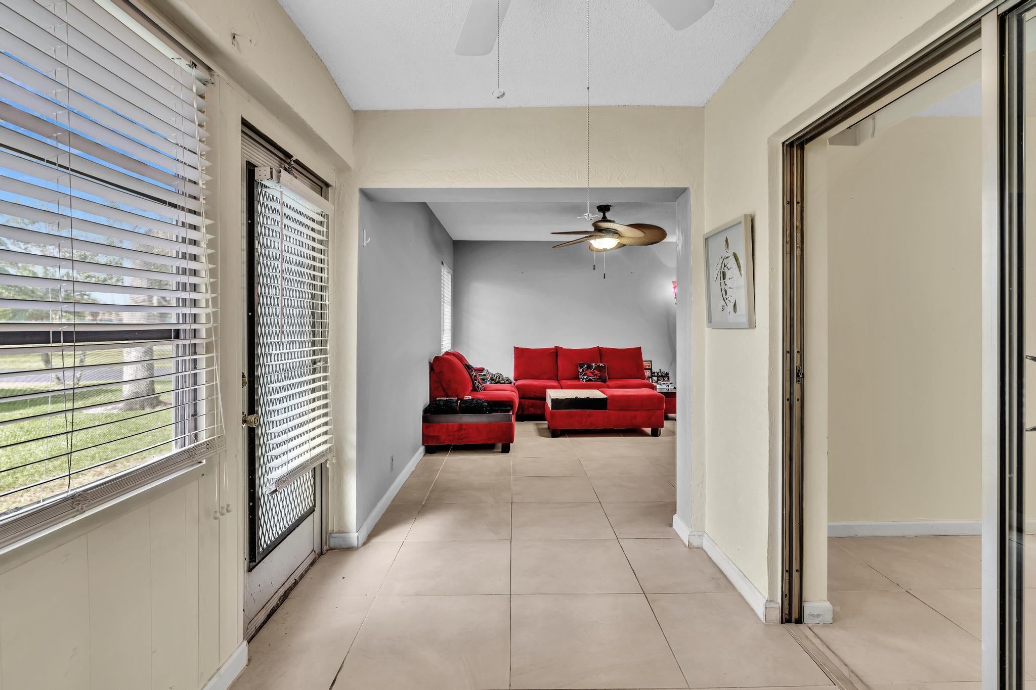 Welcome to 8736 Tyrone Terrace, Unit D, a beautifully updated 2-bedroom, 2-bathroom corner villa with a den, nestled in the serene 55+ gated community of Whisper Walk in Boca Raton. This meticulously maintained home offers an inviting open floor plan with neutral tones throughout.Interior Features: Spacious Living Area: The Florida room seamlessly extends the living space, providing a bright and airy atmosphere under air conditioning. Updated Kitchen: Equipped with modern appliances and ample cabinetry, perfect for culinary enthusiasts. Master Suite: Generously sized with multiple closets, offering abundant storage. Additional Highlights: Brand new glass front door, tile flooring throughout (no carpet), and a full-size washer and dryer for your convenience.Community Amenities: Whisper Walk spans 300 acres with 11 picturesque lakes and offers a plethora of amenities: " Recreation: 8 lighted tennis courts, 4 pickleball courts, a large pool with deck and spa. " Wellness: Fitness center and sauna. " Clubhouse: Features billiards, library, card room, and a stage for events. Maintenance Includes: " Gated security " Building insurance " Water " Basic cable TV and internet " Lawn care Prime Location: Situated close to golf courses, premier shopping centers, fine dining establishments, major highways, and airports, this villa offers both tranquility and accessibility. Experience the best of active adult living in this delightful villa at Whisper Walk. Schedule your private tour today!