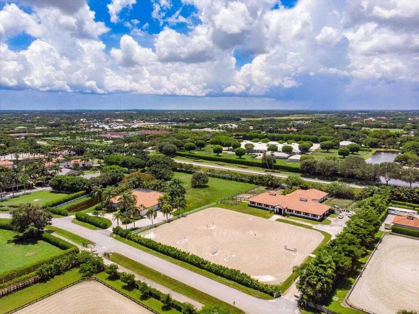 Your Gorgeous Dream Farm awaits in coveted Saddle Trail! With an unparalleled 0.25 mile hacking distance from WEF, this farm is made for the discerning equestrian family. Unrivaled in proximity and amenities, you can take the beautiful, shaded VIP bridle path directly to showgrounds in mins and enjoy all of the private trails. This newly renovated farm is showstopping and features 15+6 rear stalls (21 total), high-end finishes accenting the space. Beautiful tongue and groove vaulted ceilings and wide aisles feel so nice. The 185'x140' arena was just enhanced and is ready for you and your horses. There are 11 lush, oversized paddocks with gorgeous pathways and beautiful trees that line the property. Barn also features a lovely apt and separate studio, 2 AC tack rooms, lg feed room.