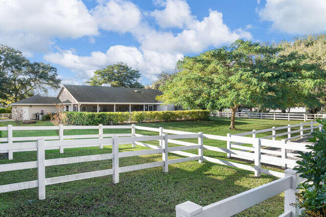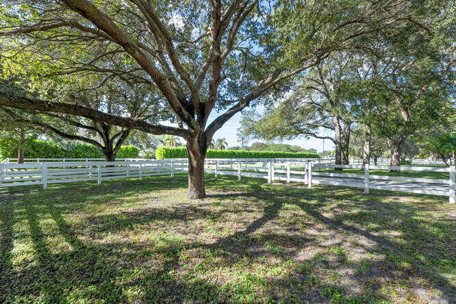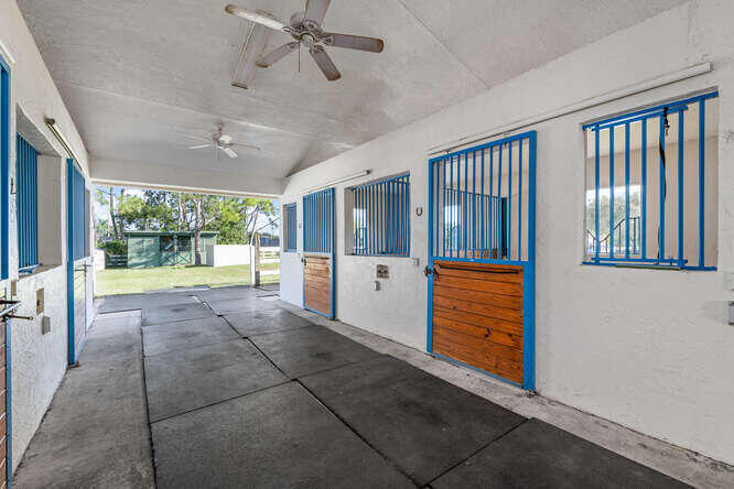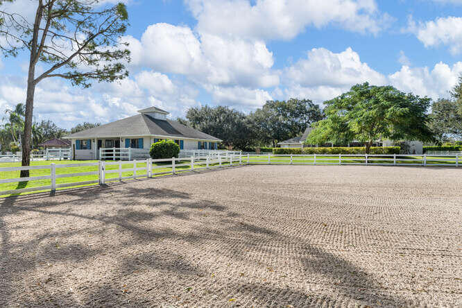 Live Oaks grace this beautiful Saddle Trail equestrian paradise, lending shade and tranquility to this 2+ ac farm located in one of theequestrian world's most sought after neighborhoods. Just a short 10 minute walk/trot hack to the show grounds, the property features a main barn with 412'x12' matted stalls, 2 with walk-outs and all with Nelson automatic waterers; fly system, fans in the 12+' center aisle and stalls; hot & cold water onboth sides of the aisle along with the 2 wash stalls. 12'x24' riders' lounge with full bath; 12'x12' tack room; 12'x12' laundry/utility room; 12'x10' garage;12'x10' hay room all with central AC. There is an additional barn on the property with 2 12'x14' stalls for overflow. You will love riding on the excellent footing
