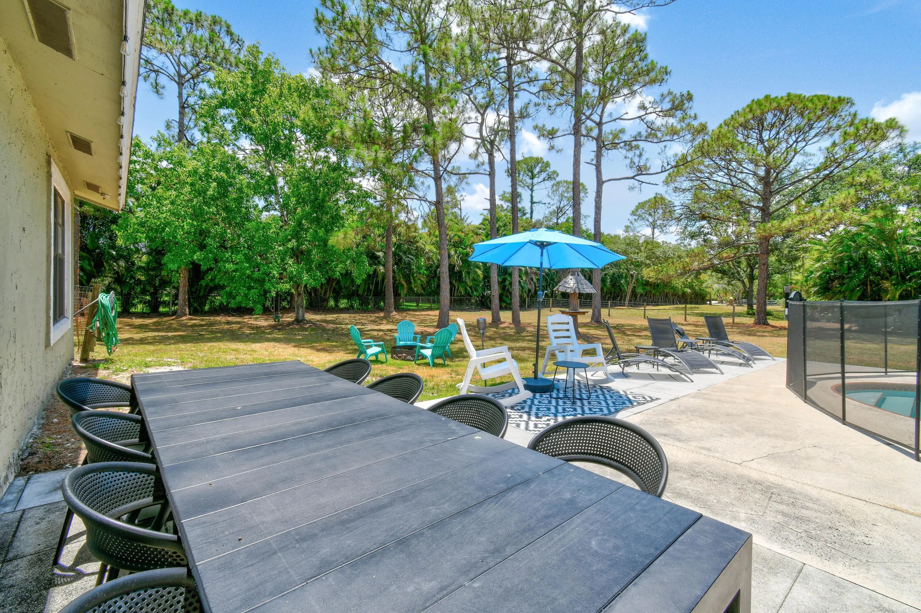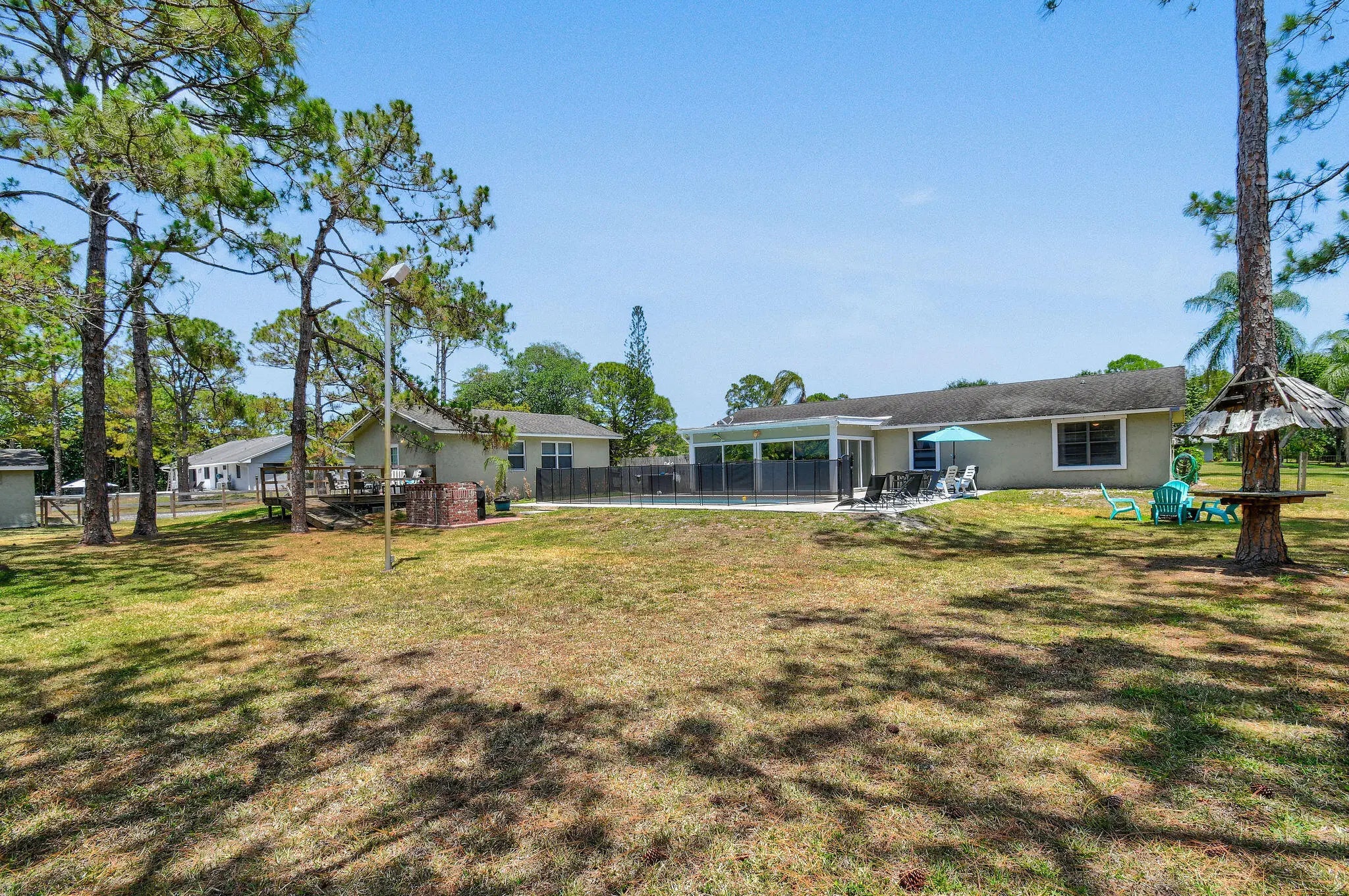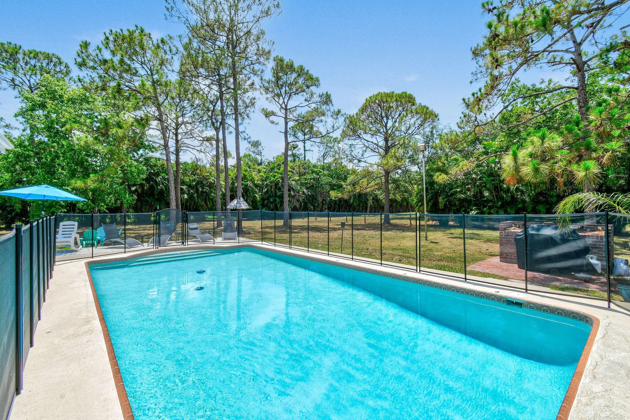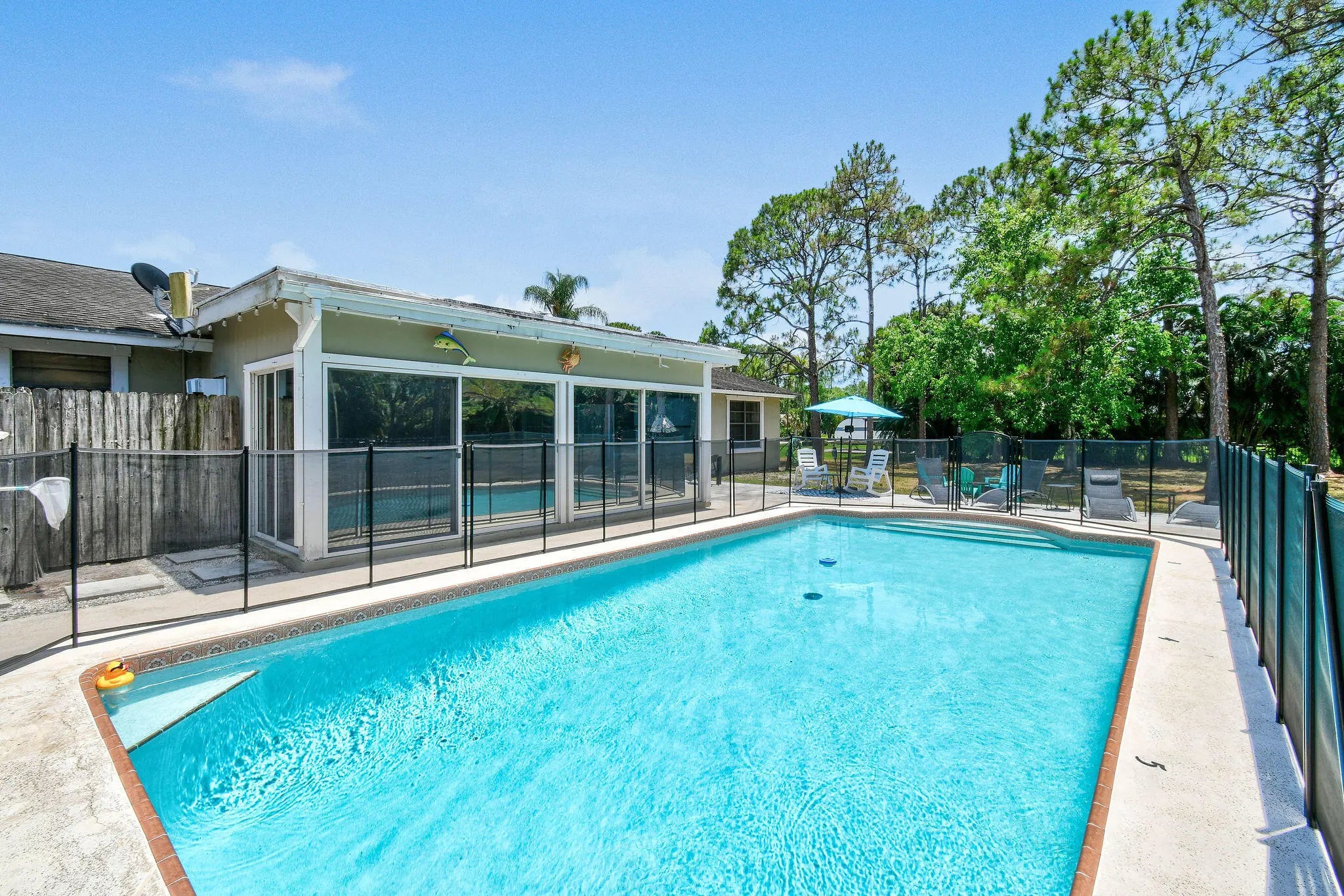 Welcome to this beautifully furnished and fully renovated 4BR/2BA home in desirable Palm Beach County Estates. This bright and open home features a spacious kitchen with quartz countertops, stainless steel appliances, a large island, and plenty of cabinetry. Each bedroom offers generous space and ample closets. The private owner's suite includes a walk-in closet and elegant ensuite bath. Enjoy the Florida room with bar and pool table, leading to a heated pool, grilling area, and massive 1.1-acre backyard with workshop. Huge driveway includes 30 & 50 amp RV receptacles. Tenant pays yard maintenance, water, electric, cable & internet.This stunning home offers resort style living and convenience in an unbeatable location, near A rated schools, restaurants, shops , golf and beaches.