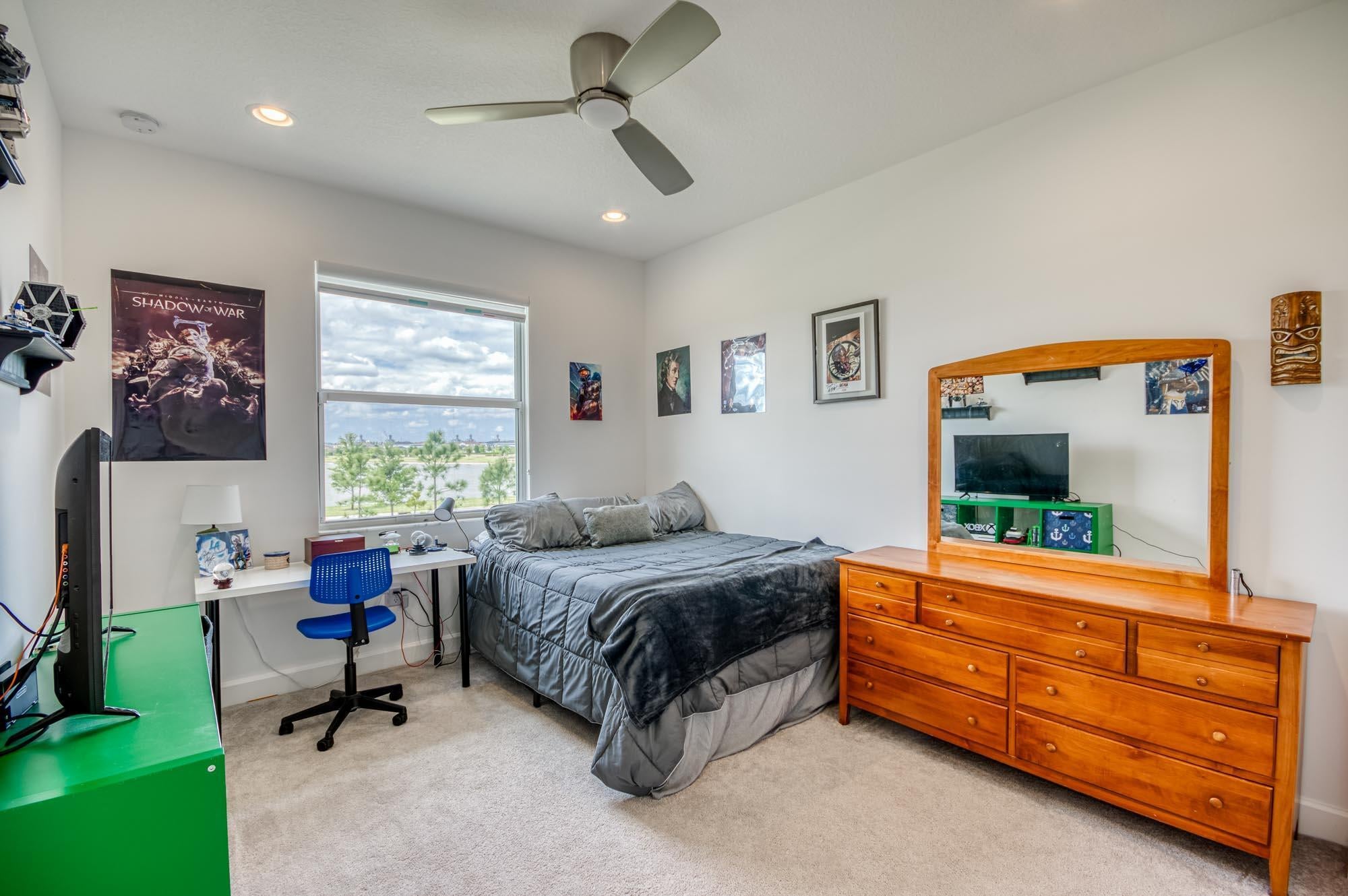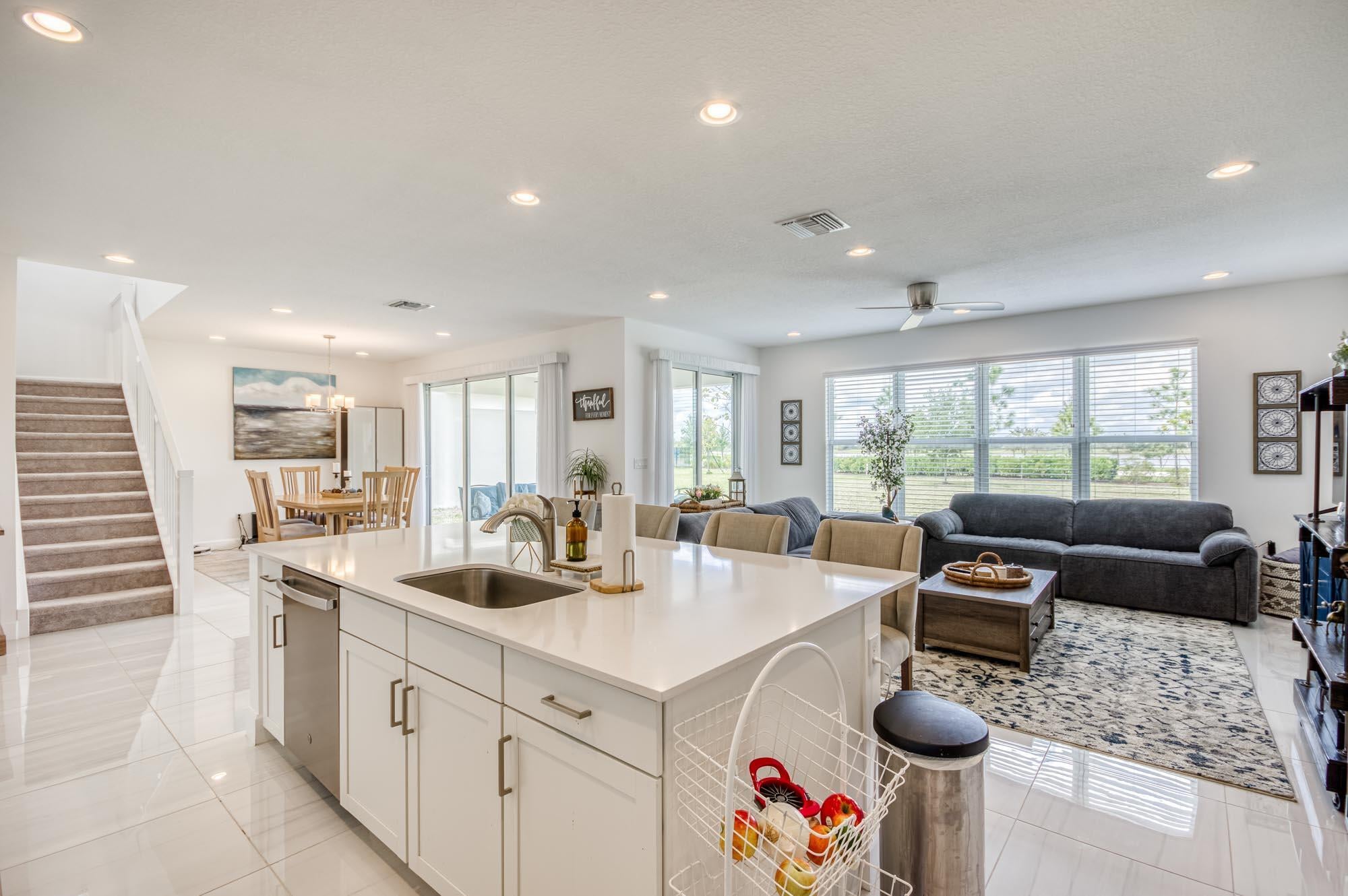Enjoy breathtaking, unobstructed lake views and incredible sunsets from this bright and inviting 4BR/3BA home in the heart of Arden. Built in 2022, this home offers a screened in patio, a gourmet kitchen featuring a built-in gas range, double oven, quartz countertops, chef hood, and a large central island. The open-concept layout features a downstairs guest suite, and a spacious loft upstairs that can easily become a 5th bedroom. The primary suite includes two walk-in closets and a modern en-suite bathroom with dual vanities and granite counters. Relax on the covered lanai overlooking the lake with plenty of room to add a pool. Best of all, a brand-new elementary school is opening within walking distance next year, adding to Arden's long list of family-friendly amenities, trails, andvibrant community life.