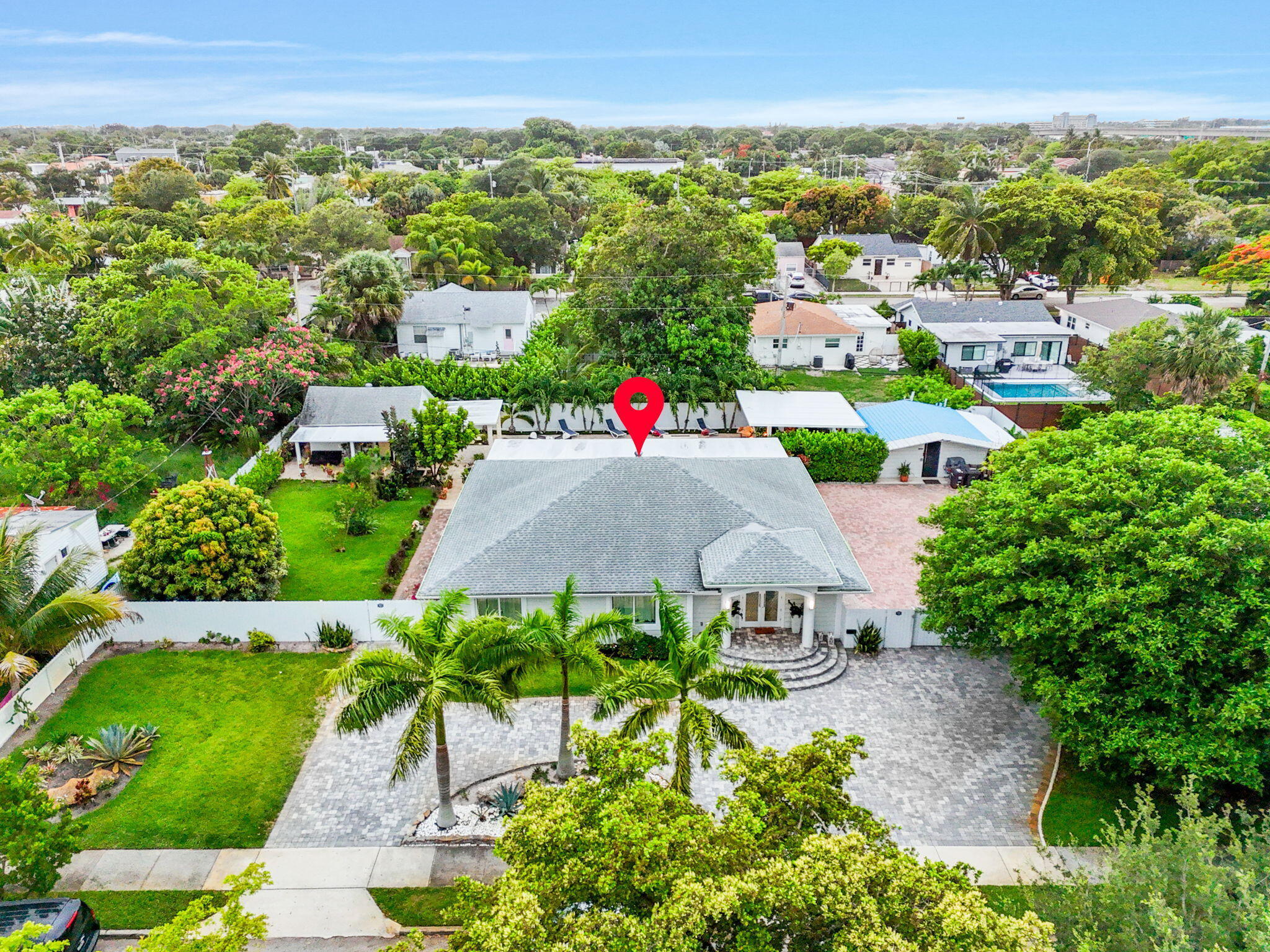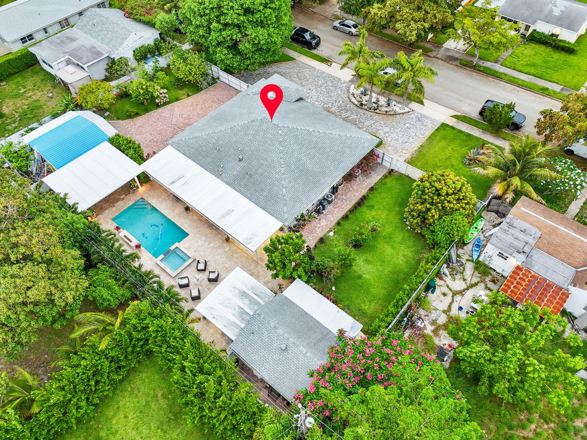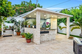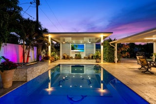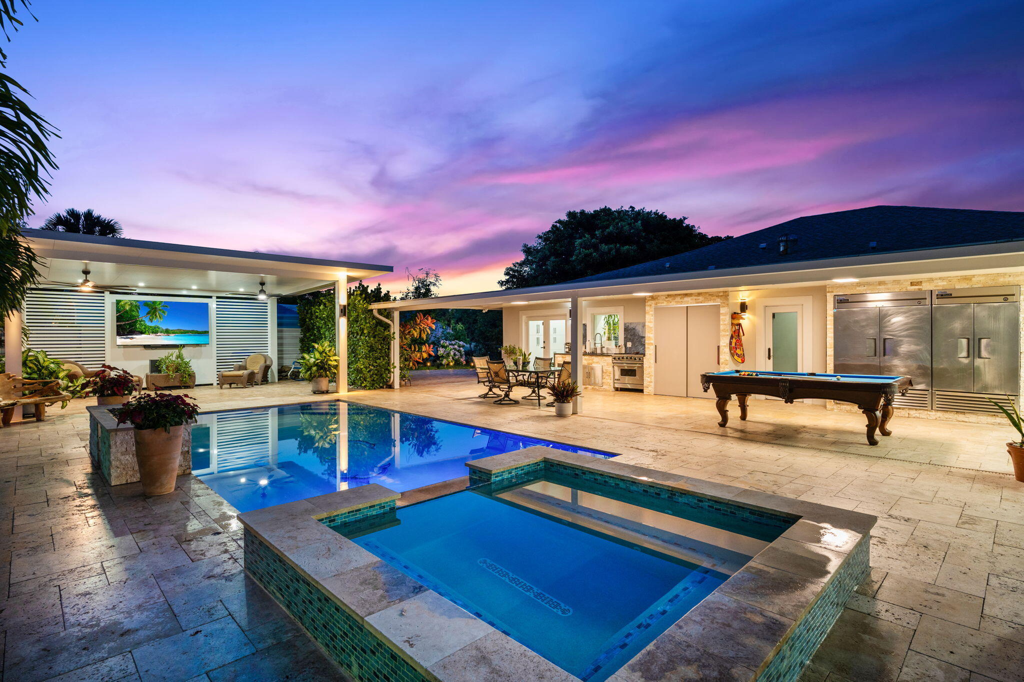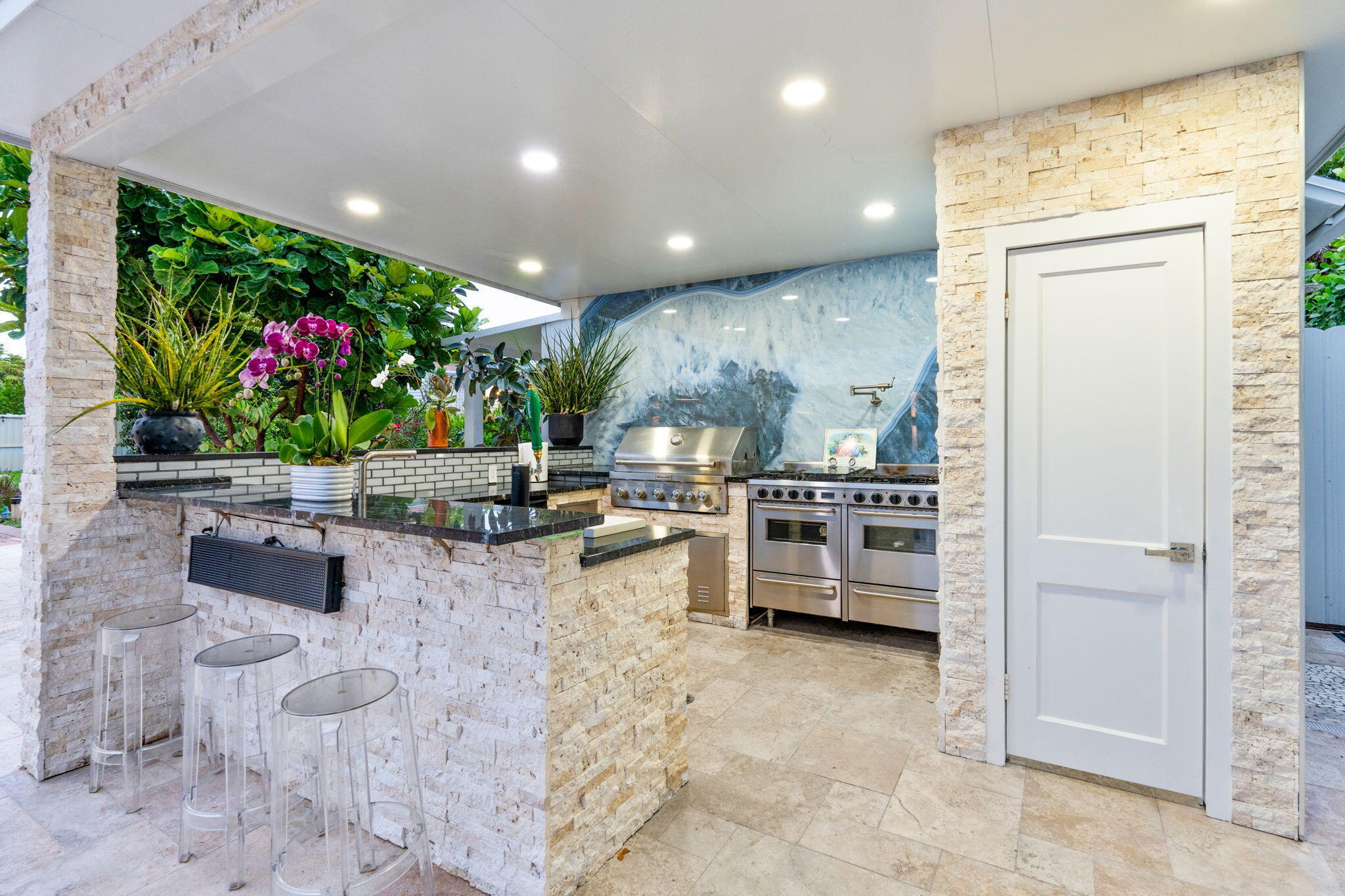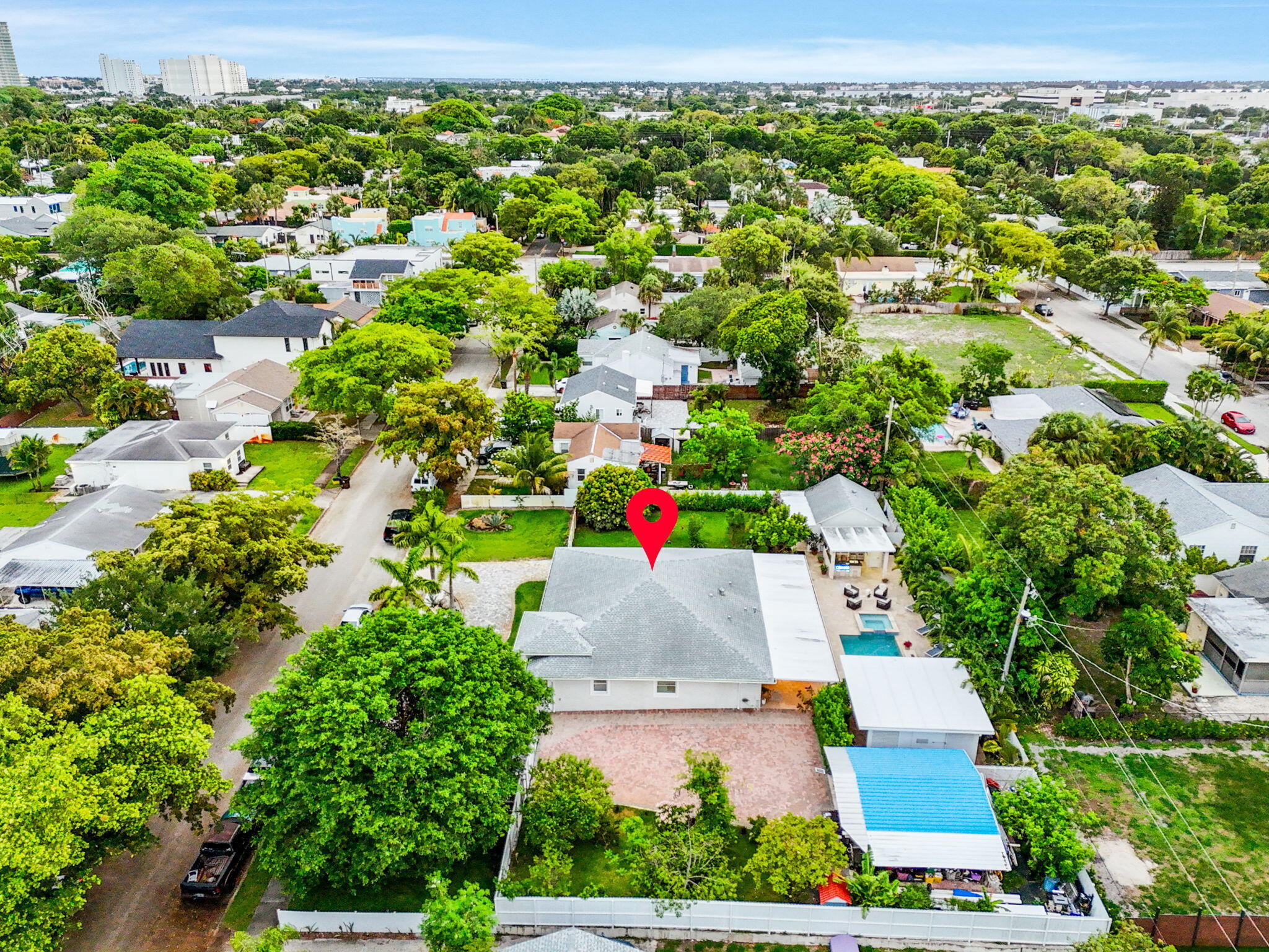 Price Improvement! Step into your own private paradise with this exquisitely renovated 5-bedroom, 4.5-bathroom home including a ''Casita'' in the back. This property is perfectly situated on a rare TRIPLE LOT just under HALF an ACRE. Featuring approximately 2,700 sqft of living space, this custom-designed property was completely renovated late 2020 with top-quality finishes, impact windows and doors, and high-end details throughout. The main home offers a bright open layout with porcelain tile floors, a stunning chef's kitchen with sleek waterfall-edge quartz countertops, custom cabinetry, and premium stainless steel appliances -- one of three fully equipped gas kitchens on the property.The outdoor space is a true resort-style retreat, boasting a sparkling pool, spa, covered lounge with ceiling fans and TV, and a built-in summer kitchen with commercial-grade appliances and bar seating. The lush, fully fenced yard is lined with tropical landscaping and multiple fruit trees. The separate guest cottage or "Casita" with private entrance and a kitchenette offers excellent income potential as an Airbnb or the perfect space for in-laws.This one-of-a-kind home combines modern luxury, income potential, and unbeatable location in a booming neighborhood. Located just 5 minutes to Downtown West Palm Beach and PBI Airport.