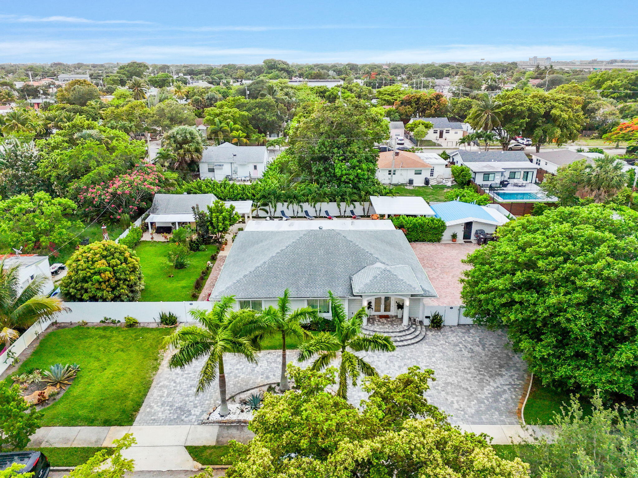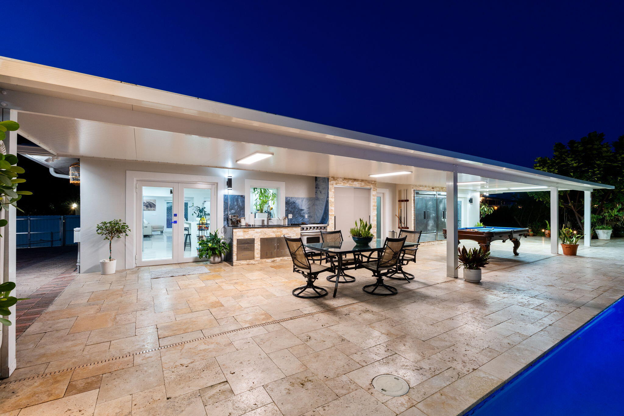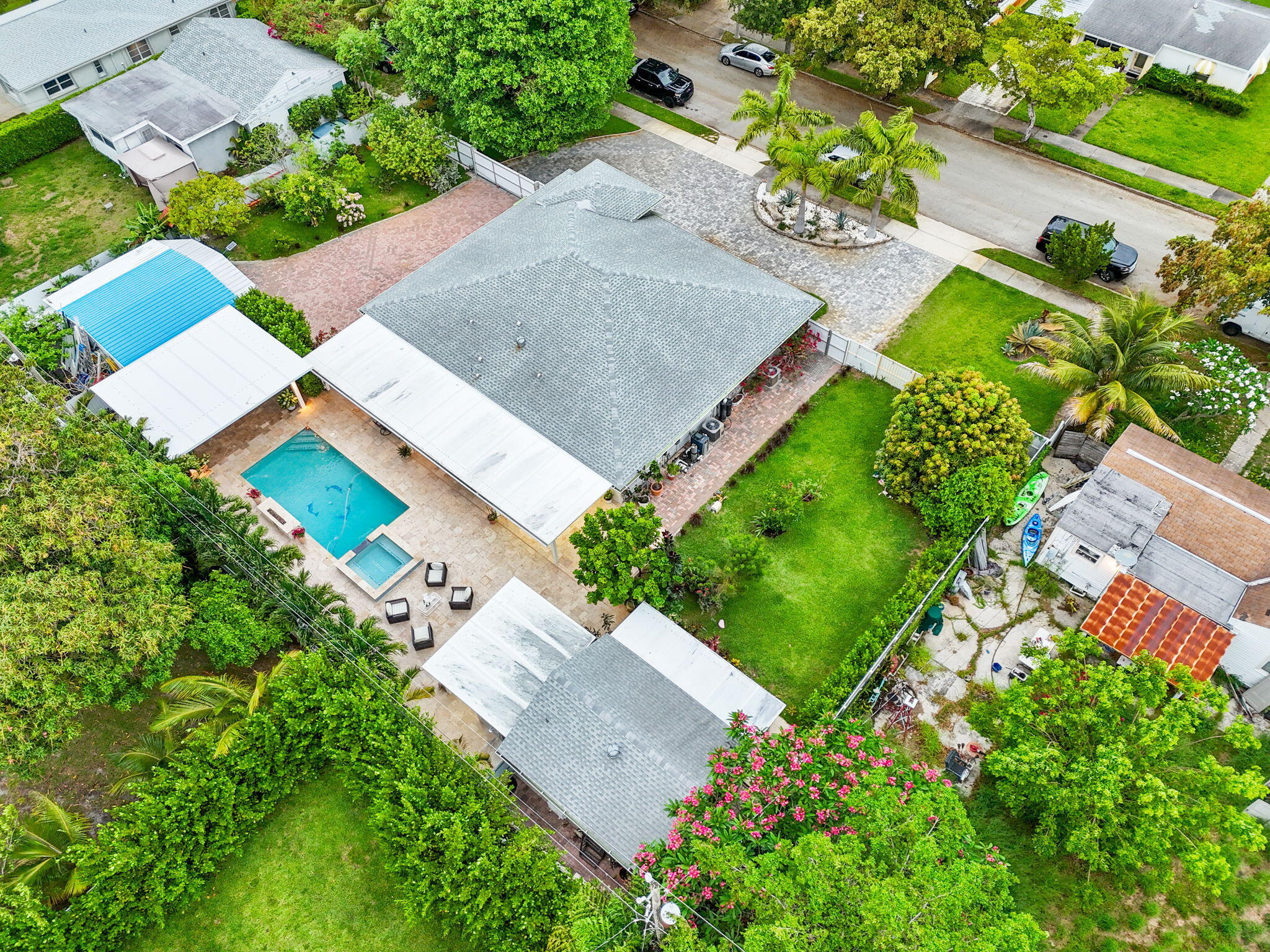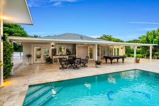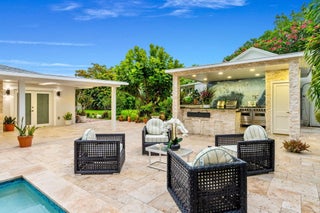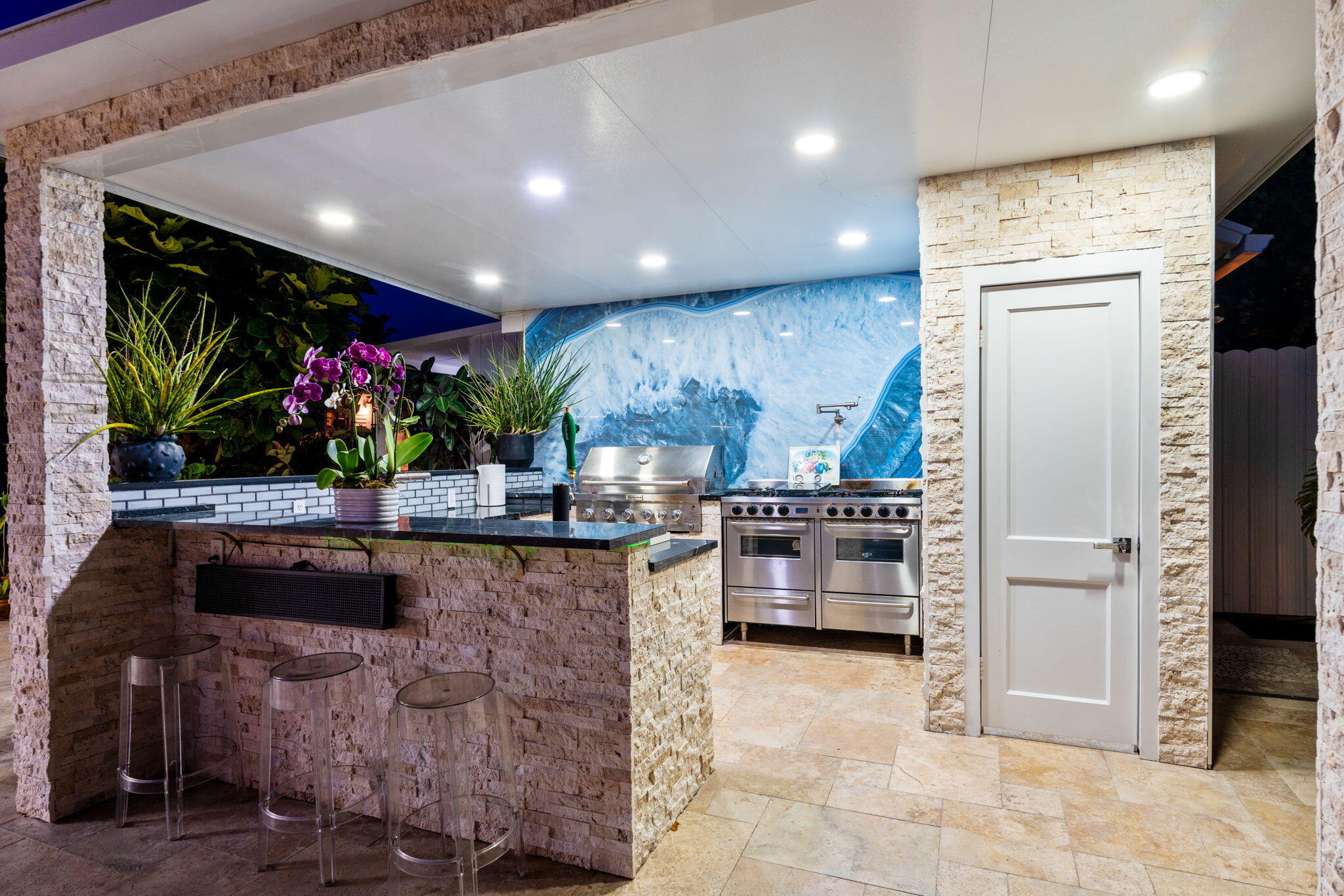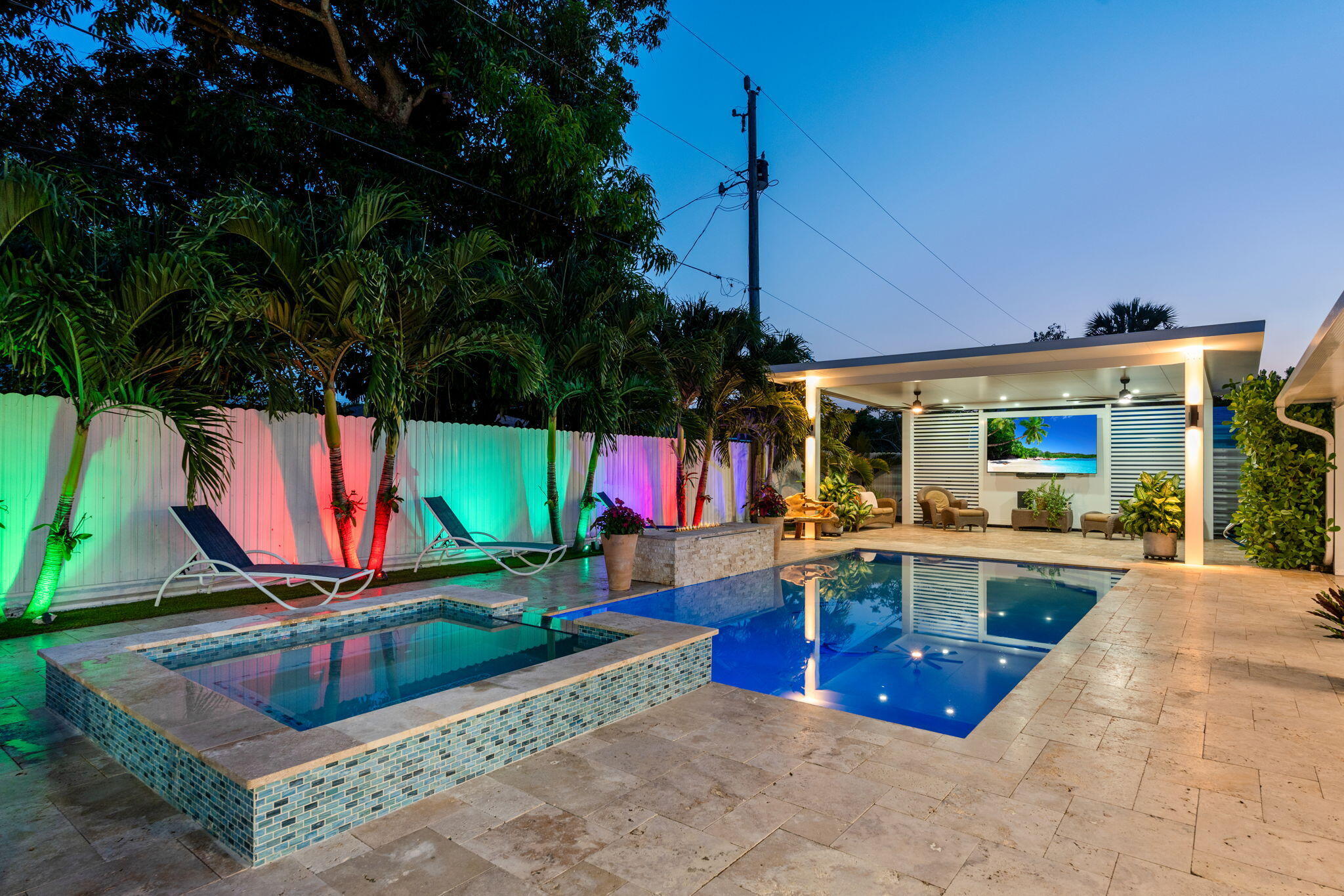 Price Improvement! Step into your own private paradise with this exquisitely renovated 5-bedroom, 4.5-bathroom home including a ''Casita'' in the back. This property is perfectly situated on a rare TRIPLE LOT just under HALF an ACRE. Featuring approximately 2,700 sqft of living space, this custom-designed property was completely renovated late 2020 with top-quality finishes, impact windows and doors, and high-end details throughout. The main home offers a bright open layout with porcelain tile floors, a stunning chef's kitchen with sleek waterfall-edge quartz countertops, custom cabinetry, and premium stainless steel appliances -- one of three fully equipped gas kitchens on the property.The outdoor space is a true resort-style retreat, boasting a sparkling pool, spa, covered lounge with ceiling fans and TV, and a built-in summer kitchen with commercial-grade appliances and bar seating. The lush, fully fenced yard is lined with tropical landscaping and multiple fruit trees. The separate guest cottage or "Casita" with private entrance and a kitchenette offers excellent income potential as an Airbnb or the perfect space for in-laws.This one-of-a-kind home combines modern luxury, income potential, and unbeatable location in a booming neighborhood. Located just 5 minutes to Downtown West Palm Beach and PBI Airport.