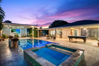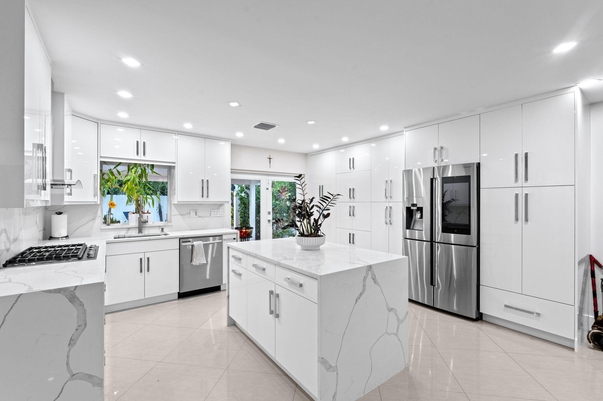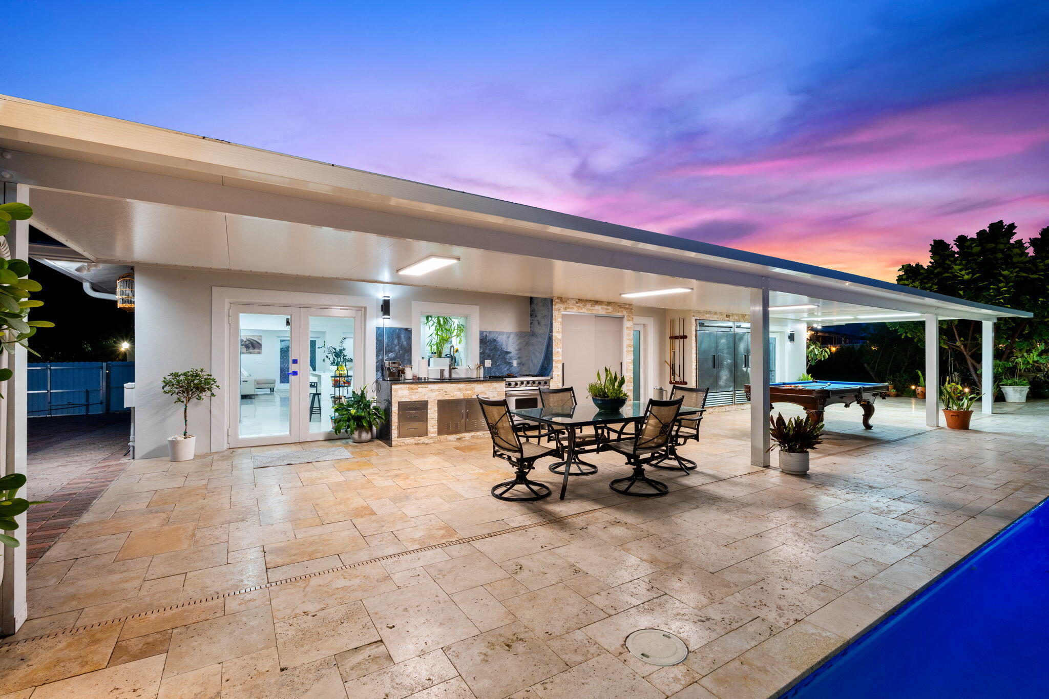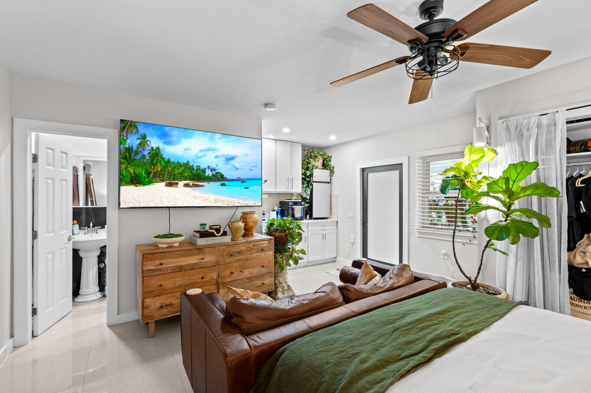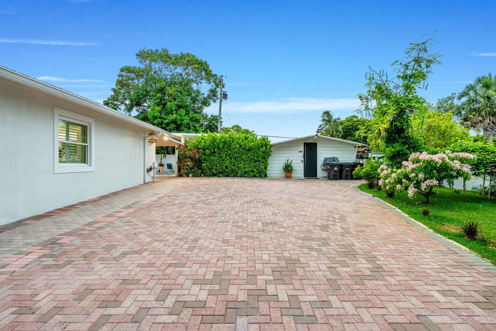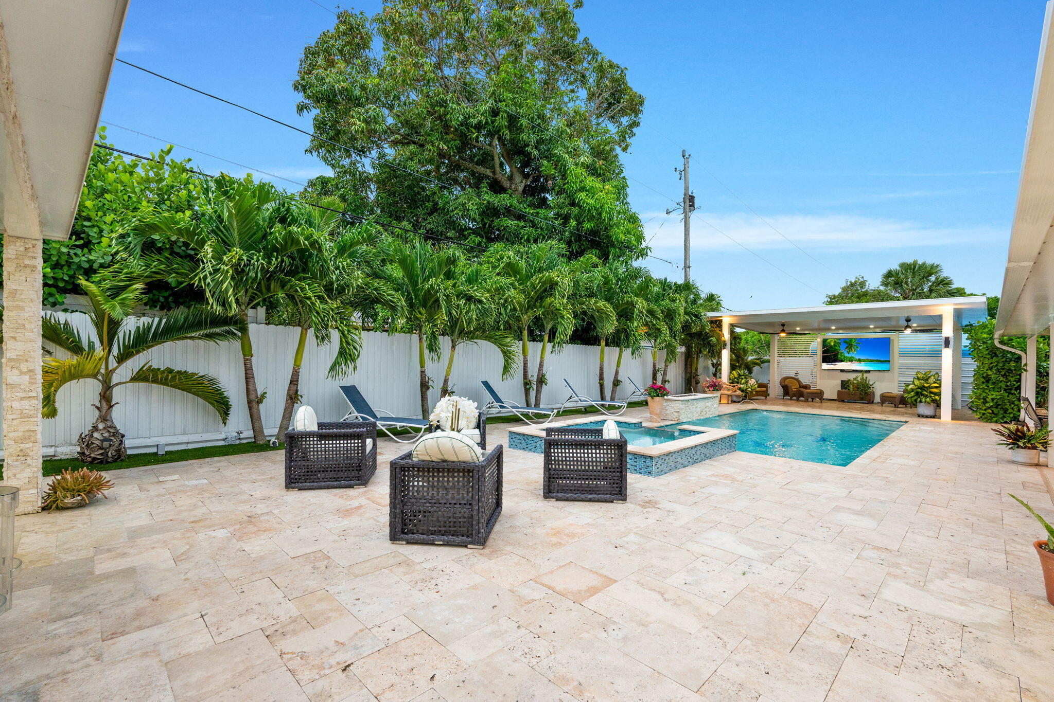 Price Improvement! Step into your own private paradise with this exquisitely renovated 5-bedroom, 4.5-bathroom home including a ''Casita'' in the back. This property is perfectly situated on a rare TRIPLE LOT just under HALF an ACRE. Featuring approximately 2,700 sqft of living space, this custom-designed property was completely renovated late 2020 with top-quality finishes, impact windows and doors, and high-end details throughout. The main home offers a bright open layout with porcelain tile floors, a stunning chef's kitchen with sleek waterfall-edge quartz countertops, custom cabinetry, and premium stainless steel appliances -- one of three fully equipped gas kitchens on the property.The outdoor space is a true resort-style retreat, boasting a sparkling pool, spa, covered lounge with ceiling fans and TV, and a built-in summer kitchen with commercial-grade appliances and bar seating. The lush, fully fenced yard is lined with tropical landscaping and multiple fruit trees. The separate guest cottage or "Casita" with private entrance and a kitchenette offers excellent income potential as an Airbnb or the perfect space for in-laws.This one-of-a-kind home combines modern luxury, income potential, and unbeatable location in a booming neighborhood. Located just 5 minutes to Downtown West Palm Beach and PBI Airport.