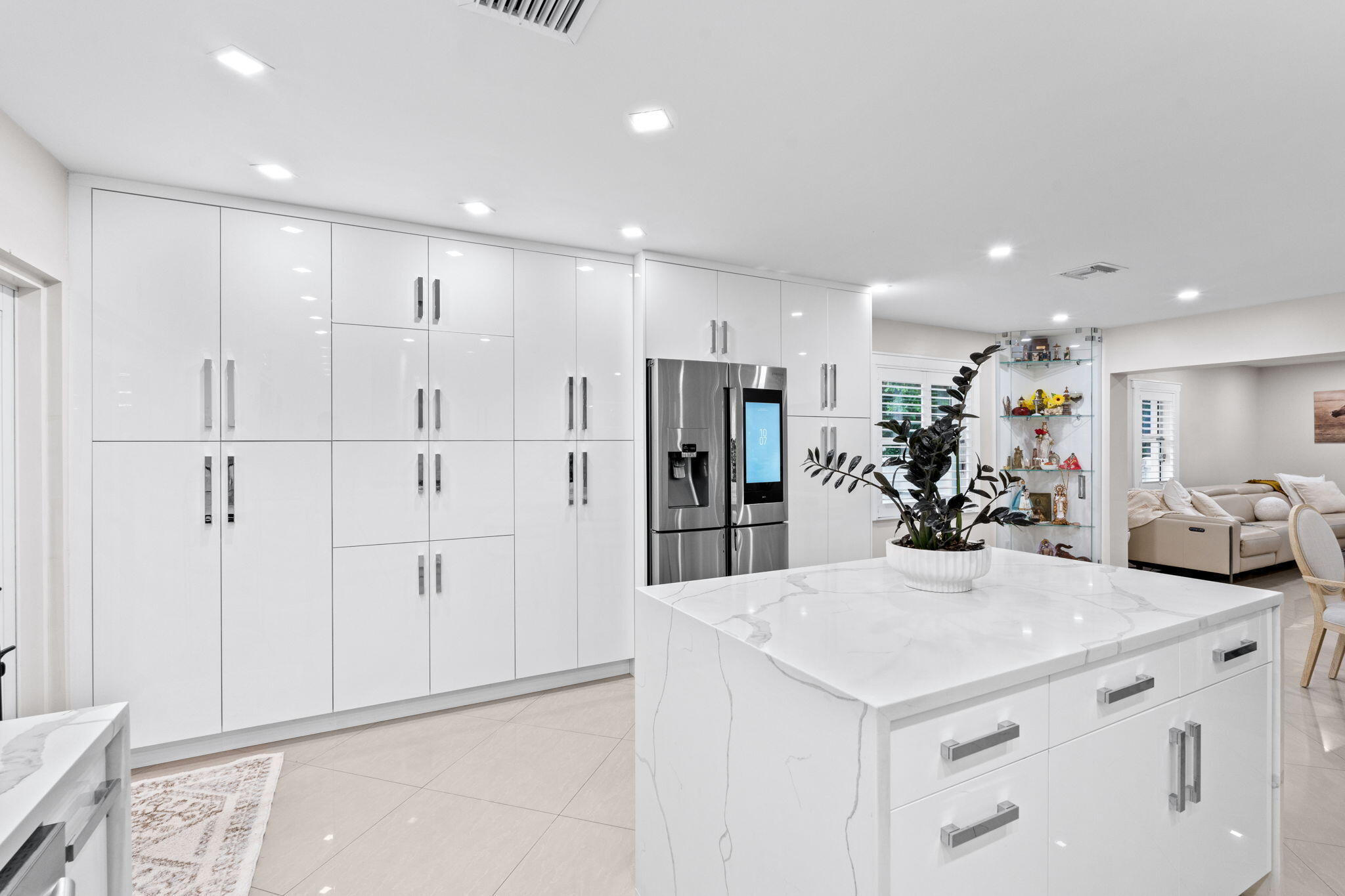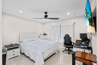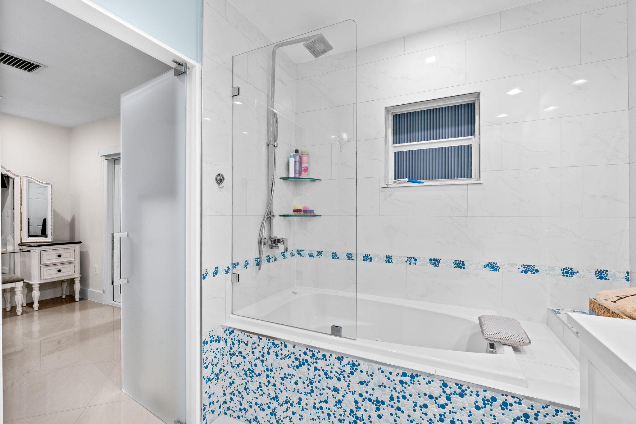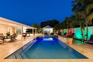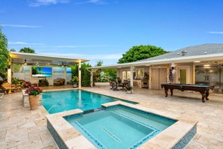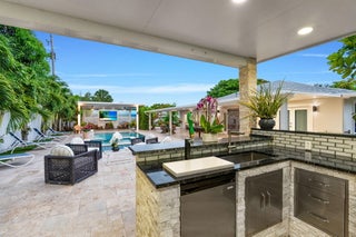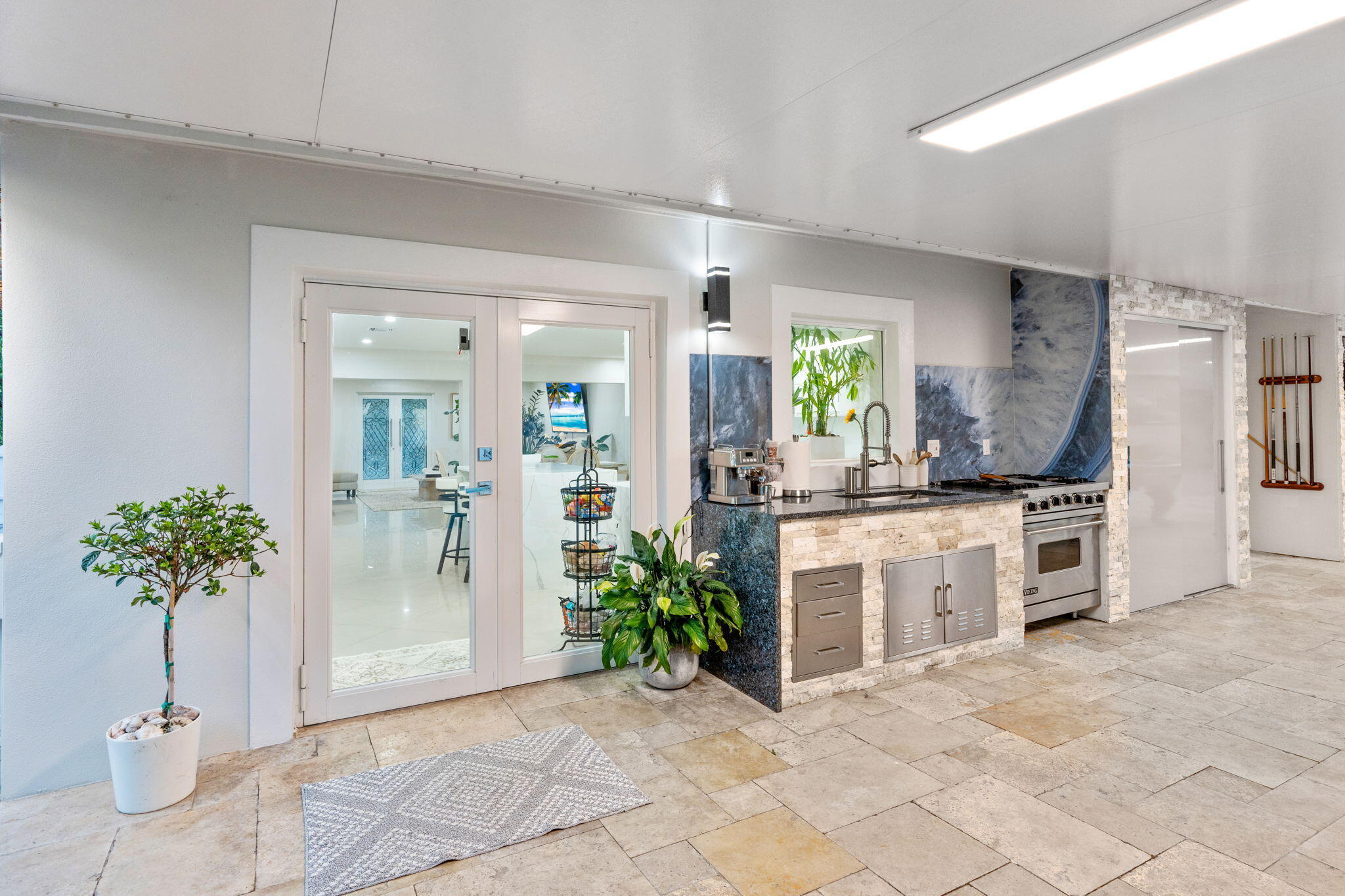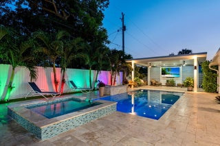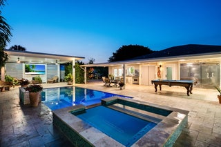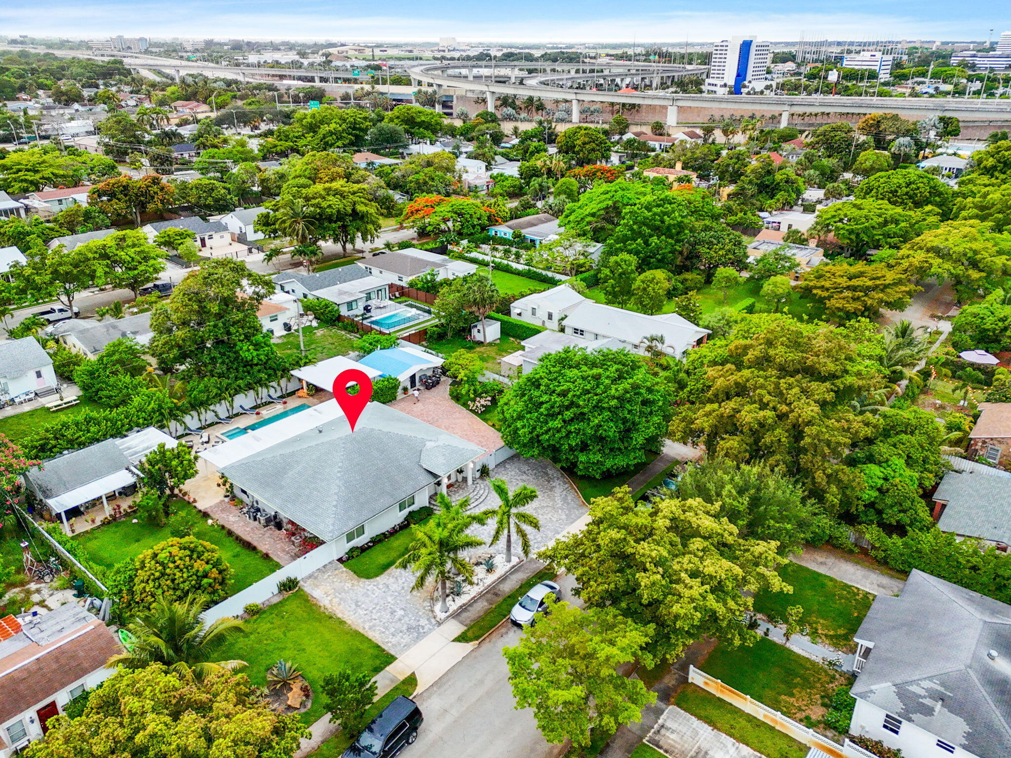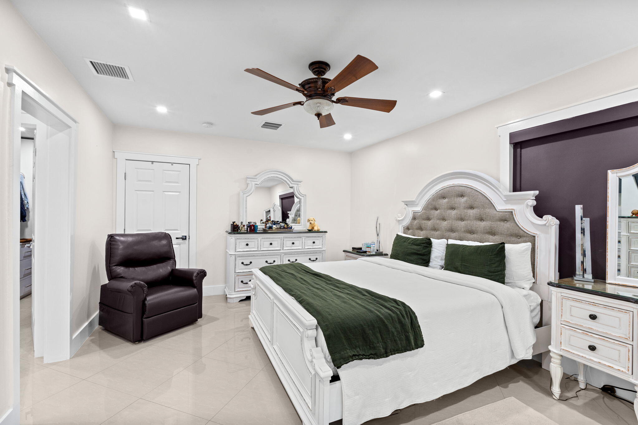 Price Improvement! Step into your own private paradise with this exquisitely renovated 5-bedroom, 4.5-bathroom home including a ''Casita'' in the back. This property is perfectly situated on a rare TRIPLE LOT just under HALF an ACRE. Featuring approximately 2,700 sqft of living space, this custom-designed property was completely renovated late 2020 with top-quality finishes, impact windows and doors, and high-end details throughout. The main home offers a bright open layout with porcelain tile floors, a stunning chef's kitchen with sleek waterfall-edge quartz countertops, custom cabinetry, and premium stainless steel appliances -- one of three fully equipped gas kitchens on the property.The outdoor space is a true resort-style retreat, boasting a sparkling pool, spa, covered lounge with ceiling fans and TV, and a built-in summer kitchen with commercial-grade appliances and bar seating. The lush, fully fenced yard is lined with tropical landscaping and multiple fruit trees. The separate guest cottage or "Casita" with private entrance and a kitchenette offers excellent income potential as an Airbnb or the perfect space for in-laws.This one-of-a-kind home combines modern luxury, income potential, and unbeatable location in a booming neighborhood. Located just 5 minutes to Downtown West Palm Beach and PBI Airport.