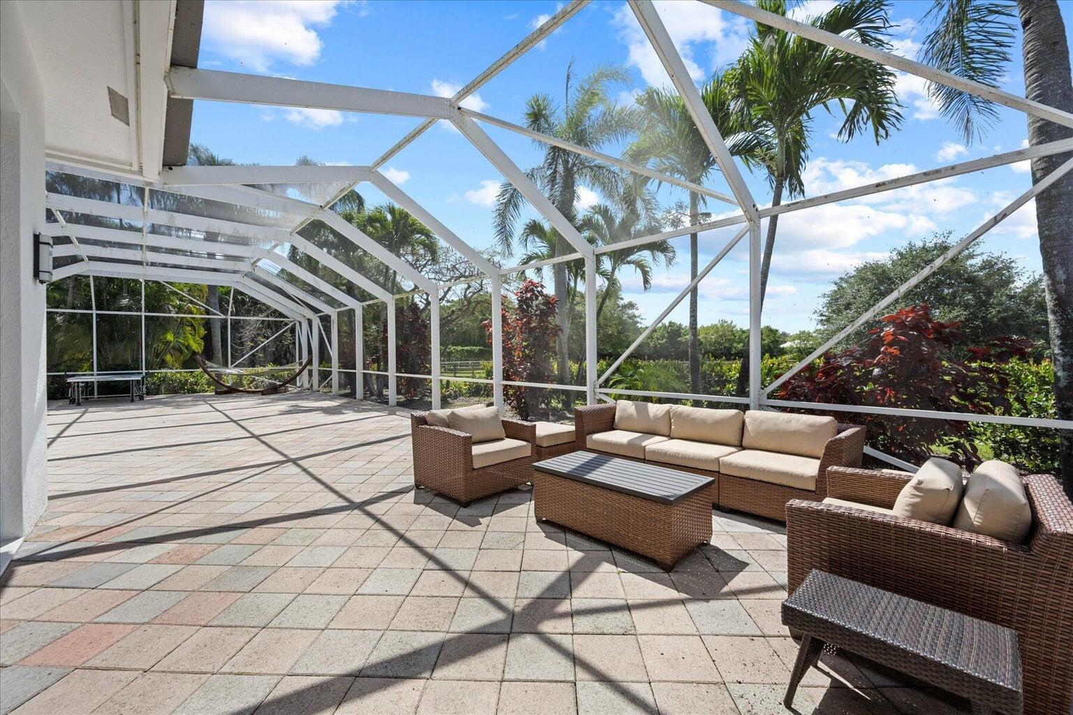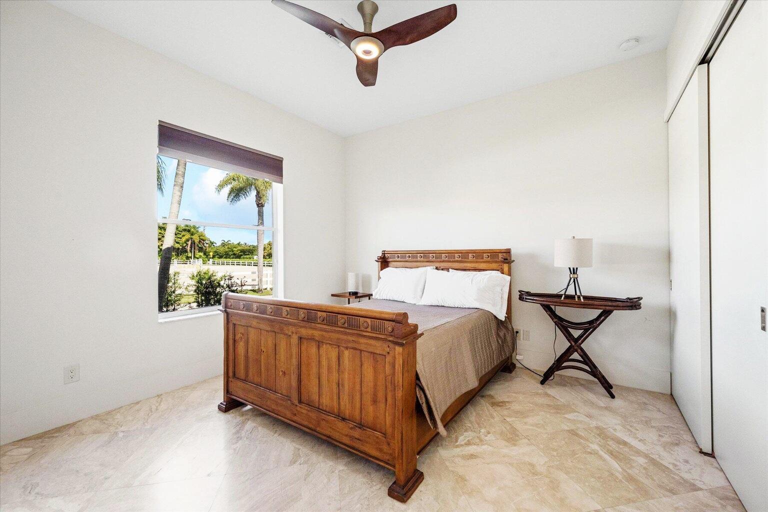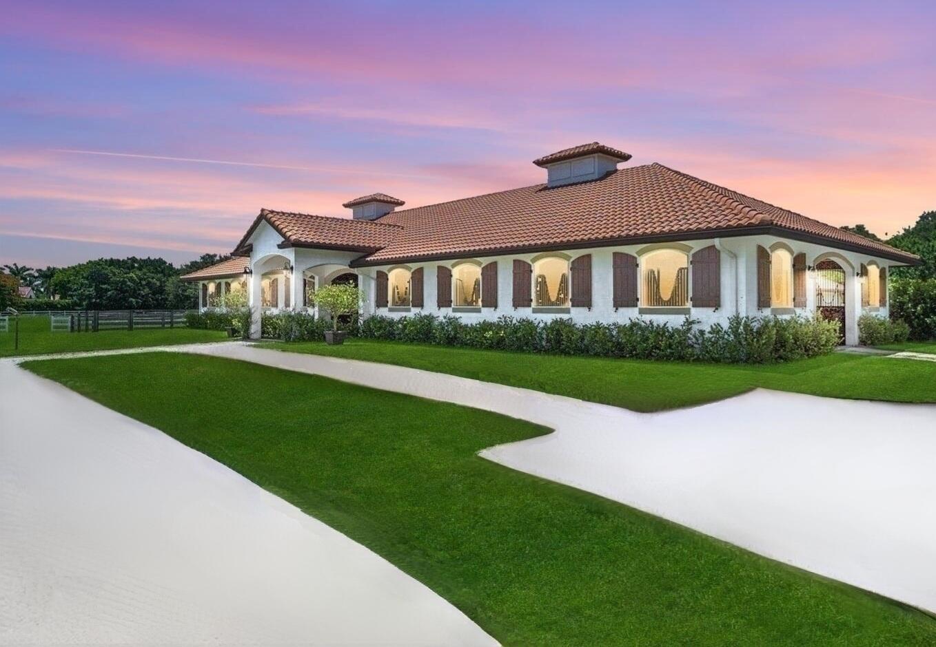 Your Gorgeous Dream Farm awaits in coveted Saddle Trail! With an unparalleled 0.25 mile hacking distance from WEF, this farm is made for the discerning equestrian family. Unrivaled in proximity and amenities, you can take the beautiful, shaded VIP bridle path directly to showgrounds in mins and enjoy all of the private trails. This newly renovated farm is showstopping and features a 15 stall center aisle barn with high-end finishes accenting the space. Beautiful tongue and groove vaulted ceilings and wide aisles feel so nice. The 185'x140' arena was just enhanced and is ready for you and your horses. There are 11 lush, oversized paddocks with gorgeous pathways and beautiful trees that line the property. Barn also features a lovely 2 bed/1 bath apt and separate 1 bed/bath studio. This incredible property is thoughtfully situated on 3.8 beautiful acres with brand new, full impact windows, sliding Nano doors leading to an indoor/outdoor living space that feels elevated and welcoming. The main residence is absolutely stunning at 4700 SQ ft with an open floor plan, highlighting natural light and featuring high-end, magnificent renovations. Professional Chef's kitchen features gorgeous, double thick quartzite counters and state of the art appliances, perfect for hosting guests after your day at the show. Fully integrated with Smart features including highest level, custom Savant system that is fully automated for lighting, video, audio, temperature controls; this is undoubtedly your fortress. The beautiful custom gas fireplace and luxurious bar in formal room have a perfect seating area, overlooking kitchen and patio with ultra high end finishes. Exquisite main entrance door impressively greets your guests to bright, in-lay lighting, elegant marble floors and a luxurious fewl. Property is true split plan with master and office/bedroom separated from additional bedrooms. Master bath has beautiful soaking tub complete with spa shower, this will be your haven to end the day. Master bedroom is gorgeous with remote control window treatments and custom built-ins for his/her walk in closets. The circular driveway and secondary entrance leads to 3 car garage, allowing ease for maneuverability while Barn also features separate entrance. This property is very special, just a few mins hacking distance to WEF with wonderful proximity to Global, the location is like no other.