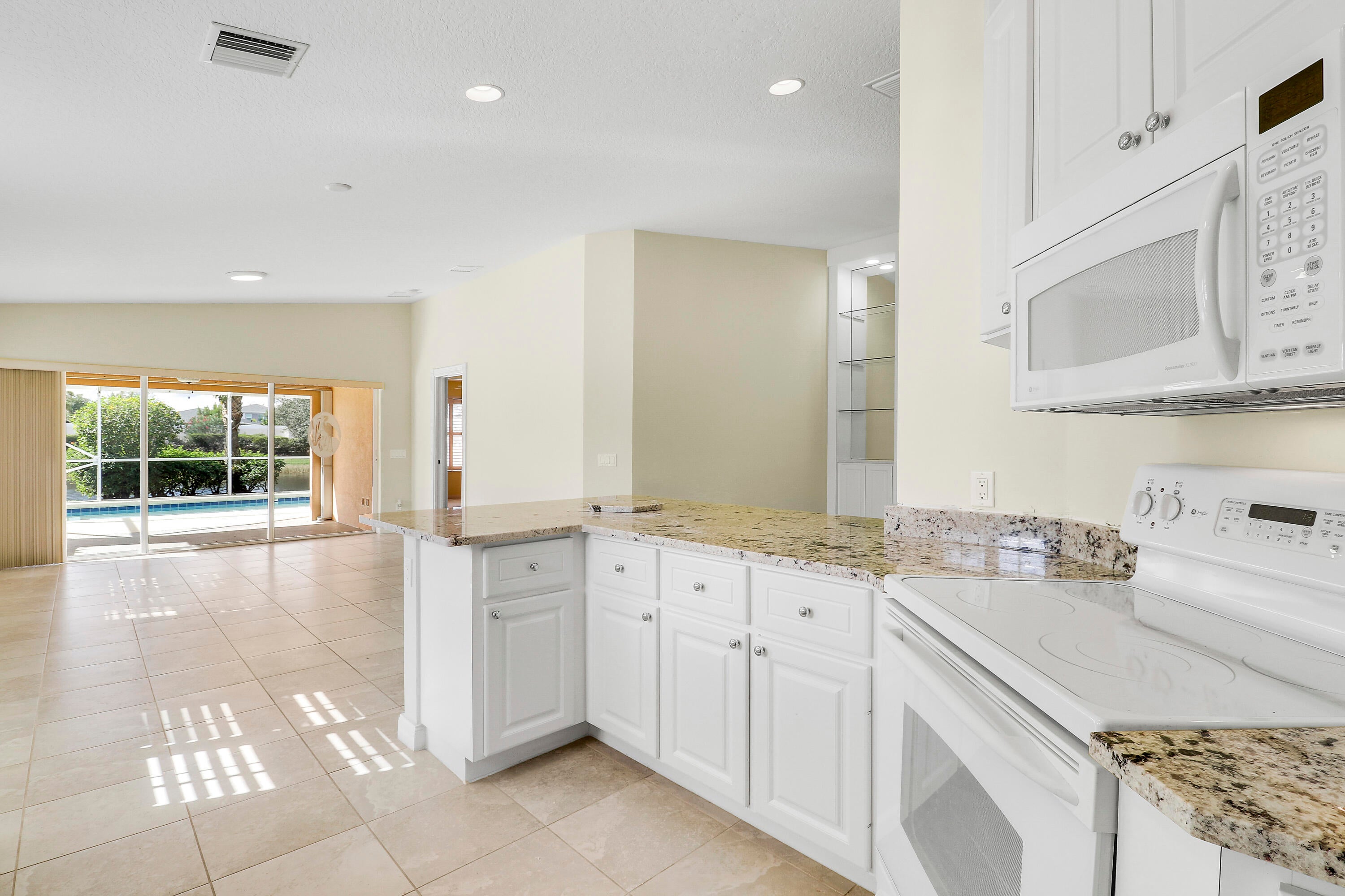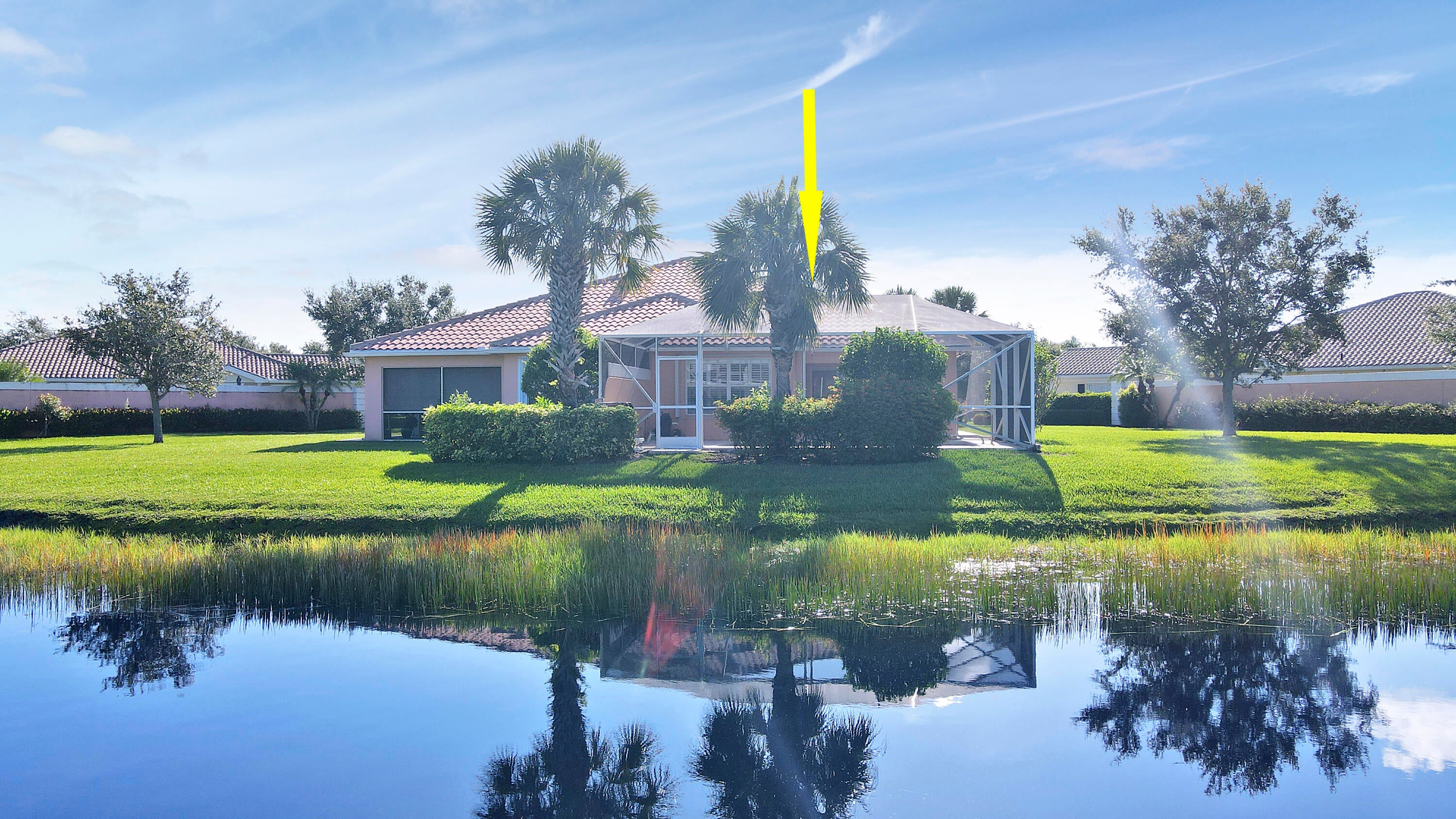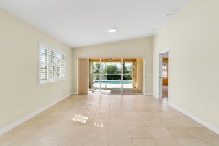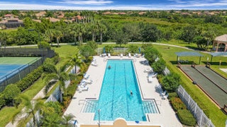 LOCATION, LOCATION, LOCATION! ENJOY BEAUTIFUL SUNSETS FROM THIS 2BR/2BA/2CG VILLA WITH PRIVATE POOL SITUATED ON AN INCREDIBLE, OVERSIZED, LAKEFRONT LOT! Nestled on a cul-de-sac with ultimate privacy, expansive lake views, a heated & screened pool and no rear neighbors. This lightly lived in home features an open floor plan, poured concrete construction, vaulted ceilings, tile flooring throughout the main living areas, carpeted bedrooms, plantation shutters, garage storage, a built in wall unit with display shelves in the living area, newer pool heater (2021), newer pool pump (2023), new water heater (2024) and a newer AC (2018). Both bedrooms can be closed off as suites and there is built in shelving in each closet. Whole house accordion shutters make storm preparation a breeze!HOA dues include basic cable, internet, alarm monitoring, lawn care, exterior landscaping, gated security and common areas. The Lakes at Tradition is an all ages community with plentiful amenities including multiple pools, fitness center, pickleball, tennis, play area, winding sidewalks and more. Enjoy this neighborhood's ideal location to Tradition Square by taking your bike or golf cart to the dining, shopping, supermarkets and entertainment. Don't miss this opportunity to own a well built villa on arguably one of the most incredible lots in the community! Call today to view!