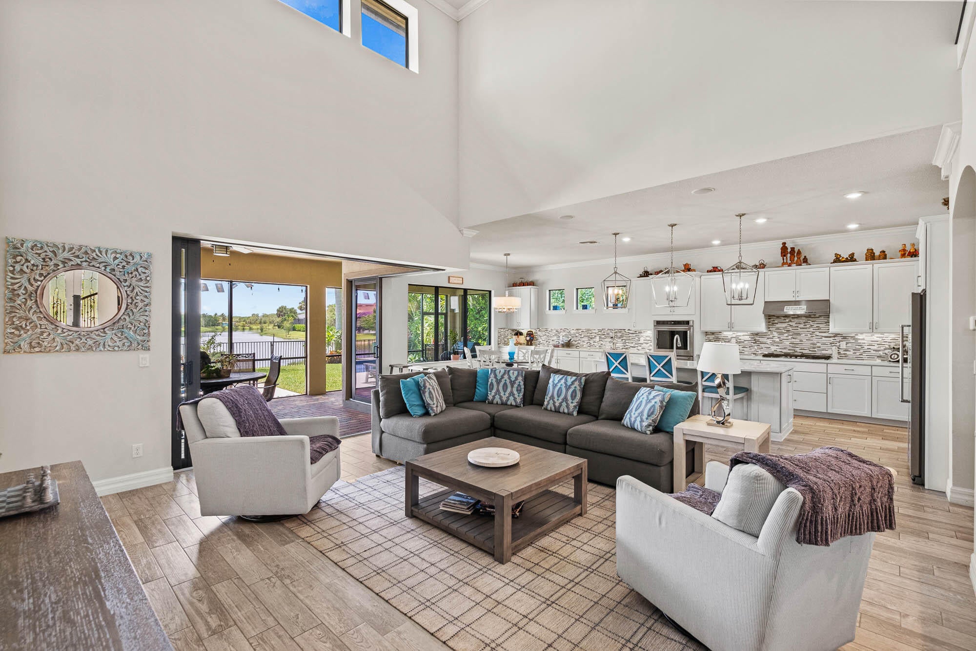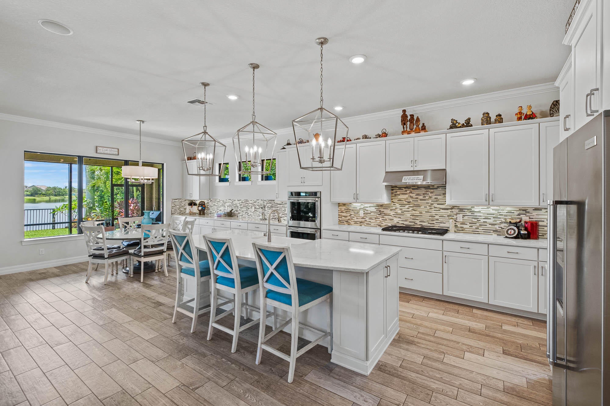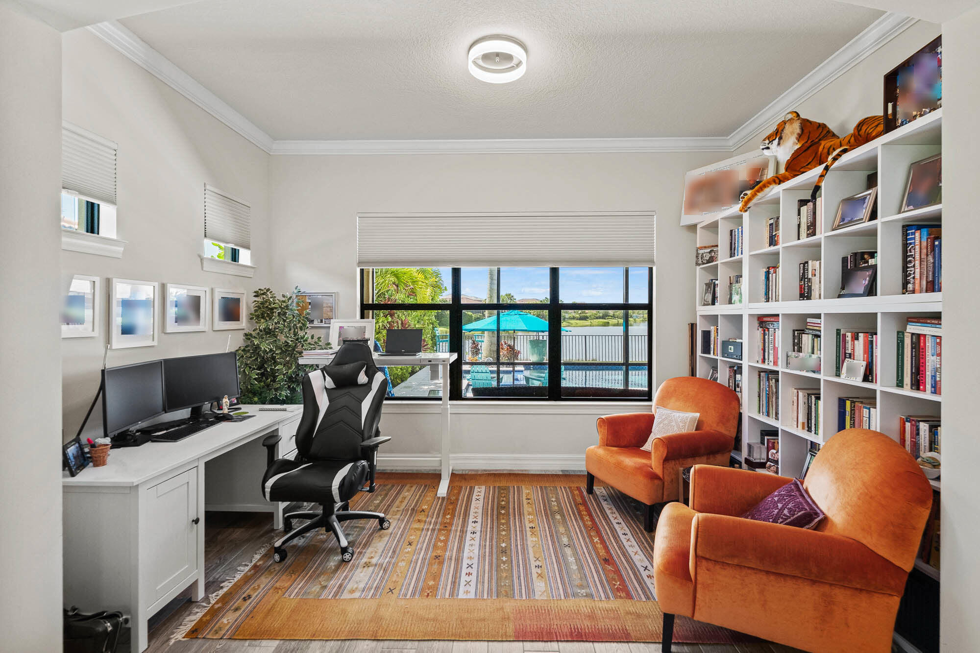Enjoy peaceful, traffic-free living on this premium lot with a beautiful, long lake view, perfect for relaxing by your private pool and spa!Discover this stunning 5-bedroom, 5.5-bath home designed for comfort and versatility. The open floor plan is filled with natural light, featuring an eat-in kitchen, formal dining, and flexible office space. Enjoy indoor-outdoor living with a screened lanai, pocketing impact doors, and a pool/spaa"perfect for entertaining. Upstairs, find a loft plus 3 bedrooms and 2 baths. Peace of mind comes with a whole-house generator, natural gas range, and impact windows/doors. Spacious 3-car dual garages. This home blends luxury, functionality, and privacya"don't miss it! Matterport 360 tour available. Call Rick Howe for details. Click ''MORE'' for upgradesHigh-Value Structural & Functional Upgrades Whole-house Generac generator Gas-heated pool and spa with Aqualink automation (spa heats in approximately 10 minutes) Monitored whole-home security system Expanded lanai on both sides, creating additional covered outdoor living space Dedicated full pool bathroom Extended owner's suite with additional square footage Added private bedroom in loft area Upgraded flooring throughout first and second floors Extended kitchen cabinetry and countertops for enhanced storage and prep space Upgraded quartz kitchen countertops Comfort & Technology Enhancements Built-in sound system in kitchen, family room, lanai, and outdoor rock speakers Wi-Fi extenders installed throughout the home, including poolside Enhanced recessed lighting in main living areas Wall-mounted TV outlets (power and cable) in family room and loft Convenience Features Laundry room with utility sink Epoxy-coated garage floors Dedicated outlet for wine refrigerator in dining room Refrigerator outlet in auxiliary/small garage Design & Finishing Touches Custom stair and loft railings Crown molding Designer tile backsplash in kitchen