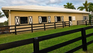 Beautiful new 10 stall barn for rent in Wellington FL, short hack to WEF, huge GGT ring, full set of jumps, direct bridal trail access, tractor with drag and bucket loader, large padded stalls, fly spray, washer & dryer, fans, full shutters, barn doors, and much more. Seasonal lease.