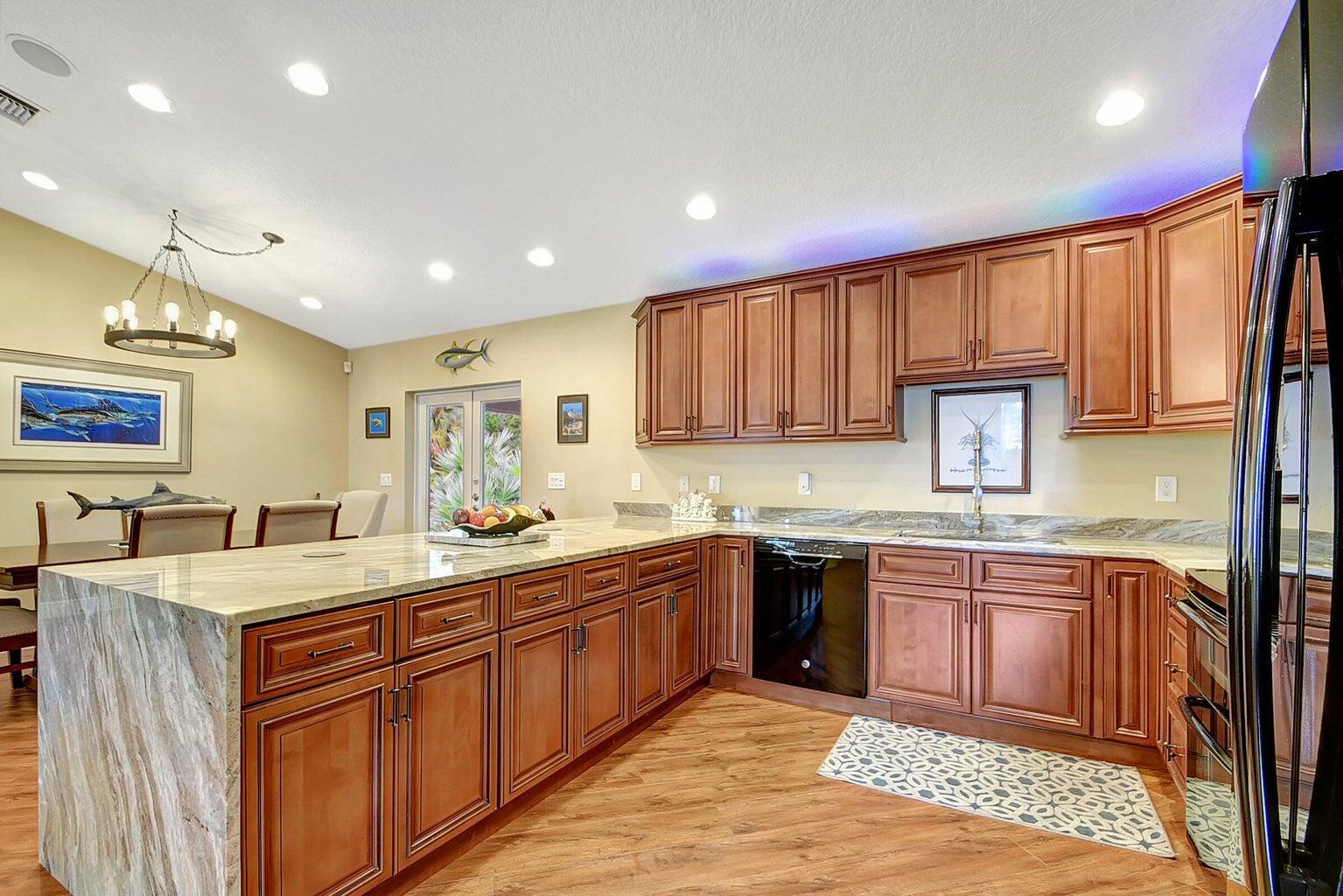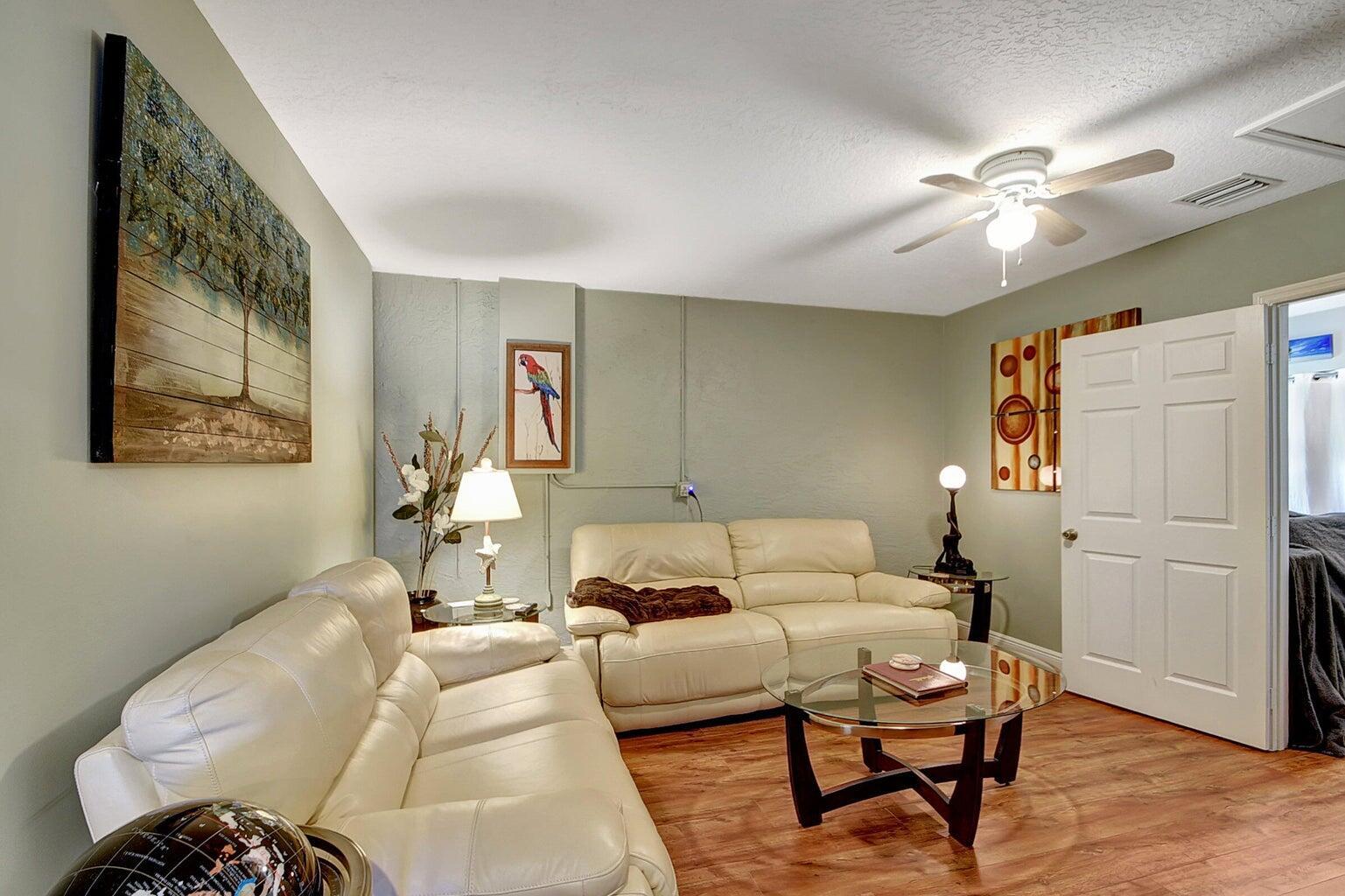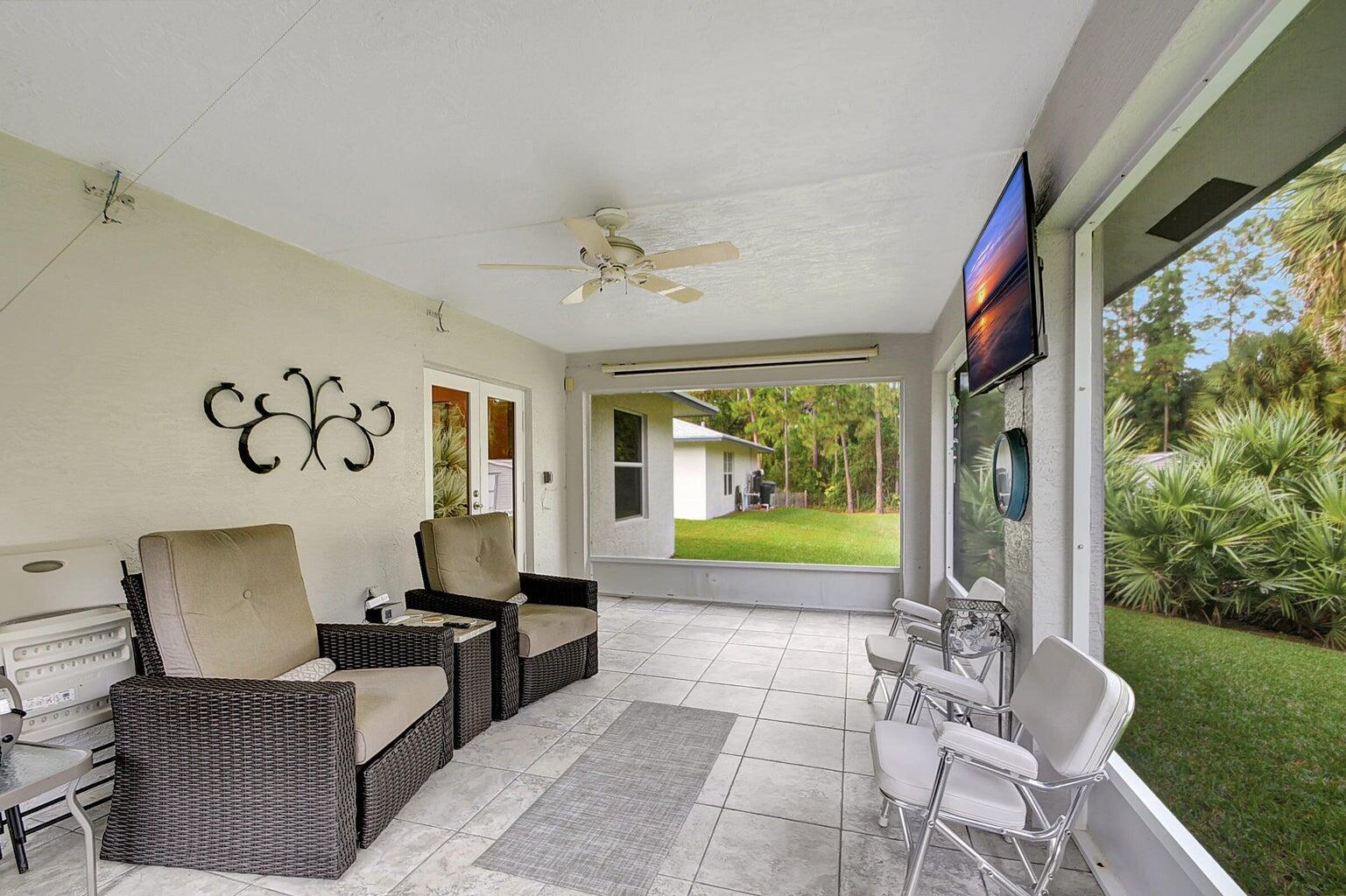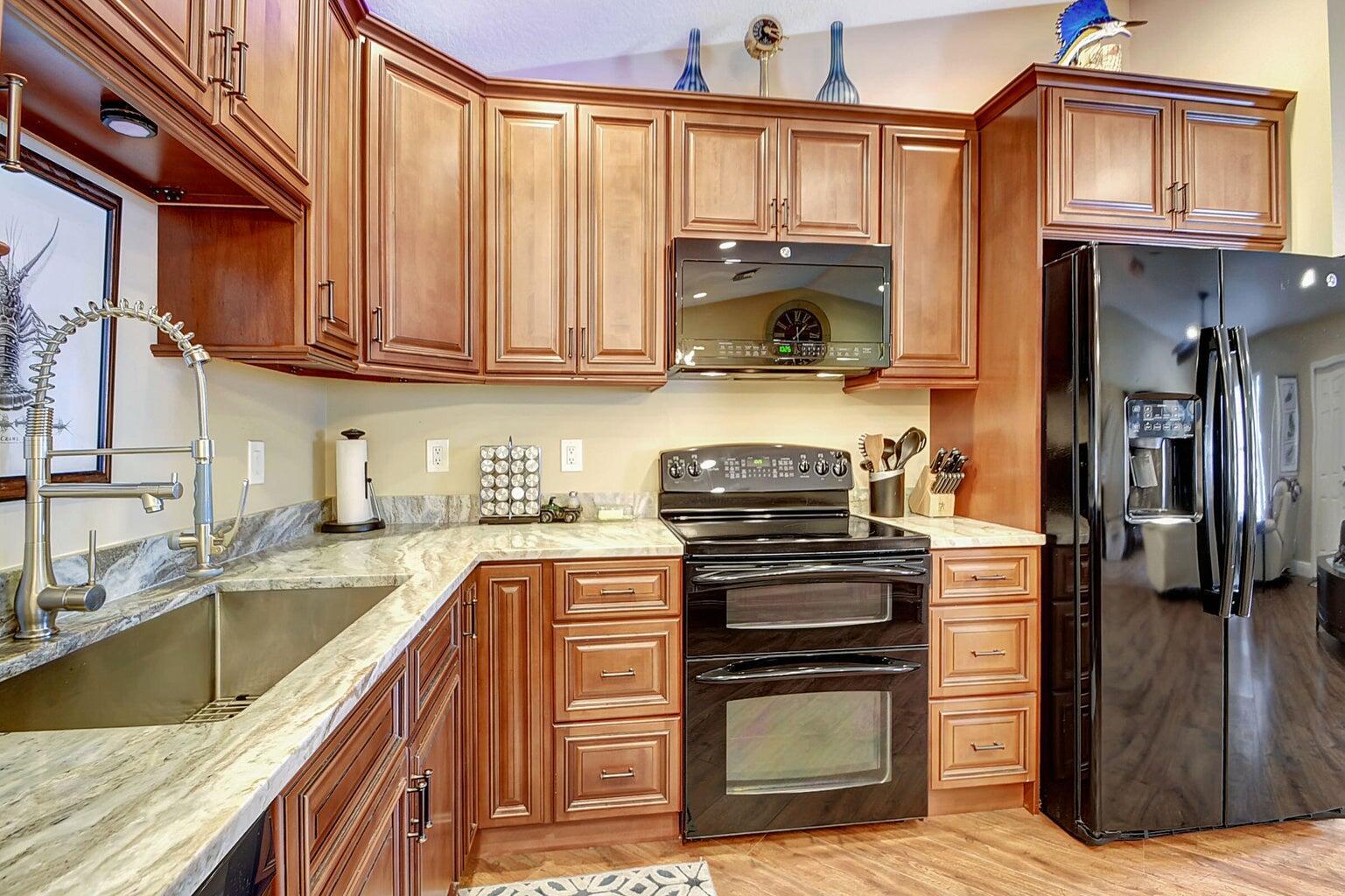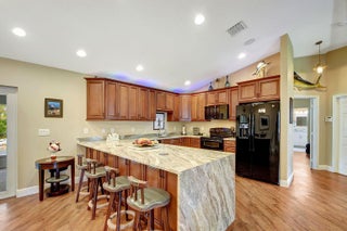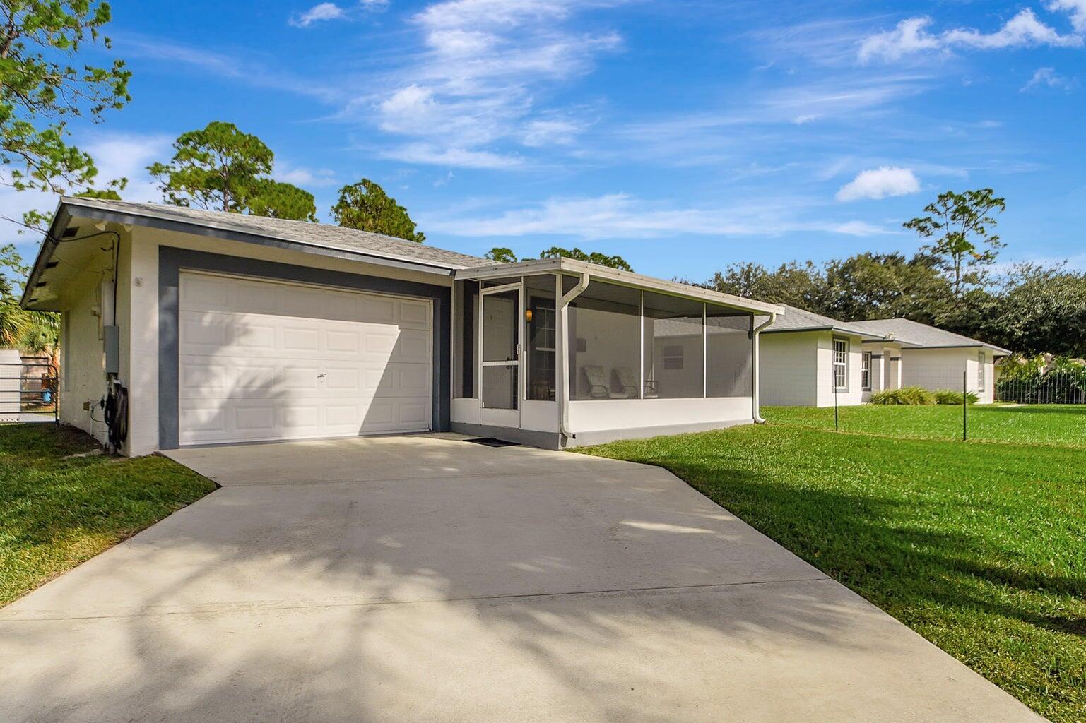 Welcome to this meticulously maintained multi-structure estate offering the perfect combination of comfort, privacy, and functionality. Set behind two separate solar-powered gated driveways, the fully fenced, high-and-dry property features an automatic irrigation system and a thoughtfully designed layout ideal for everyday living, entertaining, and multi-generational use. Outdoor amenities include a 3,400 sq ft fenced corral with a separate tack room, complete with electric and water, a custom fire pit lined with firebrick over a lava rock base and surrounded by crushed granite and weed barrier, and a 20' x 30' warehouse with carport, built-in shelving, workbench, water, stained concrete floors, and a 30-amp RV hookup. New roofs were installed in 2023 on the main house, guest house andgazebo. Additional highlights include a storage shed with electricity, two professionally maintained well systems (one for the main and guest house with a peroxide filtration system, and a separate irrigation system), full hurricane shutters for both residences, and hurricane-rated front and garage doors. The 3-bedroom, 2-bath main house offers an updated and spacious interior with modern upgrades throughout. A 2023 roof, epoxy-coated garage floor, custom rod holders, and electric opener enhance the oversized two-car side-entry garage. Inside, vaulted ceilings in the living room and primary suite elevate the space, while upgraded 5 ¾" baseboards and diagonally installed Aquaguard Salerno waterproof laminate flooring provide durability and elegance. Recessed LED lighting, ceiling fans in every room, and built-in ceiling speakers in the living room add comfort and style. French doors lead to a tiled screened-in patio under the main roof, complete with a ceiling fan, TV mount, and speaker wiring, with potential for future expansion. The kitchen is a chef's dream, featuring soft-close wood cabinets (including double-sided cabinets on the peninsula), lazy Susan corner cabinets, pull-out drawers, and stunning quartzite countertops with a waterfall edge and backsplash. The peninsula includes two pop-up charging stations and a custom cutting board. An oversized Kraus stainless steel sink, under-cabinet lighting, color-changing cabinet accent lights, and GE black appliances complete the well-designed space. Guest bedrooms feature custom shelving in the closets, and the guest bathroom includes a new quartzite countertop and Kraus sink with a tub/shower combination. The spacious primary suite offers a large walk-in closet and a beautifully updated ensuite with quartzite counters, dual Kraus sinks, and an oversized walk-in shower with bench and lighting. A security system services the main home, shed, and warehouse. HVAC was replaced in 2017. The detached guest house includes 2 bedrooms, 1 bathroom, and its own private gated driveway. It features a full kitchen with white appliances, a dining area, and a spacious living room. The primary bedroom has a walk-in closet, and flooring includes Aquaguard Salerno waterproof laminate in the living areas and bedrooms, and ceramic tile in the kitchen and dining spaces. The bathroom has a tub/shower combo, and like the main home, this guest space includes upgraded 5 ¾" baseboards. A screened front porch with stained concrete adds charm and function to this separate living area. This property is truly a rare find, offering modern upgrades, versatile space, and premium features throughout, ideal for those seeking comfort, security, and room to live, work, and entertain.