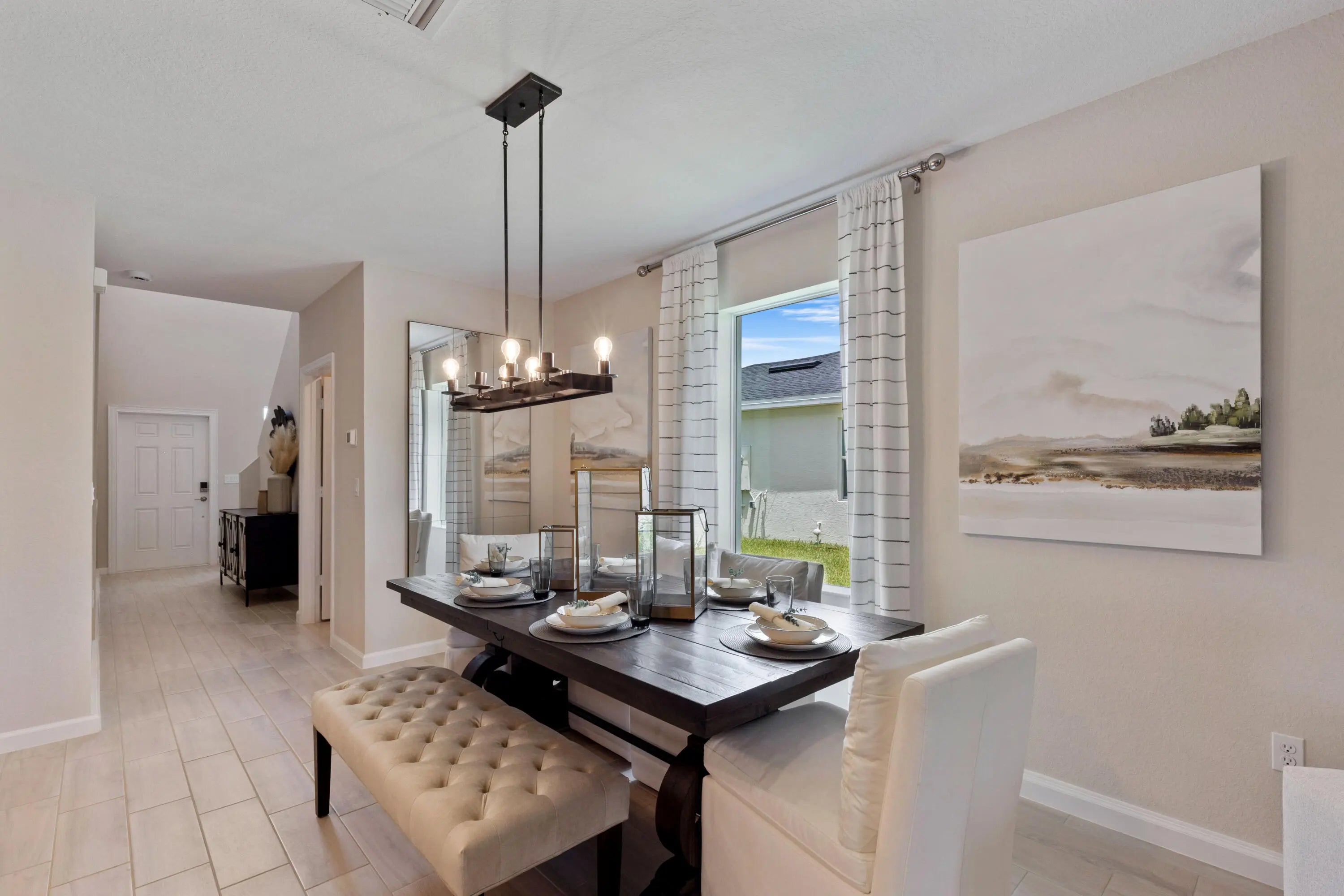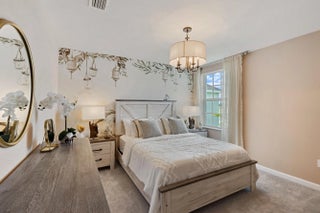 This stunning two-story, 5-bedroom, 2.5-bath home offers an open-concept layout, seamlessly connecting the kitchen, dining, and living areas for effortless transitions. The first-floor owner's suite provides added privacy, while the second floor features 4 additional bedrooms and a cozy loft. Enjoy outdoor leisure on the ready-to-use patio. The home includes a convenient two-bay garage, stainless steel appliances, a gas range, quartz countertops, upgraded light fixtures, and a Ring doorbell system. **Neighborhood includes a beautiful clubhouse, fitness center, community pool, pickleball courts, playground, and more! This is an incredible opportunity to make this beautiful house in this lovely neighborhood your home!** Photos are for illustrative purposes only.
