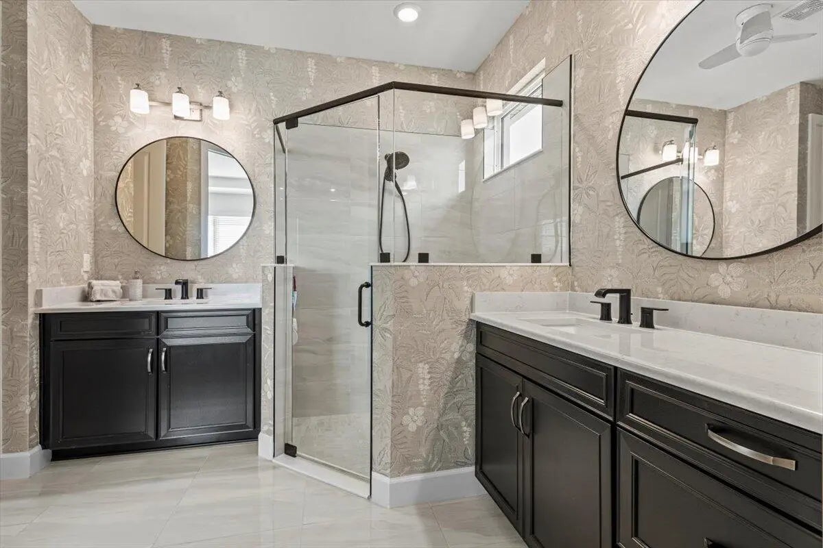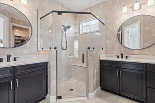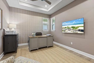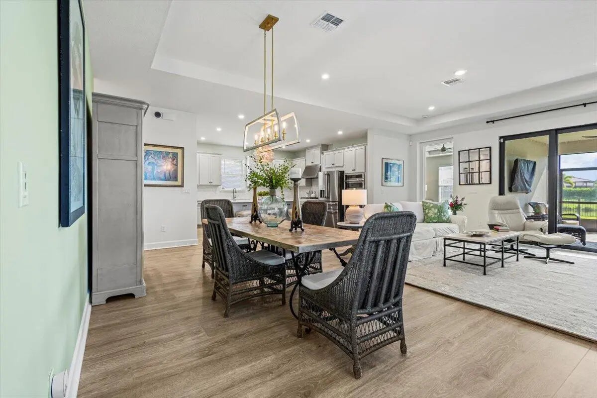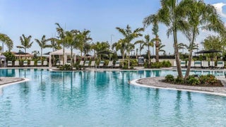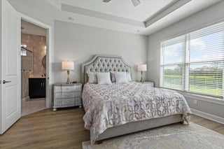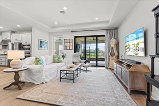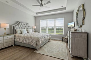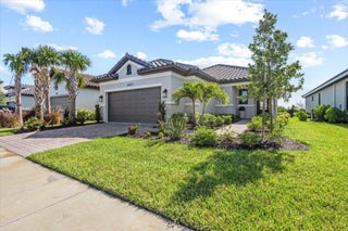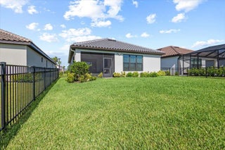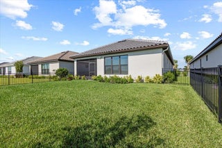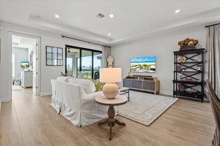 Fabulous ''Bergamo'' Model built in 2024 at Esplanade at Tradition (55+ Community). This beautifully upgraded home shows like a Model! Features CBS Construction, tile roof, paver driveway, hurricane impact windows & covered entrance. Host 2 BR's, Den/Office, 2 BA's, 2 CG & screen enclosed Lanai, black aluminum fenced in yard with private lake view. Details include volume ceiling, open floor plan with stunning gourmet kitchen offers large island, stainless steel upgraded GE Cafe appliances, quartz counter tops, mother of pearl back splash, custom pantry & farm sink. Split floor plan, custom lighting throughout, interior freshly painted with Benjamin Moore paint, beautiful wall paper in bathrooms & tile flooring. This community offers exceptional amenities to feel like you live in a RESORT!