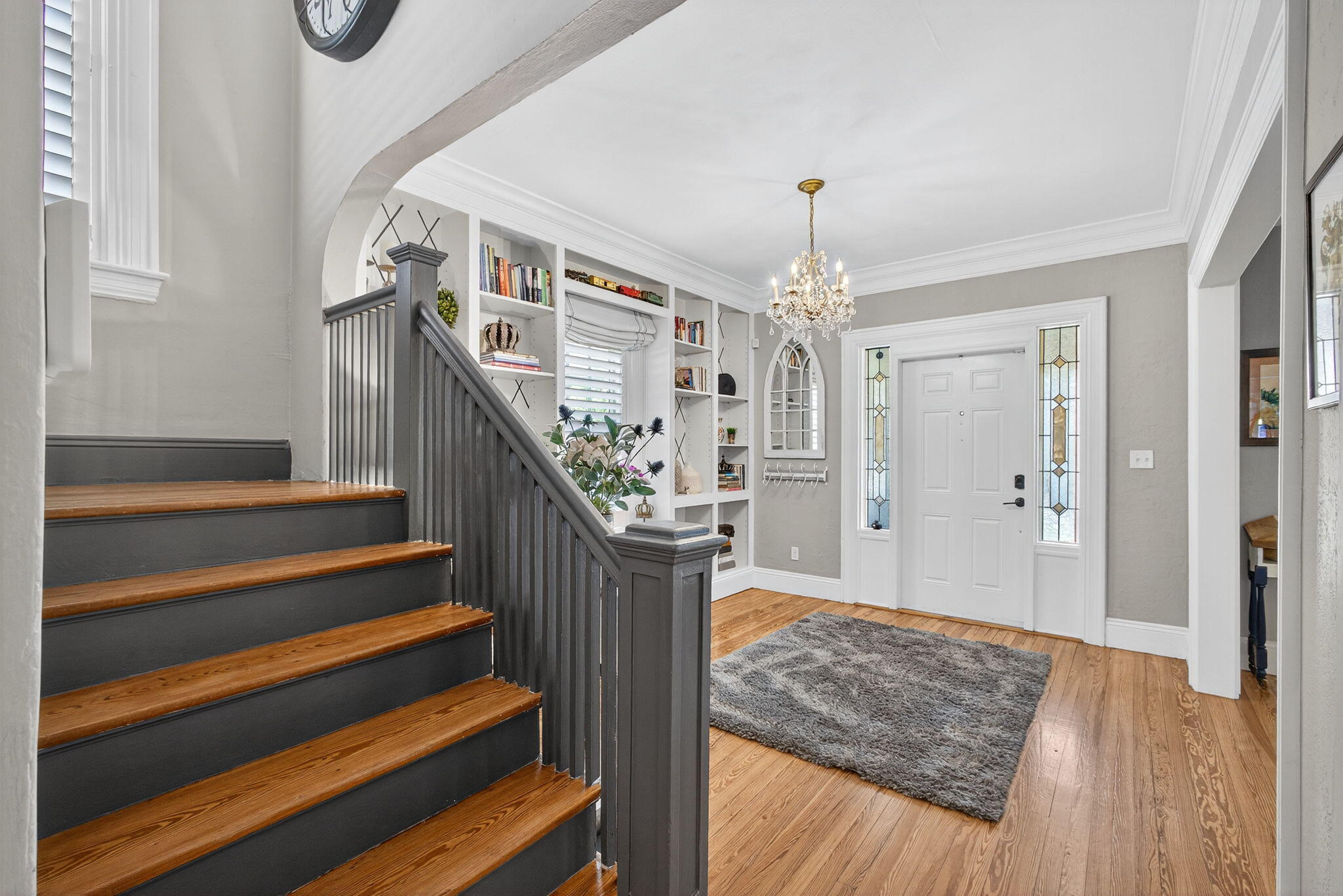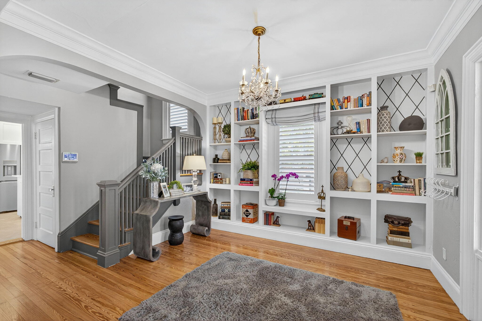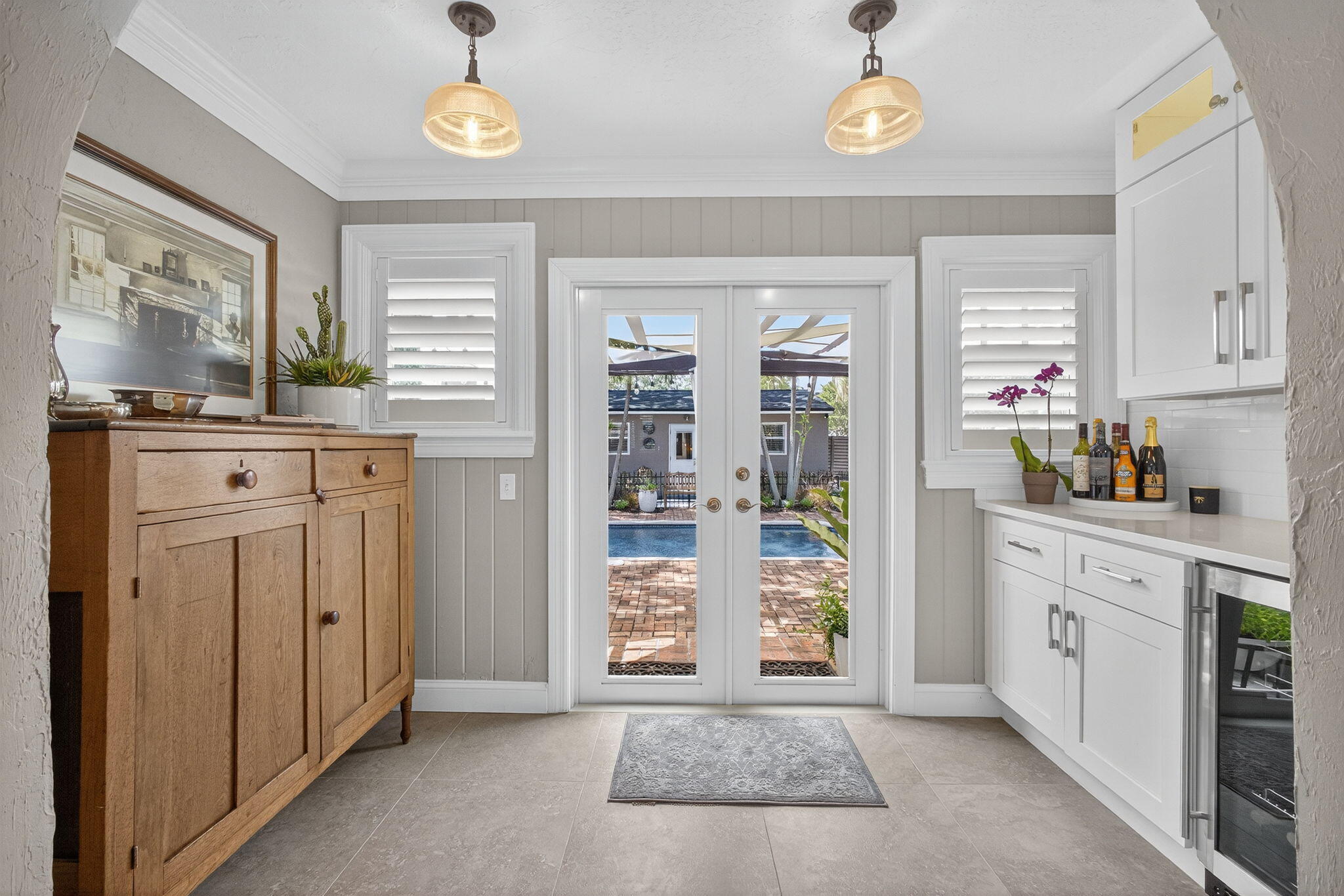 Bar, Built-in Shelves, Closet Cabinets, Foyer, Split Bedroom, Fireplace(s), French Door