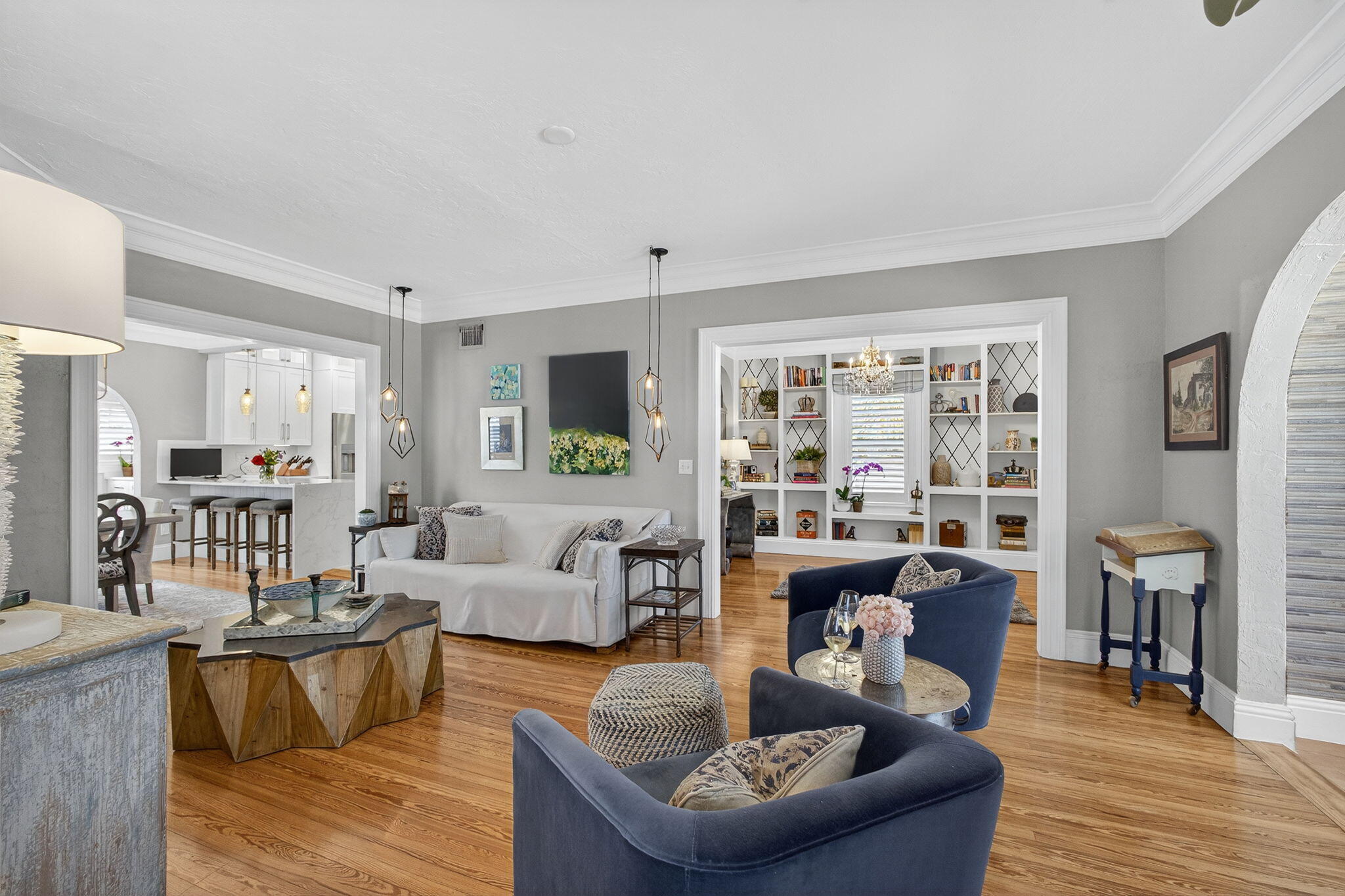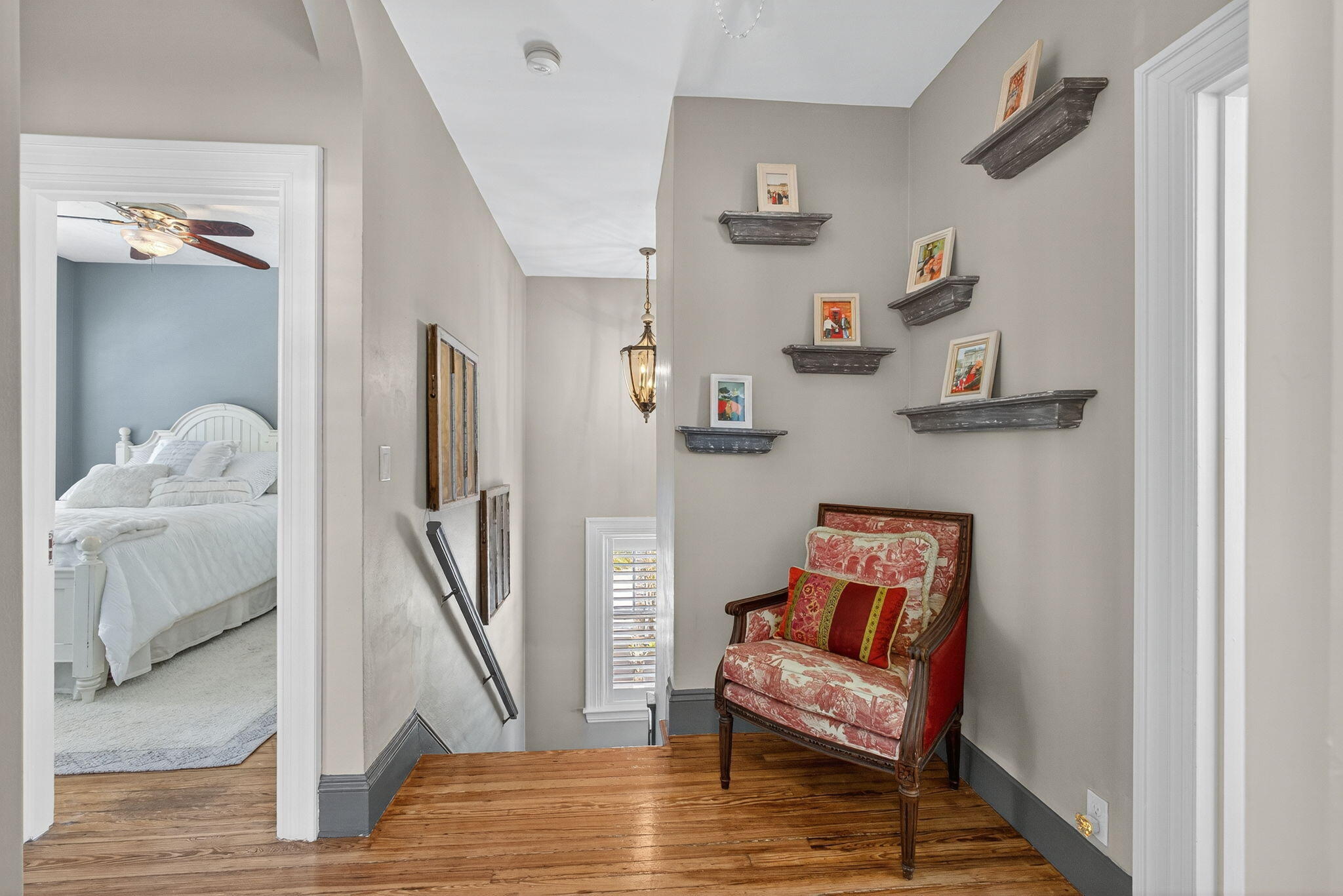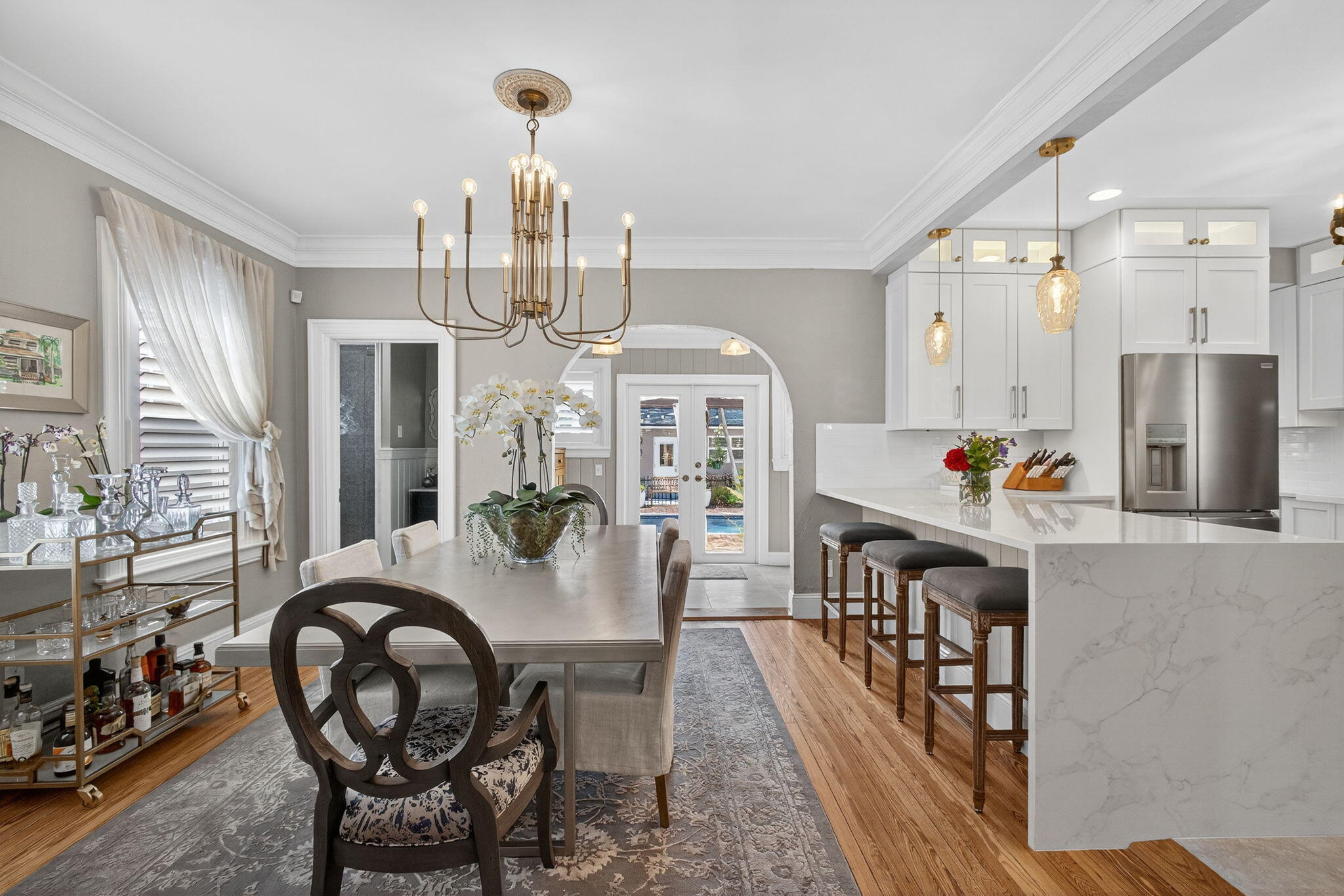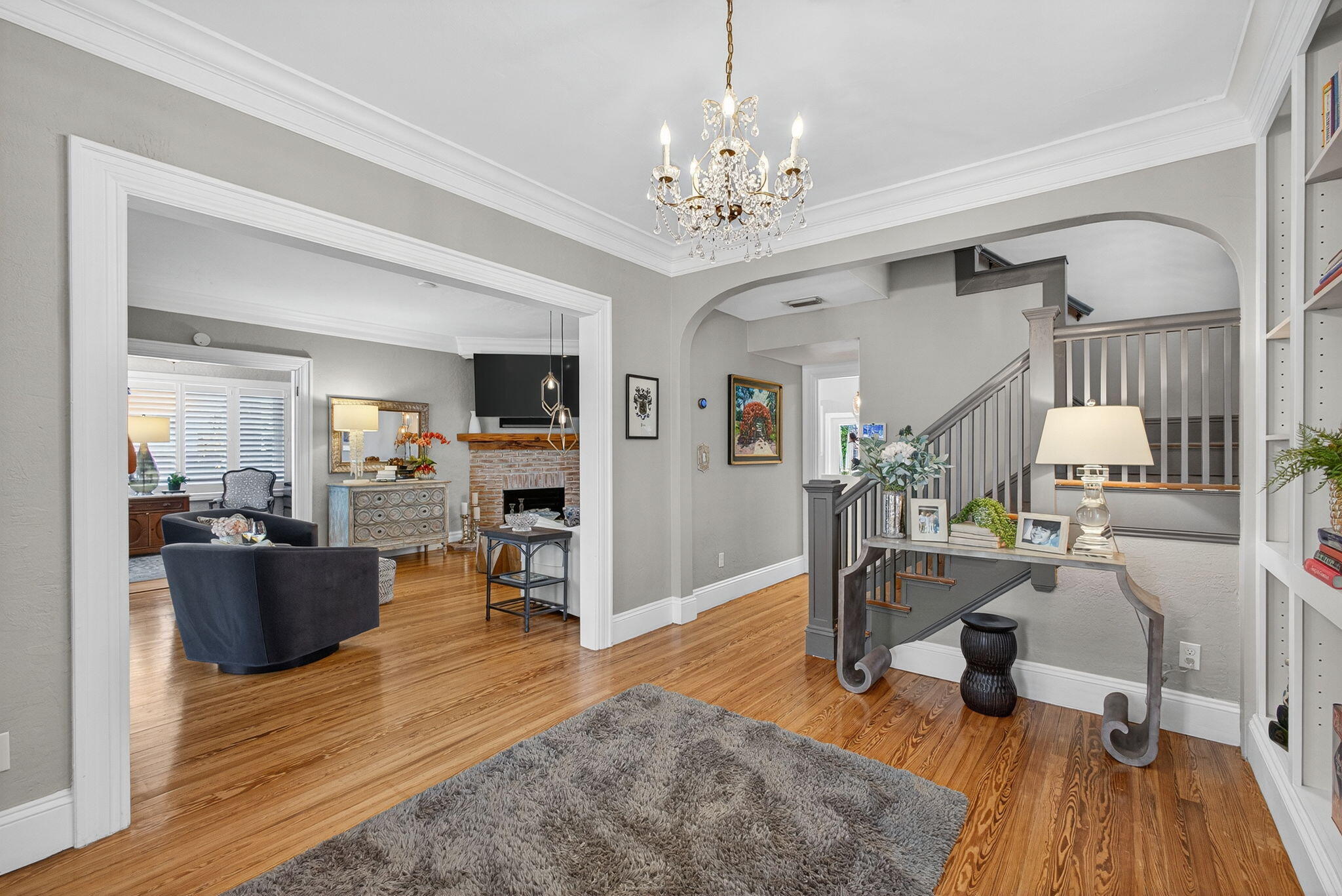 Bar, Built-in Shelves, Closet Cabinets, Foyer, Split Bedroom, Fireplace(s), French Door