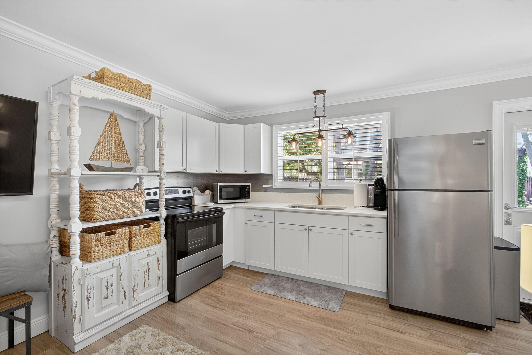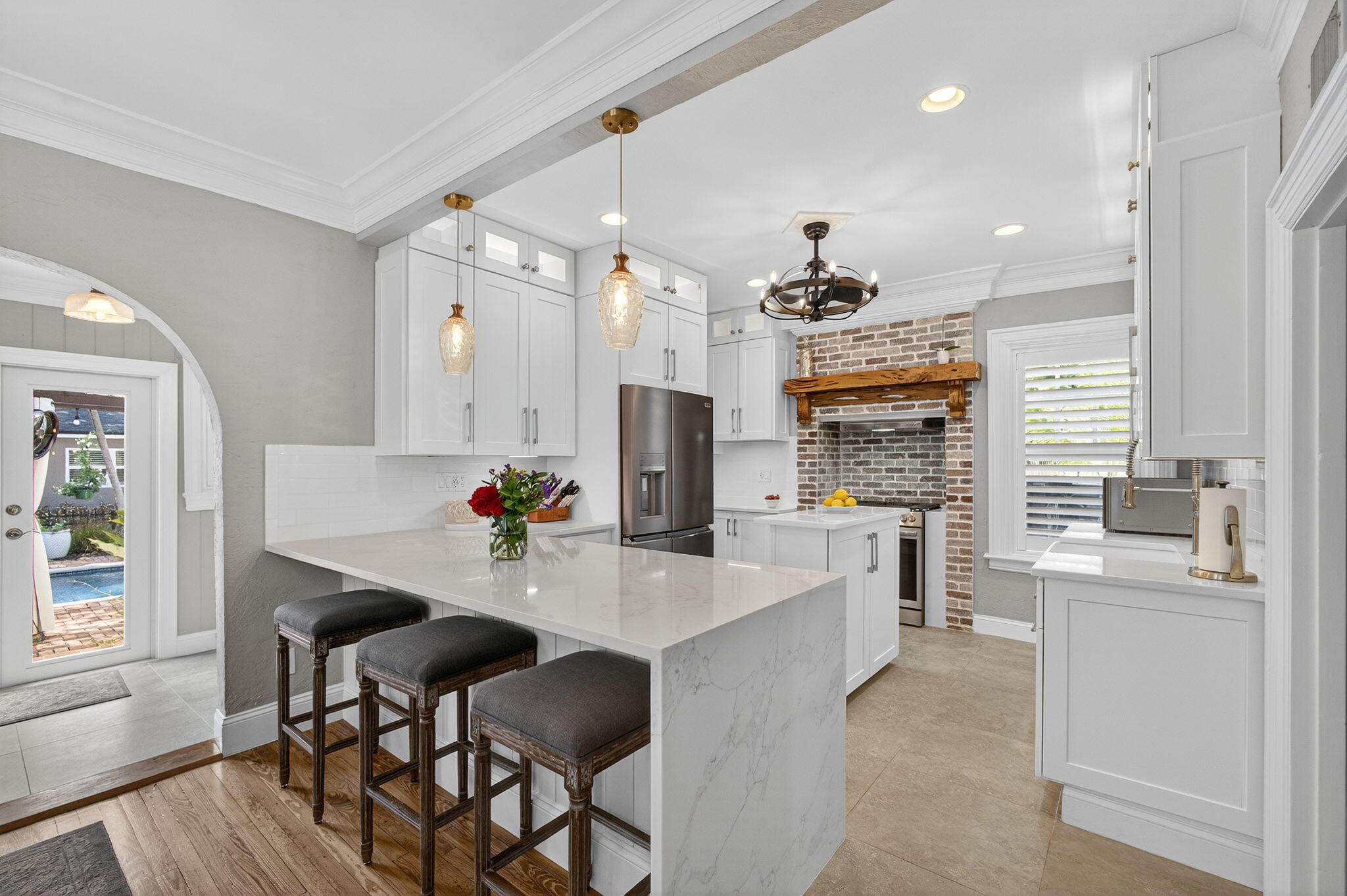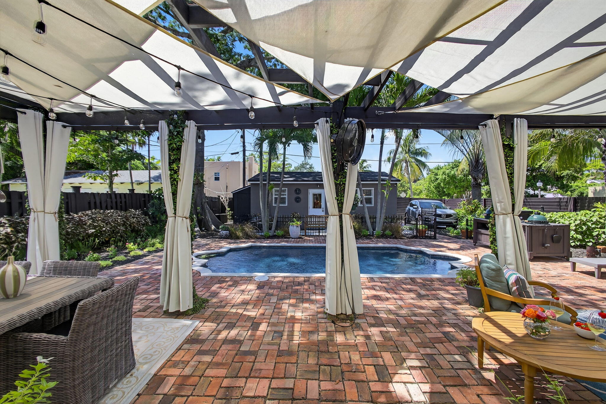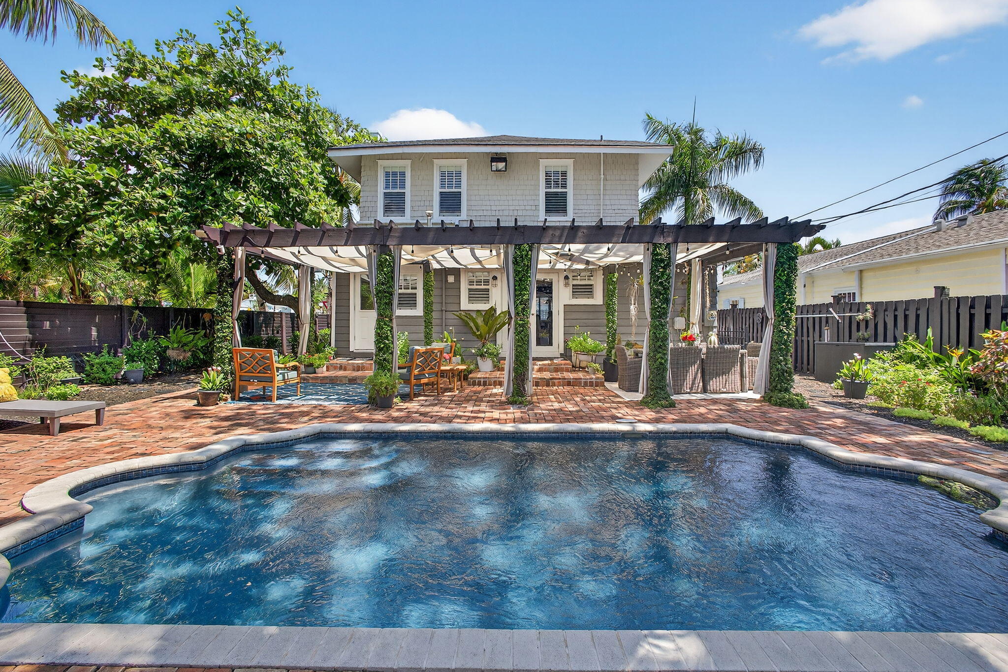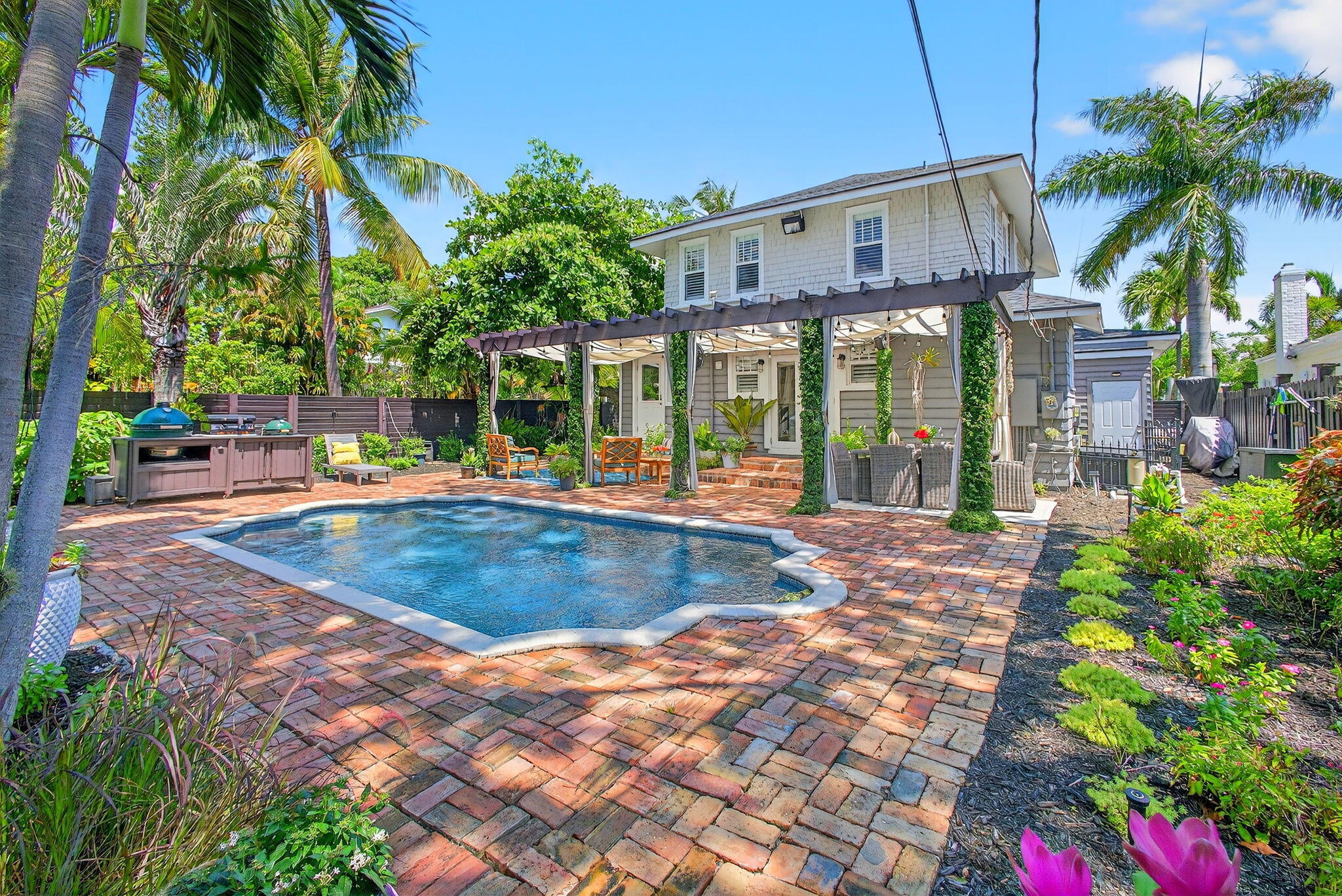 MOTIVATED SELLER in HOT! HOT! HOT! Northwood Village, with tons of new developments going up within a few blocks makes this home an excellent investment. Walk to fun restaurants and shops. Just 1 mile to PB Island, downtown WPB and minutes to airport. A beautiful renovation, including: 2019: NEW Pool resurfacing, fence, insulation 2022 : NEW Hurricane doors and windows, full cottage renovation, AC downstairs. 2023: NEW roof, shutters, salt water pool, outdoor lighting. 2024: NEW AC upstairs. 2025: NEW kitchen, Gorgeous open spaces, resort like backyard and pool area. Cottage is the 4th bed/bath, perfect for guests or extra income. Dade county pine, wood floors throughout, fresh paint and so much more. Get in on this fun lifestyle in Historic Northwood before its gon