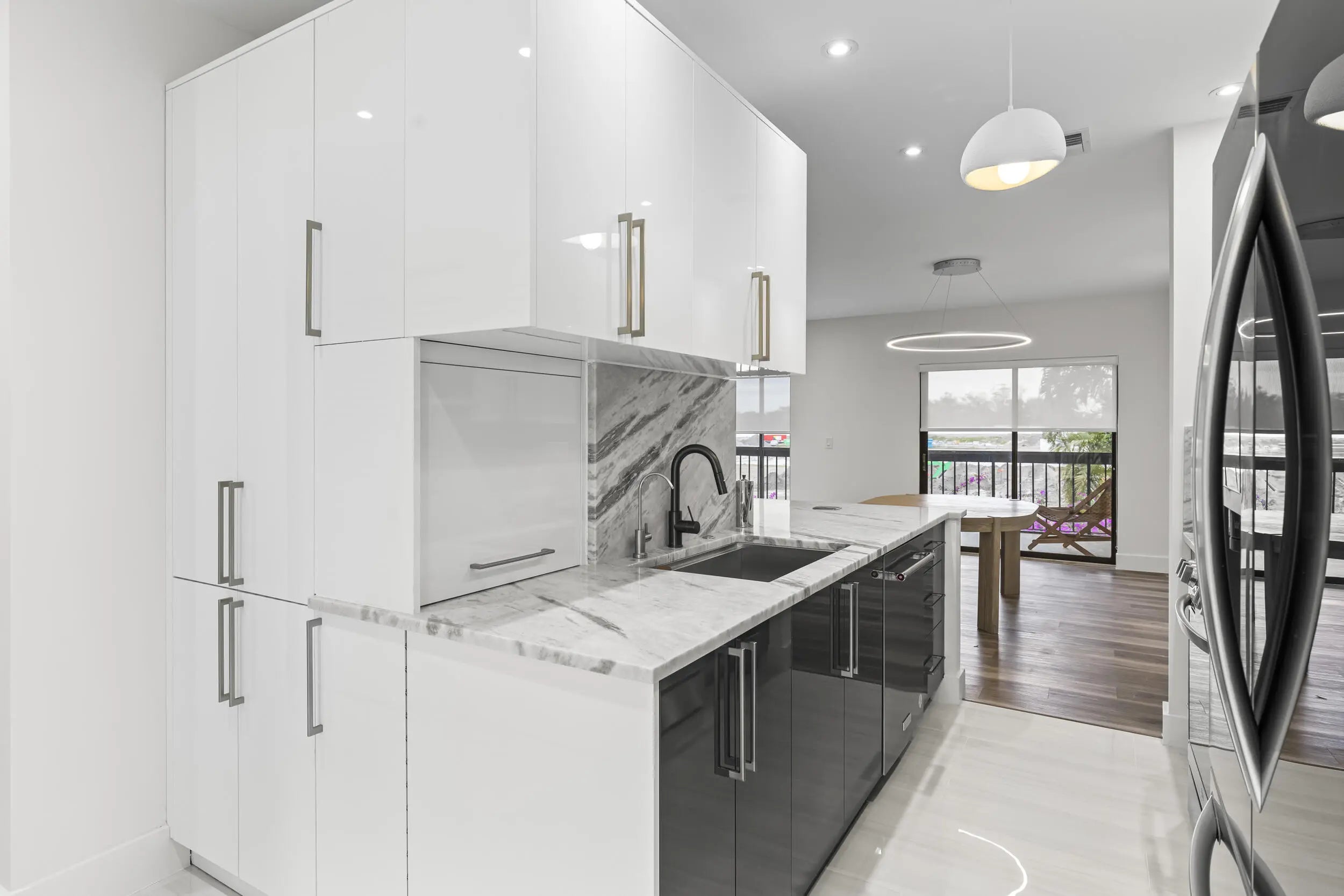 Fully Remodeled Condo. Bathroom extended across the hall way to give you the ultimate luxury experience. Enjoy two walk in closets off the master room, custom and frosted glass extensions, marble counters and two balcony breakfast spots. If that isn't enough for you enjoy the full wet bar with waterfall edges and pop up electrical sockets. Custom cabinetry and electric fireplaces. This home is designed like nothing else in the incredible polo club, across from the lovely gym and tennis courts.