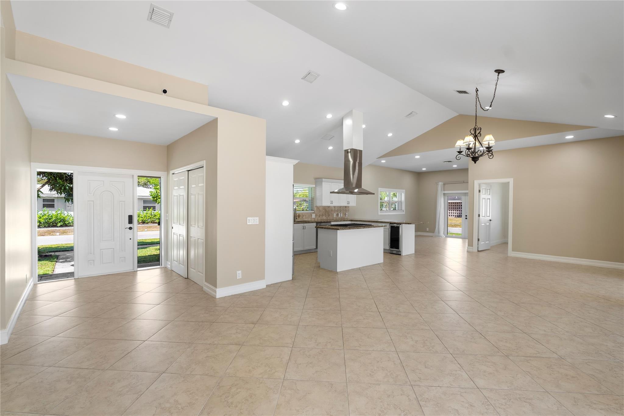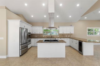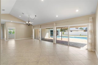 This centrally located, top schools, 4 bed and 3 bath corner lot house has new commercial grade medal roof, new fence and pool diamond bright all from 2024. House rebuilt in year 2005 with soaring high ceilings; new LED ceiling lights through out each room. 16 seer Tran A/C from 2019; All windows are protected by accordion shutters plus all west side windows has new impact widows; grand open kitchen with all wood cabinets and granite countertops and gas stove. Freshly painted inside out, Porcelain tiles in the living area, real oak wood flooring in three of the bedrooms, The grand patio is under a real pitched roof, shed storage with a new metal roof from 2020, Tropical mature fruit trees( sour sop, Jack fruit, 4 types of mangoes, Lychee, longan, avocado, banana