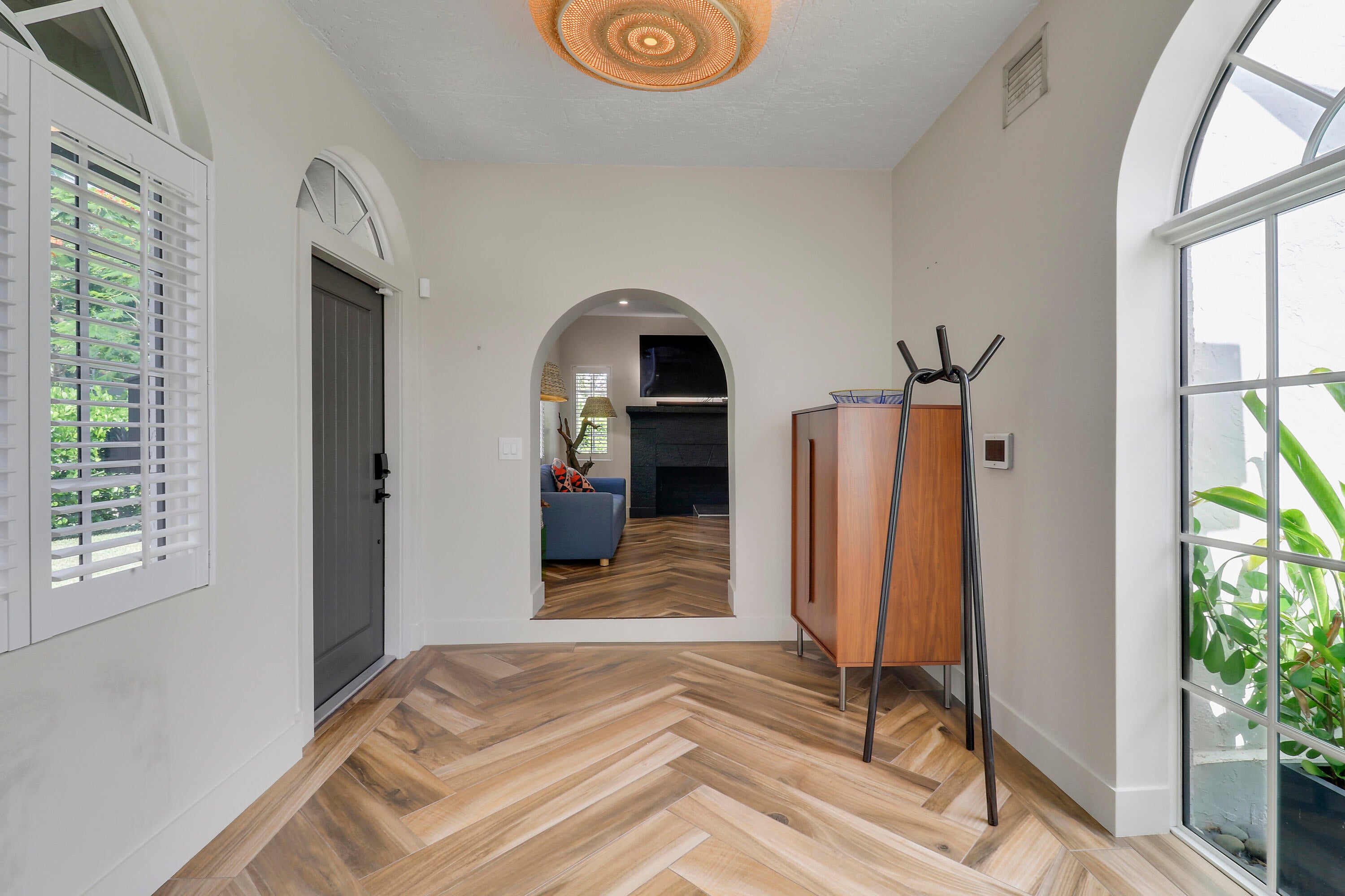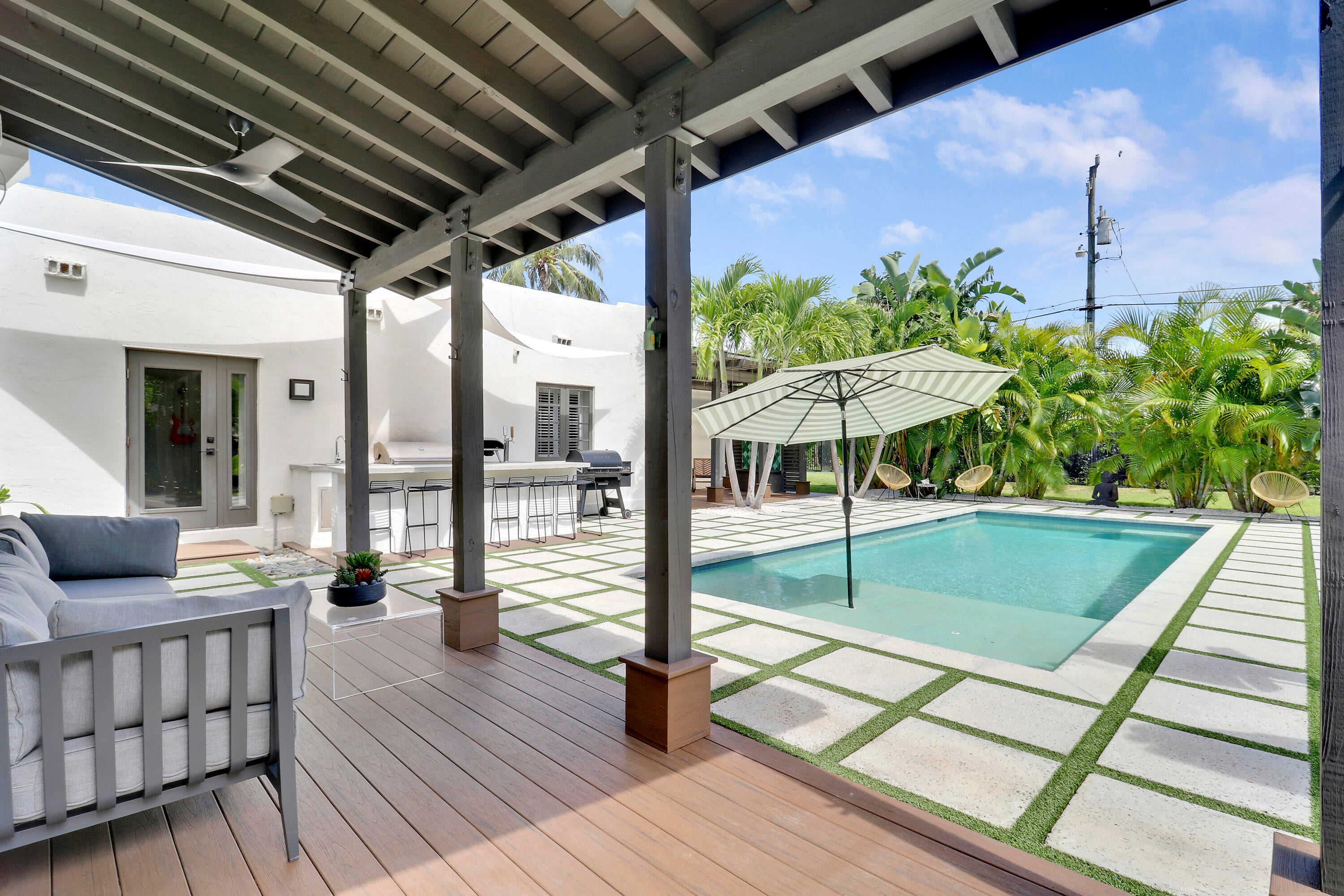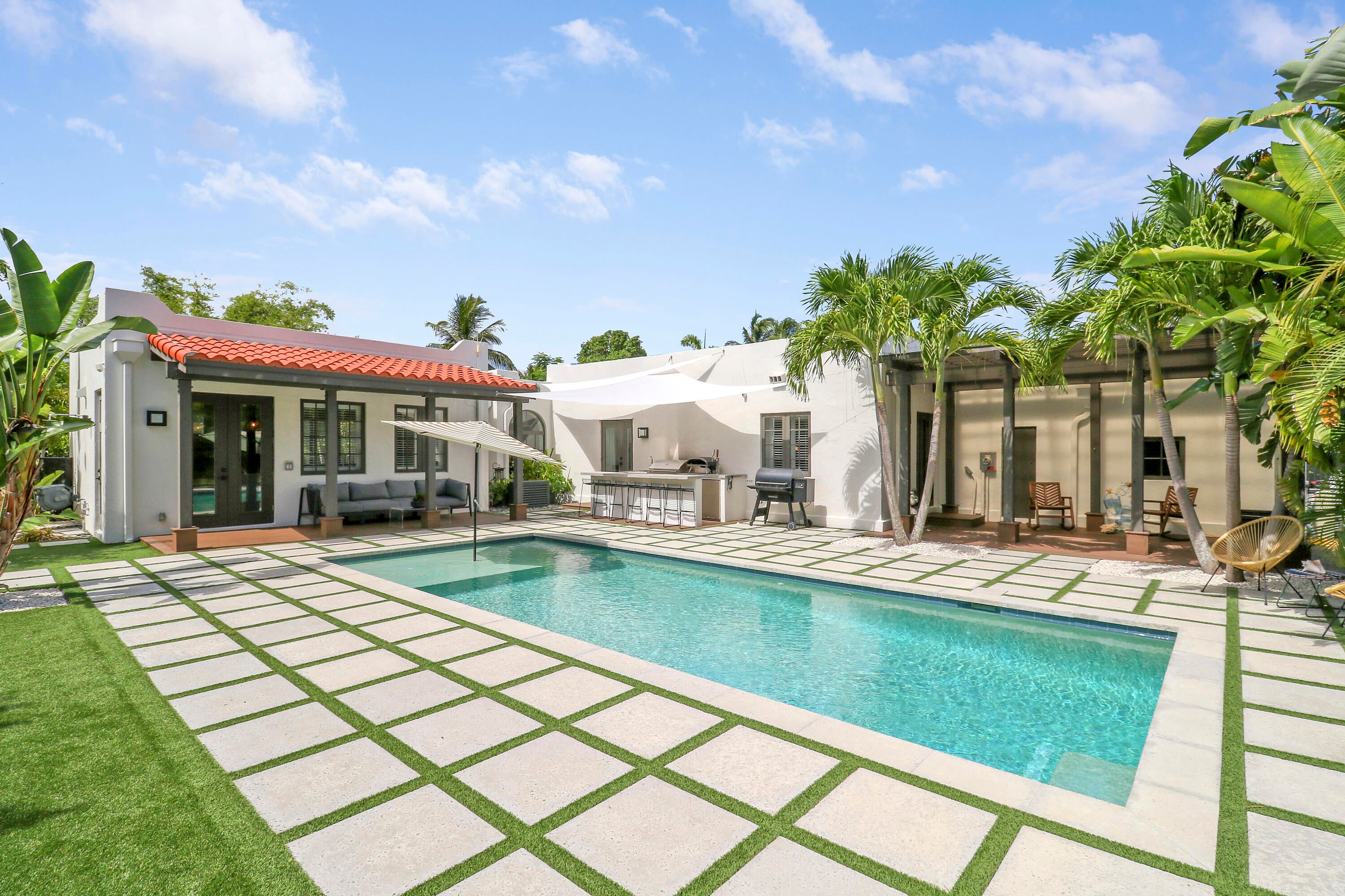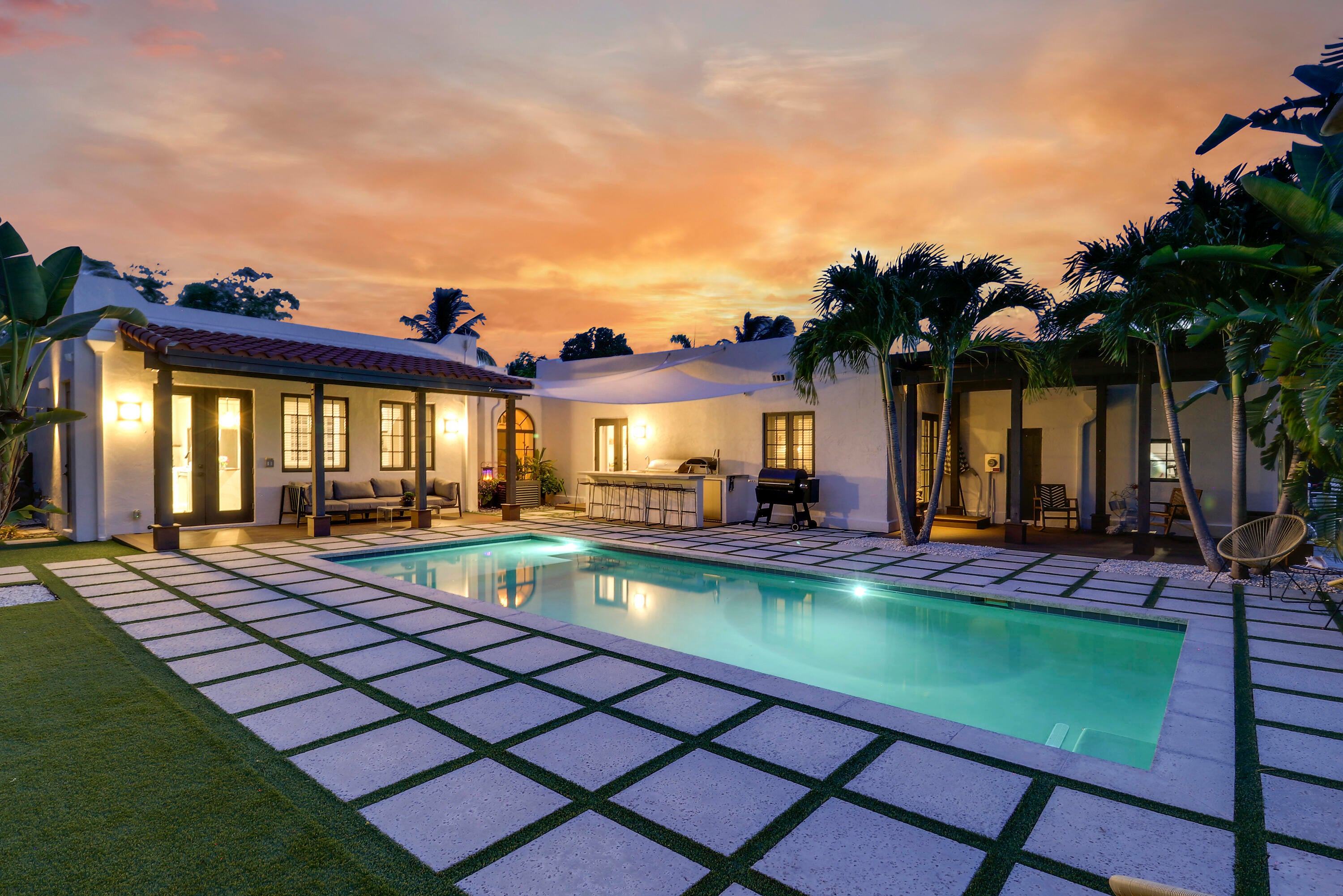 Step inside this 1925 Spanish Mission home in West Palm Beach's sought-after Flamingo Park, where historic character meets a full scale renovation. Every major system--from electrical and plumbing to foundation, roof, and windows--has been replaced, offering peace of mind while preserving historic charm. Sitting on a rare double corner lot, there's plenty of room to add an extra wing to the home or detached suite. Inside, you'll find arched doorways and windows, natural wood beams, herringbone tile floors throughout, and the original fireplace--all thoughtfully keeping the home's character alive. The stunning chef's kitchen and beautifully designed bathrooms, along with recessed lighting and smart home features, make daily living easy and modern.Outside, the backyard is your own private retreat, complete with a heated pool featuring a sun shelf, outdoor kitchen and bar, fire pit, artificial turf, an outdoor shower, and two covered porches including one off the primary suite. A whole-home generator adds reliability, and attached garage/storage area offers flexible space that could be converted to suit your needs. Located within walking distance to parks, shops, and dining, and just minutes from the water, downtown, and the airport, this home is perfectly positioned to enjoy everything West Palm Beach has to offer. *Renderings and floor plans are for illustrative purposes only and may not reflect the exact layout of the home. Actual dimensions and design may vary slightly. Renderings included in photos were approved by Historic Preservation Board of WPB.*