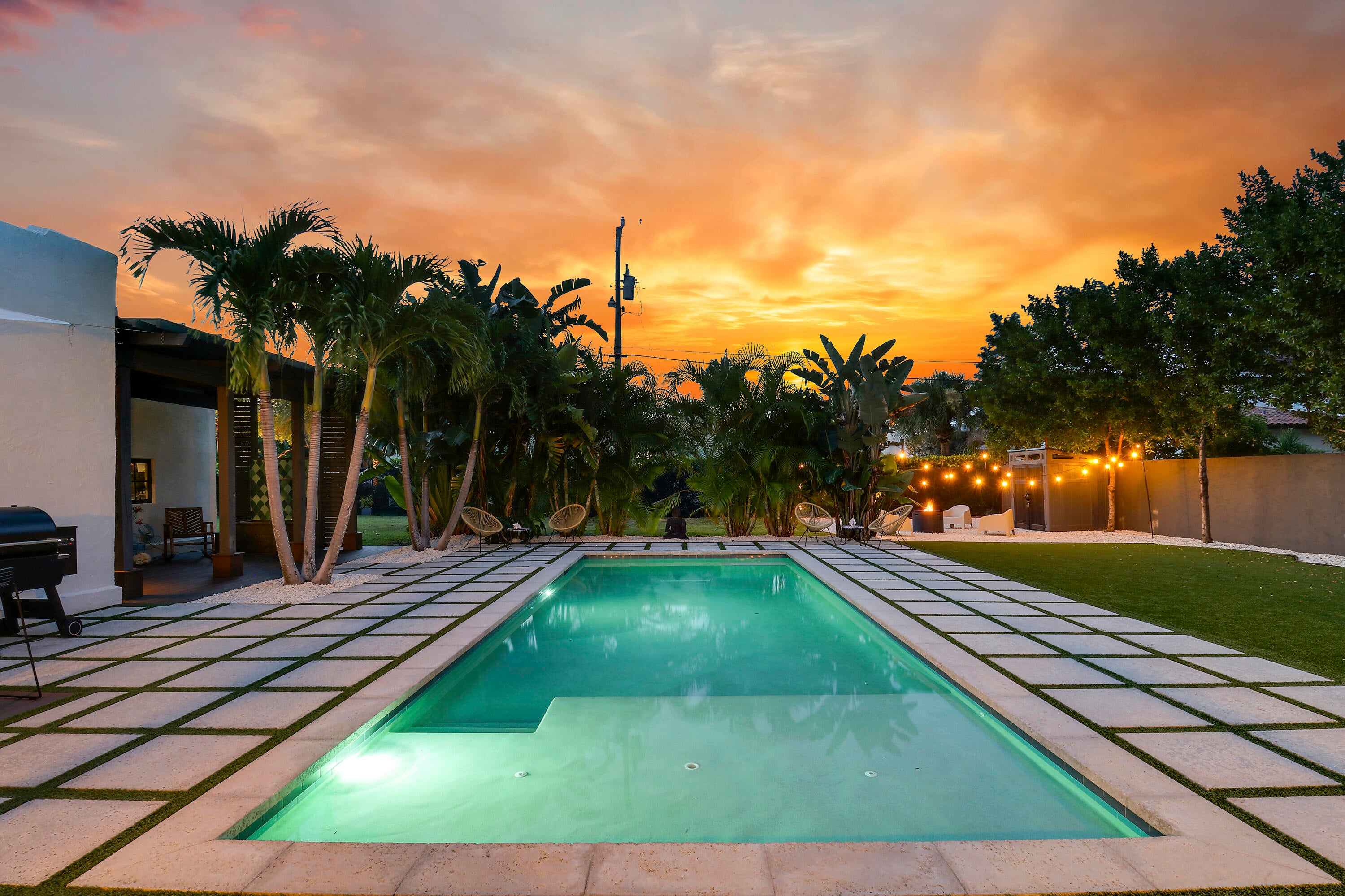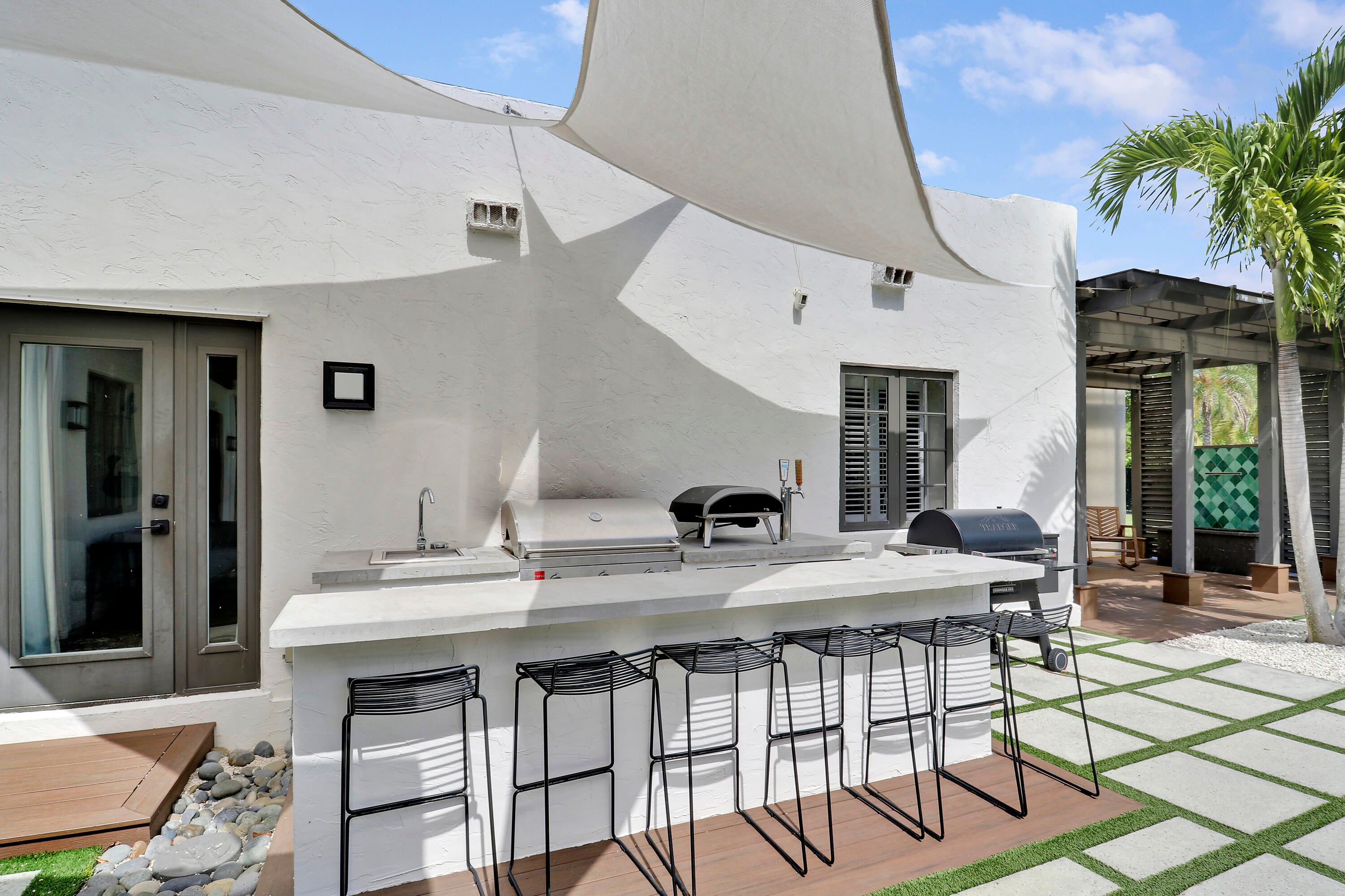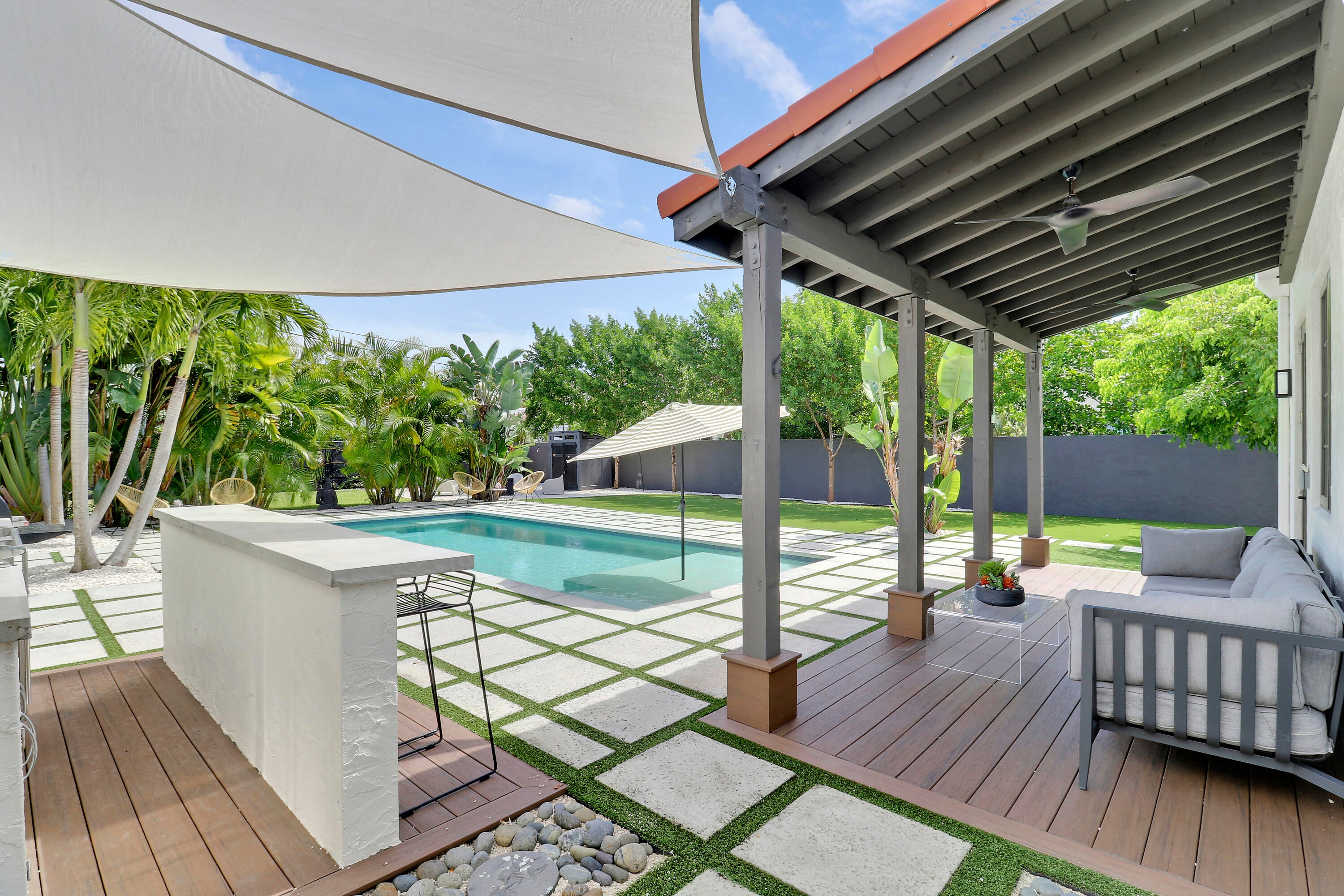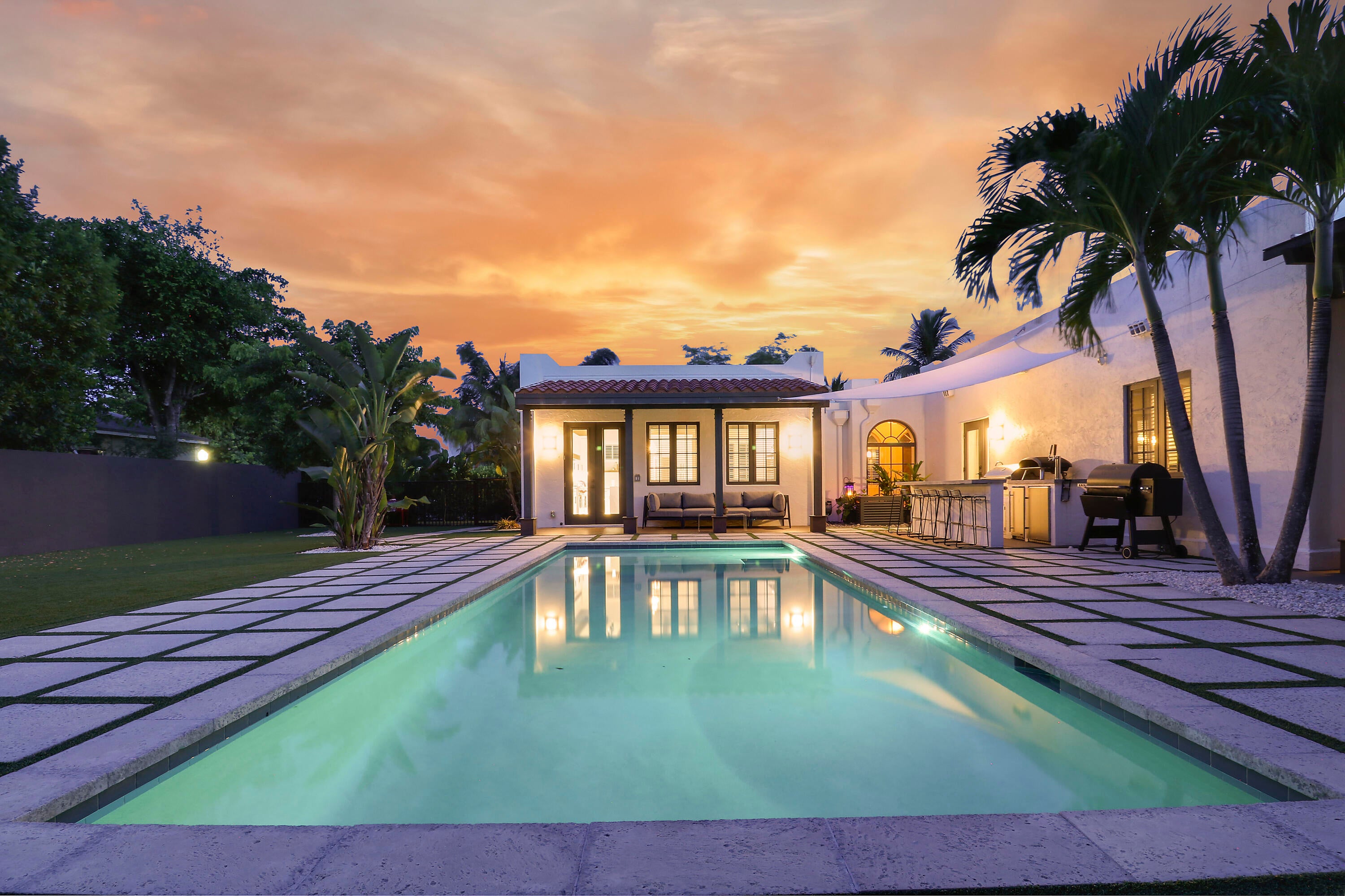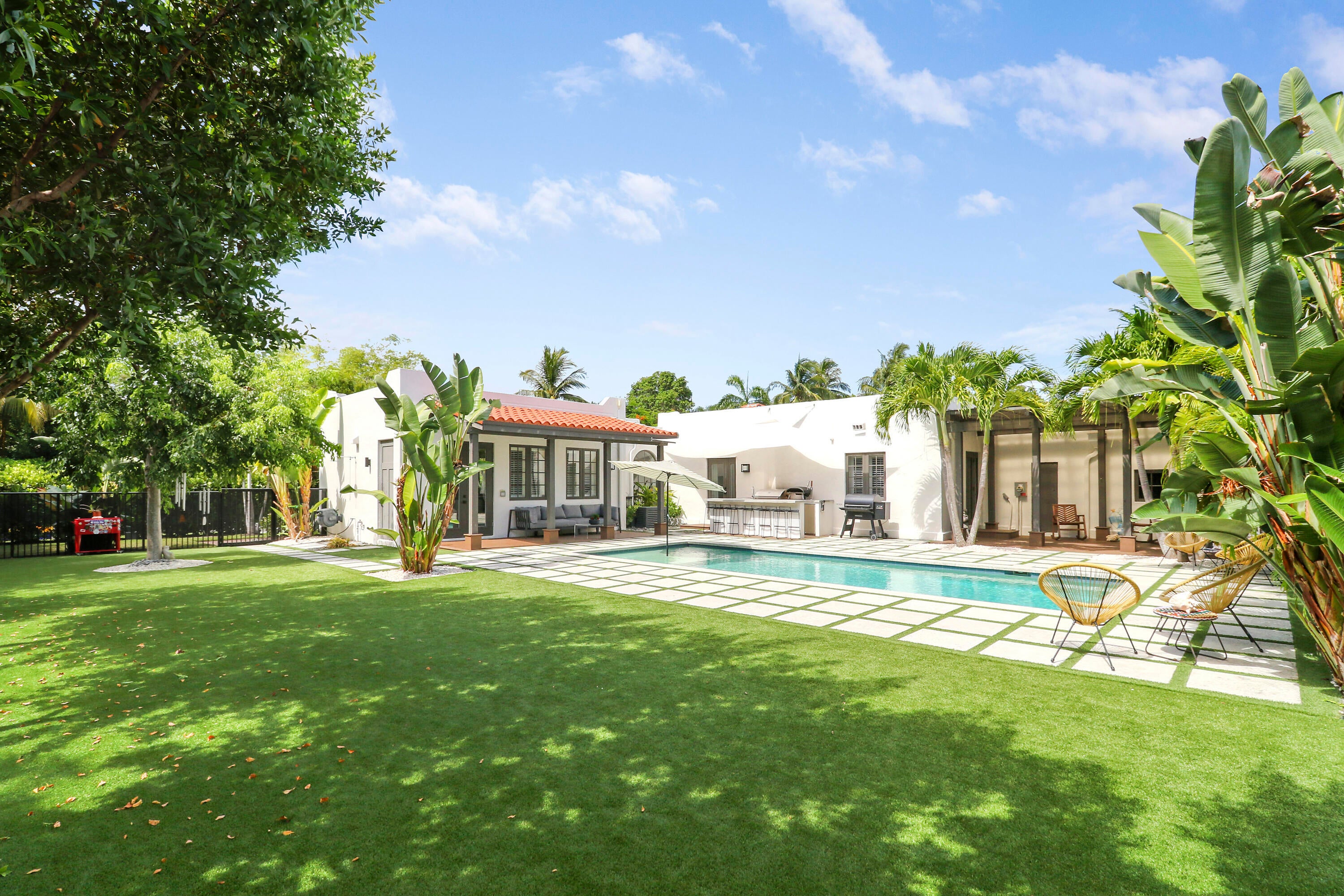 Step inside this 1925 Spanish Mission home in West Palm Beach's sought-after Flamingo Park, where historic character meets a full scale renovation. Every major system--from electrical and plumbing to foundation, roof, and windows--has been replaced, offering peace of mind while preserving historic charm. Sitting on a rare double corner lot, there's plenty of room to add an extra wing to the home or detached suite. Inside, you'll find arched doorways and windows, natural wood beams, herringbone tile floors throughout, and the original fireplace--all thoughtfully keeping the home's character alive. The stunning chef's kitchen and beautifully designed bathrooms, along with recessed lighting and smart home features, make daily living easy and modern.Outside, the backyard is your own private retreat, complete with a heated pool featuring a sun shelf, outdoor kitchen and bar, fire pit, artificial turf, an outdoor shower, and two covered porches including one off the primary suite. A whole-home generator adds reliability, and attached garage/storage area offers flexible space that could be converted to suit your needs. Located within walking distance to parks, shops, and dining, and just minutes from the water, downtown, and the airport, this home is perfectly positioned to enjoy everything West Palm Beach has to offer. *Renderings and floor plans are for illustrative purposes only and may not reflect the exact layout of the home. Actual dimensions and design may vary slightly. Renderings included in photos were approved by Historic Preservation Board of WPB.*