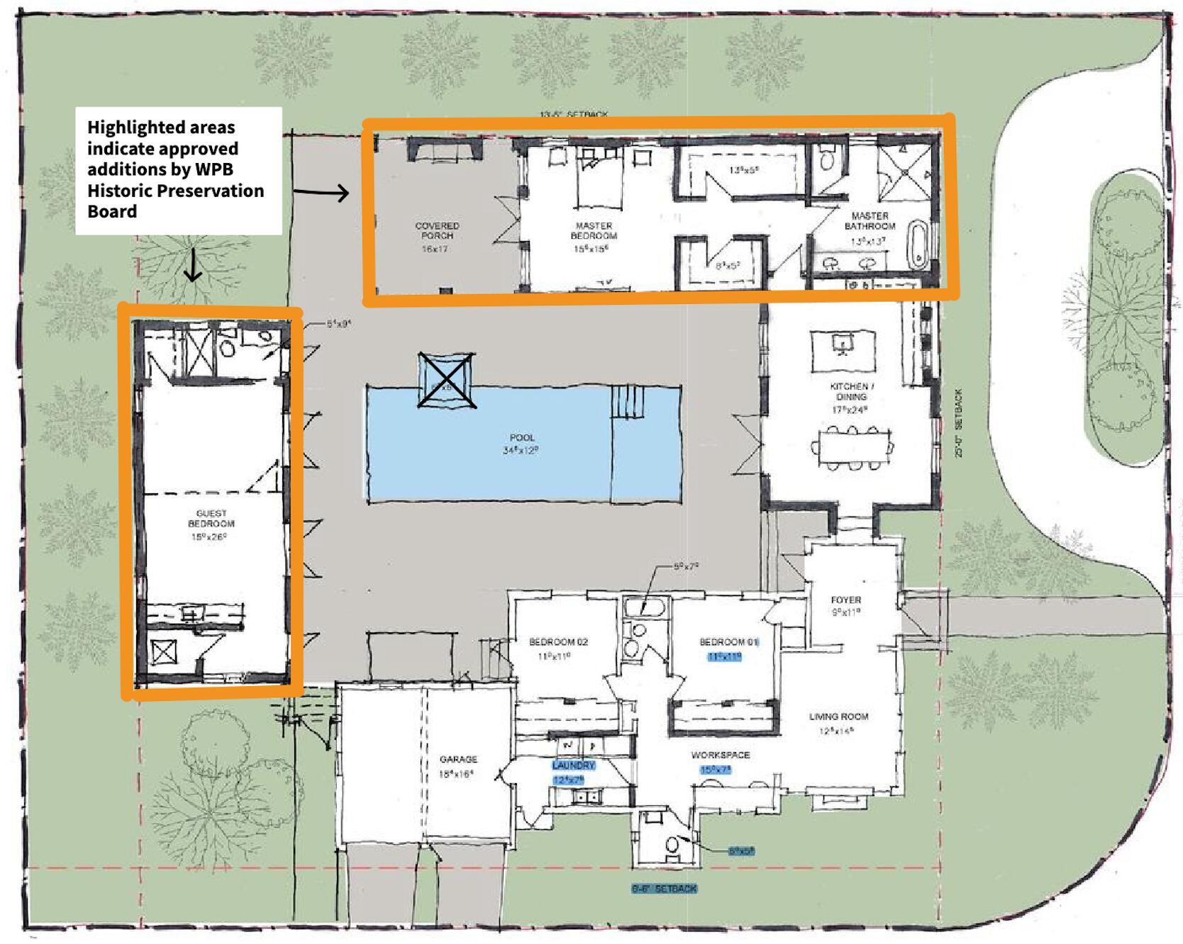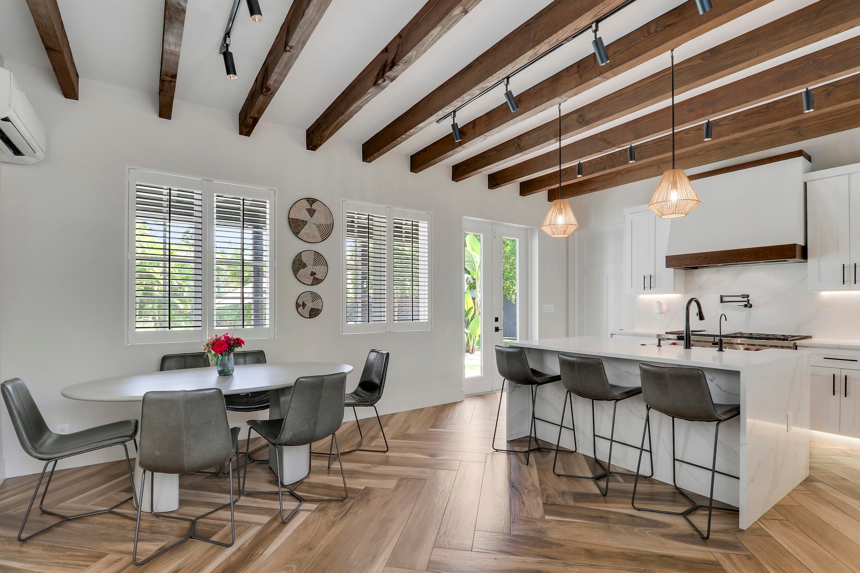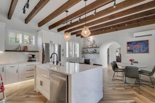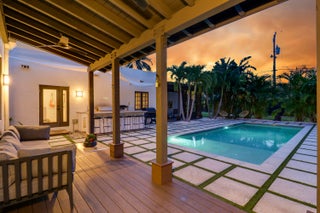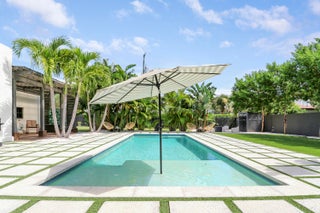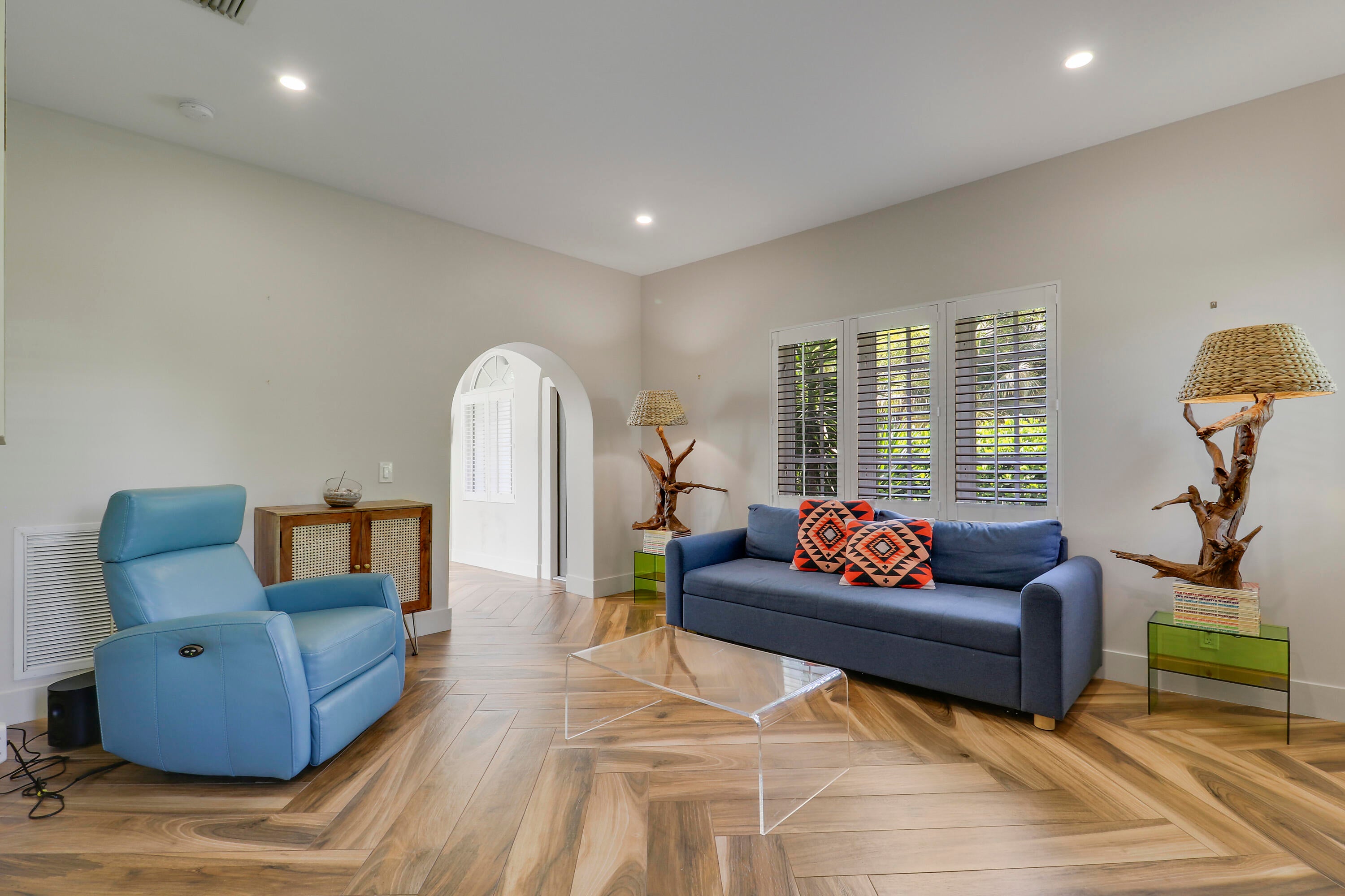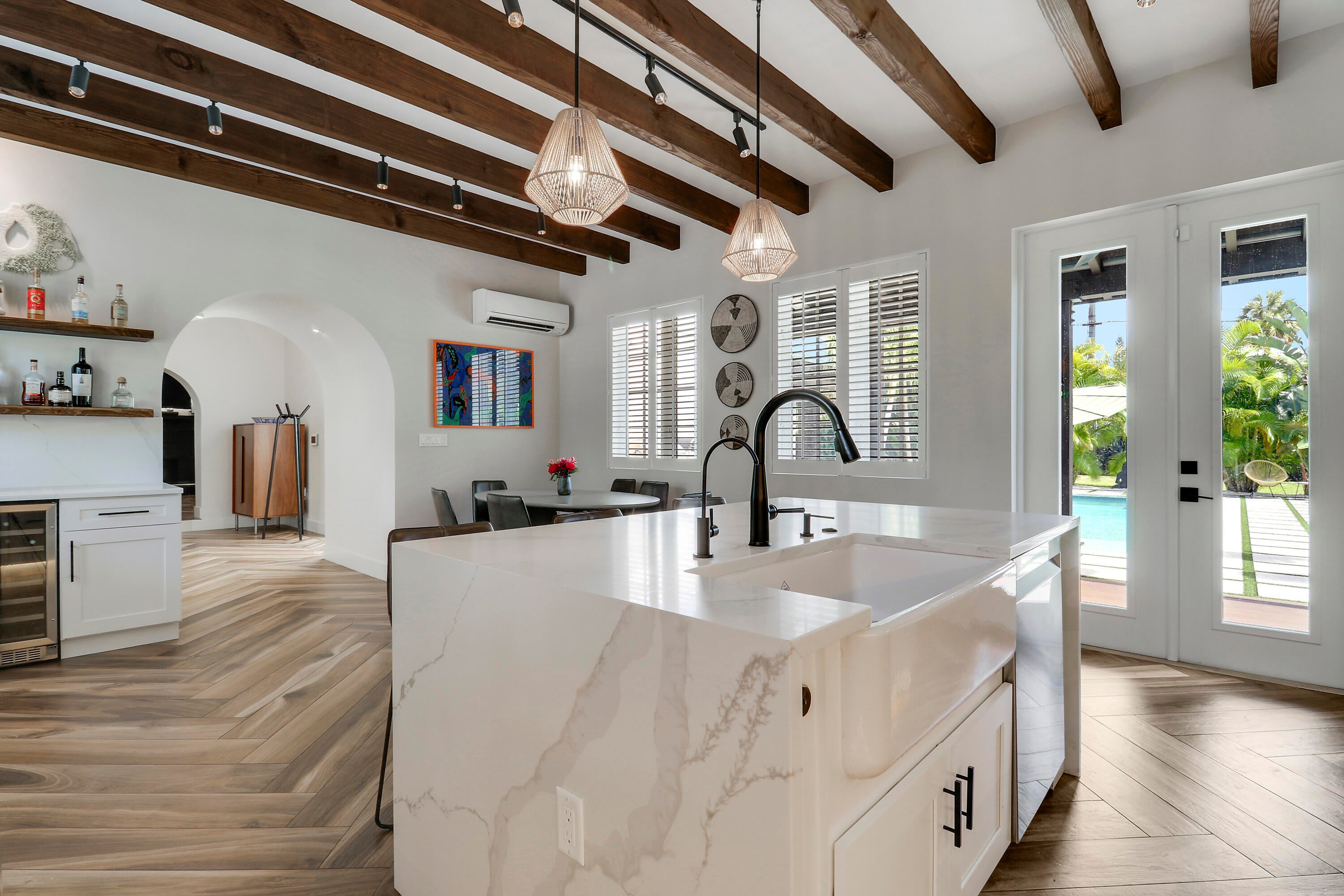 Step inside this 1925 Spanish Mission home in West Palm Beach's sought-after Flamingo Park, where historic character meets a full scale renovation. Every major system--from electrical and plumbing to foundation, roof, and windows--has been replaced, offering peace of mind while preserving historic charm. Sitting on a rare double corner lot, there's plenty of room to add an extra wing to the home or detached suite. Inside, you'll find arched doorways and windows, natural wood beams, herringbone tile floors throughout, and the original fireplace--all thoughtfully keeping the home's character alive. The stunning chef's kitchen and beautifully designed bathrooms, along with recessed lighting and smart home features, make daily living easy and modern.Outside, the backyard is your own private retreat, complete with a heated pool featuring a sun shelf, outdoor kitchen and bar, fire pit, artificial turf, an outdoor shower, and two covered porches including one off the primary suite. A whole-home generator adds reliability, and attached garage/storage area offers flexible space that could be converted to suit your needs. Located within walking distance to parks, shops, and dining, and just minutes from the water, downtown, and the airport, this home is perfectly positioned to enjoy everything West Palm Beach has to offer. *Renderings and floor plans are for illustrative purposes only and may not reflect the exact layout of the home. Actual dimensions and design may vary slightly. Renderings included in photos were approved by Historic Preservation Board of WPB.*