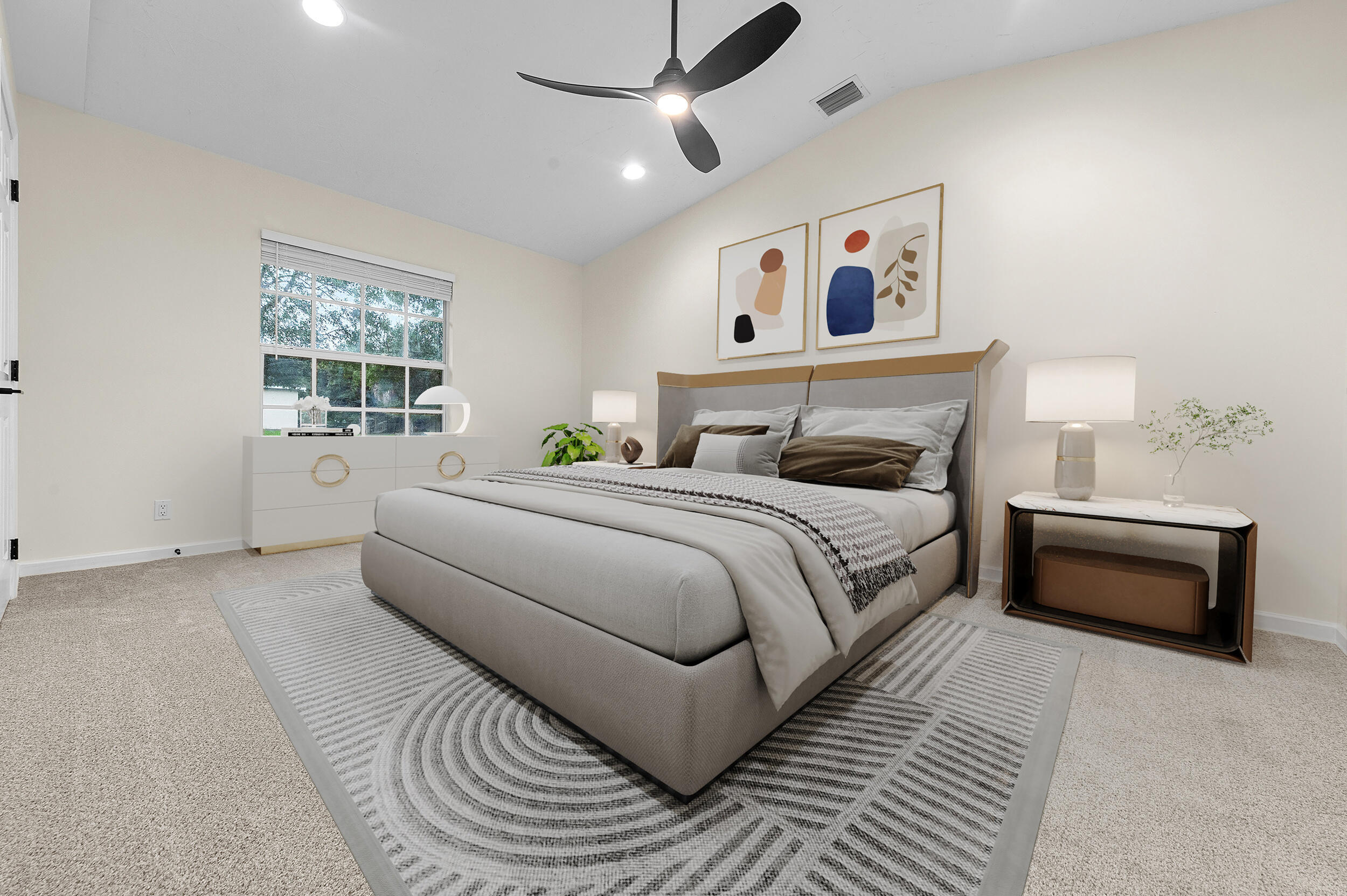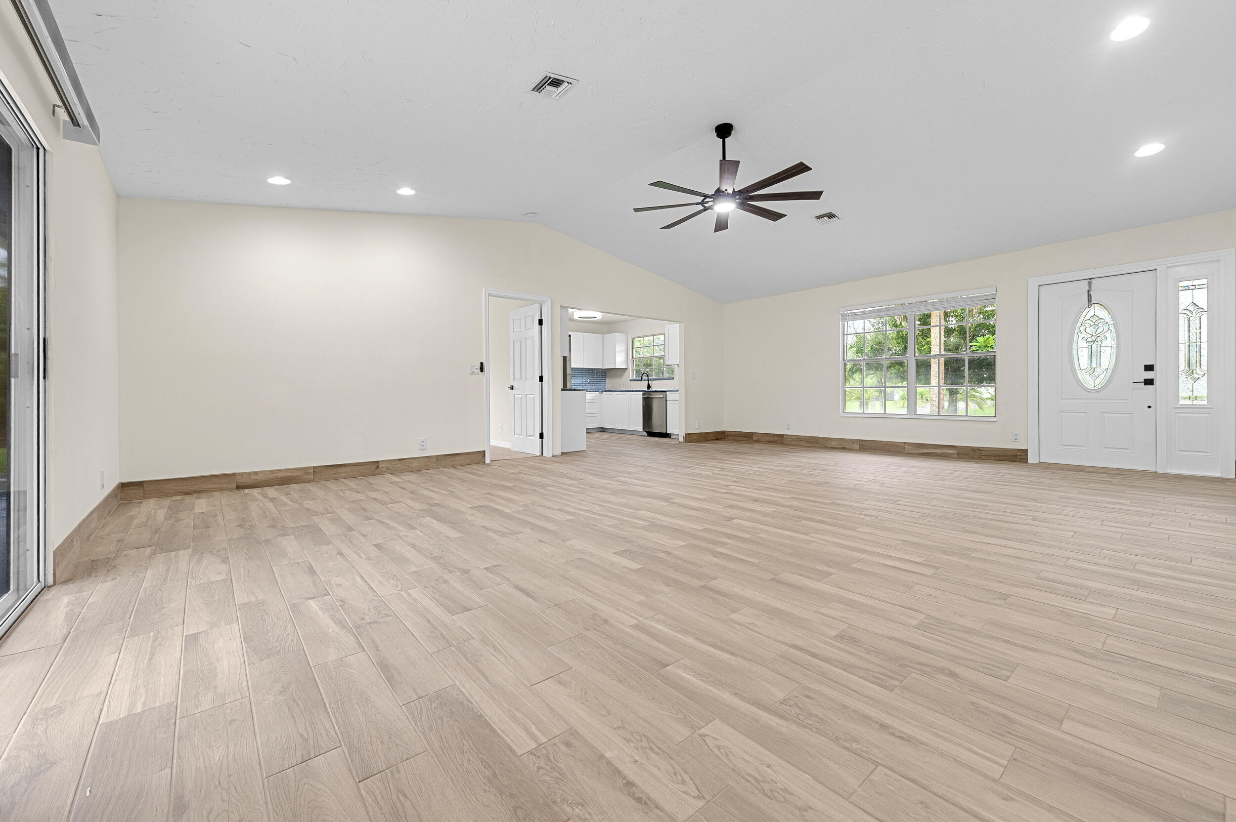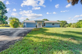 Welcome to this beautifully remodeled 3-bedroom, 3-bathroom home with a two-car garage, set on 1.15 acres in The Acreage. A brand-new roof (February 2025) and updated interiors make this property fully turnkey, offering peace of mind and modern comfort. Located on a paved road within a desirable, developing area, the home combines privacy with convenience. Surrounded by open space, it provides a lifestyle of relaxation with room to expand--perfect for enjoying the quiet of The Acreage while still having a fresh, move-in-ready home.Built in 1991 and expanded in 2005, this home offers a spacious layout with both comfort and flexibility. The primary suite measures 20' x 11.8' and features a luxurious 11.3' x 20' bathroom with two large walk in closets, and private patio access, creating a retreat tucked at the back of the home. An additional en-suite bedroom provides convenience for family or guests. Recent updates include new flooring throughout, fresh neutral paint, modern blinds, and new ceiling fans that enhance the bright, refreshed interior. A fully remodeled kitchen serves as the heart of the home, while the original bathroom has been beautifully updated to match today's modern finishes.