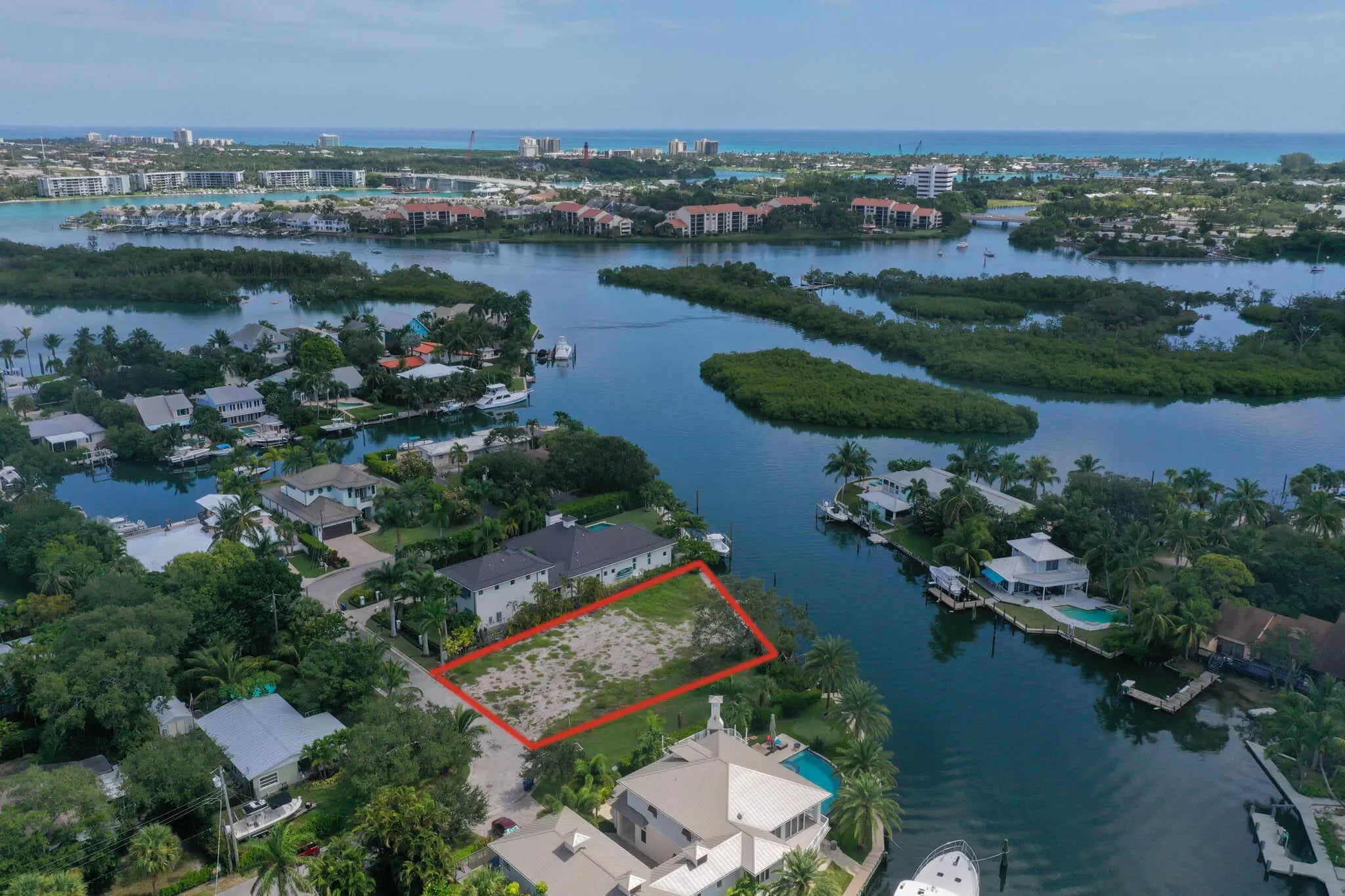 RARE!! Deep water, protected, large boat dockage! This homesite in Yacht Club Estates in Jupiter is ready to build! Approximately 85' of water frontage in this quaint non-HOA neighborhood. Direct access to Jupiter Inlet, no fixed bridges, close proximity to waterfront dining, shops, golf, and the crystal clear beaches of Jupiter. Full seawall replacement is in process at sellers expense. Custom house plans with pool are on hand and available.