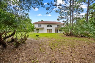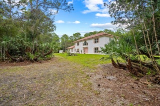 Great opportunity to acquire a truly unique estate property--only the second time on the market in 30 years!Nestled on almost 4.5 high-and-dry ACRES, this Mediterranean-style, 3400 square foot, CBS residence is located on the prestigious north side of Indiantown Road in Jupiter Farms. An area known for its equestrian lifestyle. Designed for complete privacy and seclusion, surrounded by mature trees, exotic plants, and natural beauty, creating a serene retreat that offers both elegance and tranquility.The concrete block home needs updating, but has good bones.The possibilities are as vast as the acreage itself. Dual, tree-lined, wrap-around driveways provide access from both 127th and 128th, ensuring ease of entry and exit while enhancing security. As a true testament to its seclusion, the residence itself cannot be seen from either entrance, offering the ultimate in privacy and exclusivity. The expansive, open-plan living area is the heart of the home, showcasing a soaring 22-foot vaulted ceiling, an abundance of natural light, a striking arched feature window, and sliding doors that open directly to the garden. A gallery-style landing and open staircase further enhance the sense of space and elegance. The ground floor also includes a well-appointed kitchen, a large guest bedroom, and a guest bathroom/laundry. The seller notes that the walk-in closet in the guest bedroom is pre-plumbed, providing the option to convert it into a private en-suite bathroom. Upstairs, the master suite spans the entire side of the home and offers a peaceful retreat with two walk-in closets, a cozy sitting area, an en-suite bathroom with an oversize shower stall, 'Jacuzzi' tub, and sliders to a generous private balcony, perfect for enjoying your morning coffee or unwinding with your favourite tipple at sunset. The loft/bedroom on the other side includes a workout/dance studio area, an additional balcony, and a private bathroom Other benefits include: a side-load, 3-car garage/workshop, gates at both entrances, an ADT security system including an alarm & external cameras, security lighting, Lennox AC units, recently updated well equipment with a high power pump, and so much more...