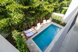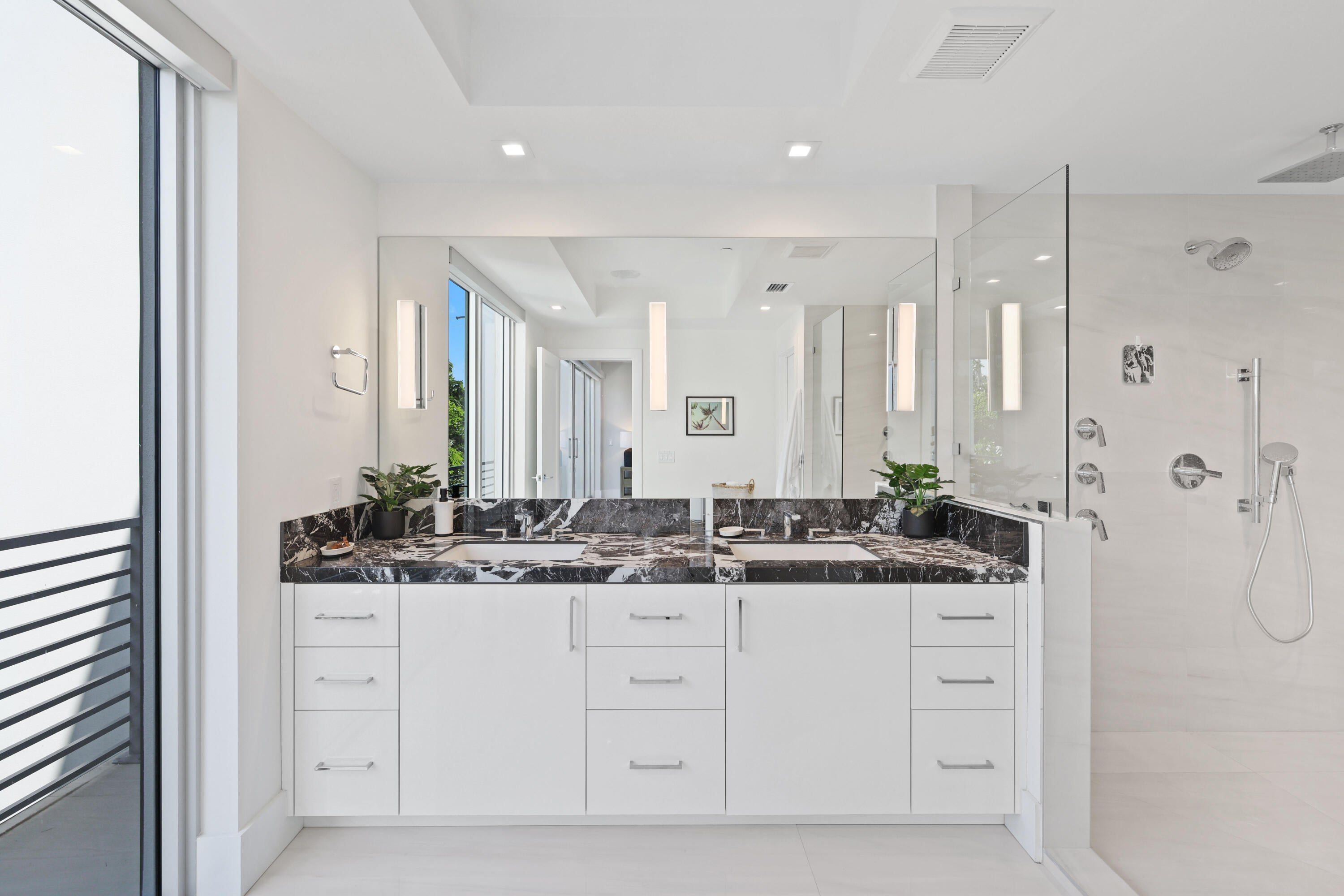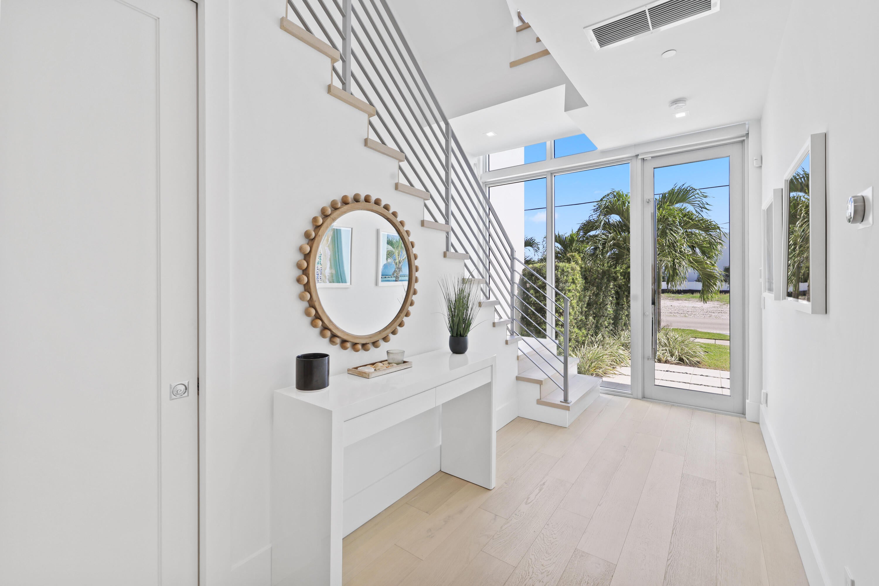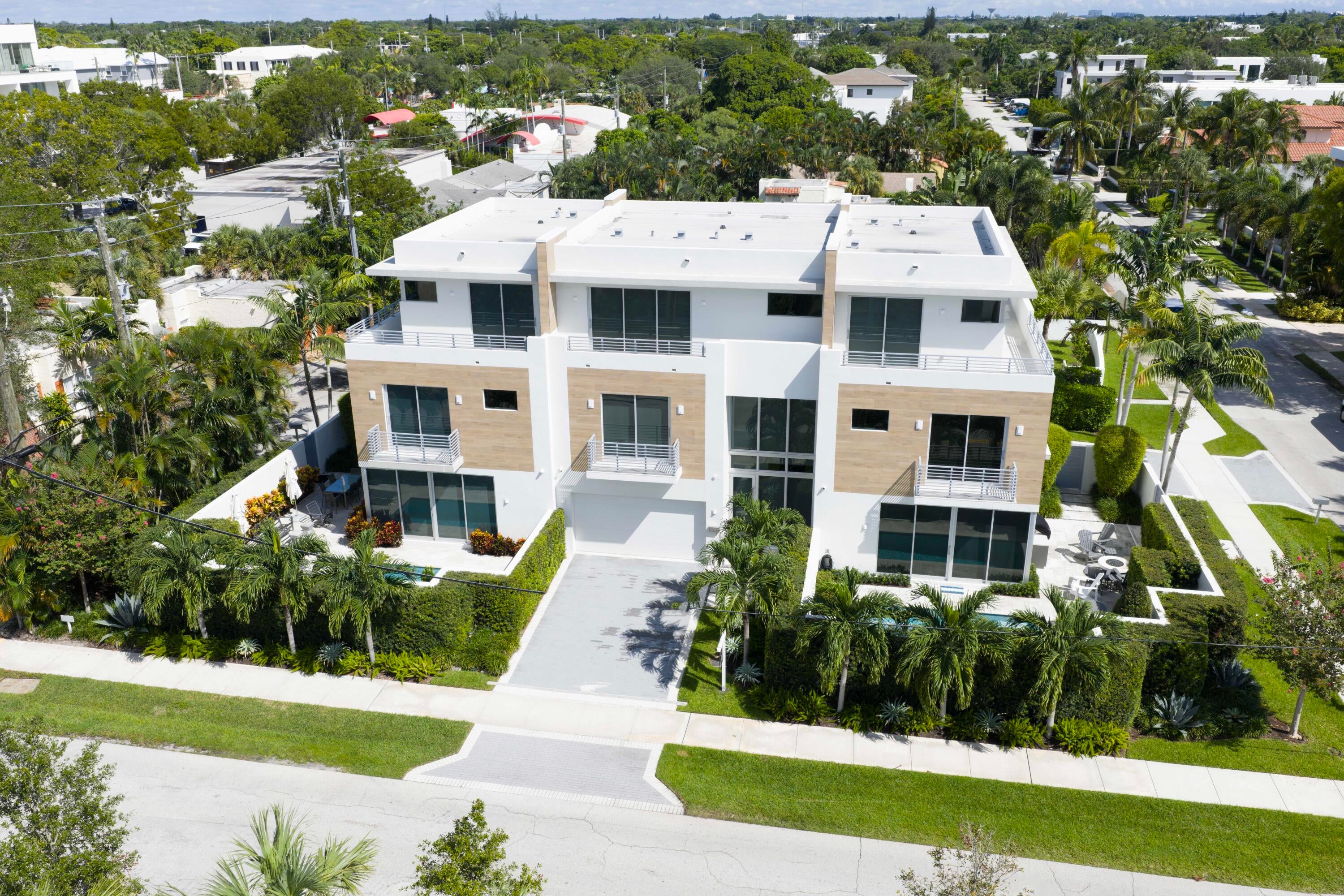 Modern Luxury Meets Coastal Living in the Heart of Delray Beach. Ideally situated just two blocks north of vibrant Atlantic Avenue and steps from the charm of Pineapple Grove, this exceptional residence offers walkable access to Delray's finest dining, shopping, art galleries, and nightlife. And with the beach less than a mile away, your dream of coastal living is truly within reach. Completed in 2021, this masterfully designed home showcases three levels of impeccable craftsmanship, seamlessly blending industrial modern aesthetics with warm, refined finishes. Every square foot has been thoughtfully optimized -- featuring soaring ceilings, floor-to-ceiling glass, and an open layout that enhances light, flow, and function.A private elevator effortlessly connects all three levels, adding convenience and accessibility. High-end details abound, including Wolf and Sub-Zero appliances, sleek porcelain countertops, and custom European cabinetry throughout. Step outside into your own private tropical retreat, complete with a spa-heated saltwater pool surrounded by lush landscaping. With an additional 472 sq. ft. of balcony space and a stunning backyard oasis, this home is made for entertaining or simply relaxing in total privacy. Whether you're strolling to new restaurants, catching a sunset on the beach, or enjoying quiet moments at home, this residence perfectly captures the essence of luxury Delray Beach living.