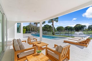 Stunning fully renovated 4-bedroom, 4-bathroom home in the prestigious Palm Beach Polo and Country Club. Offers beautiful water views, top-tier finishes, hurricane-impact windows and doors, and thoughtful design throughout. Step into an open-concept living space with an abundance of natural light. The gourmet kitchen features quartzite countertops, custom cabinetry, Subzero and Wolf appliances, a walk-in pantry, and a spacious island perfect for entertaining. Each of the four generously sized bedrooms provides a private retreat. The primary suite is a true sanctuary, complete with a luxurious spa-like en-suite bath including steam shower, private patio, and walk-in closet. Outside, enjoy your private saltwater pool overlooking serene water views.