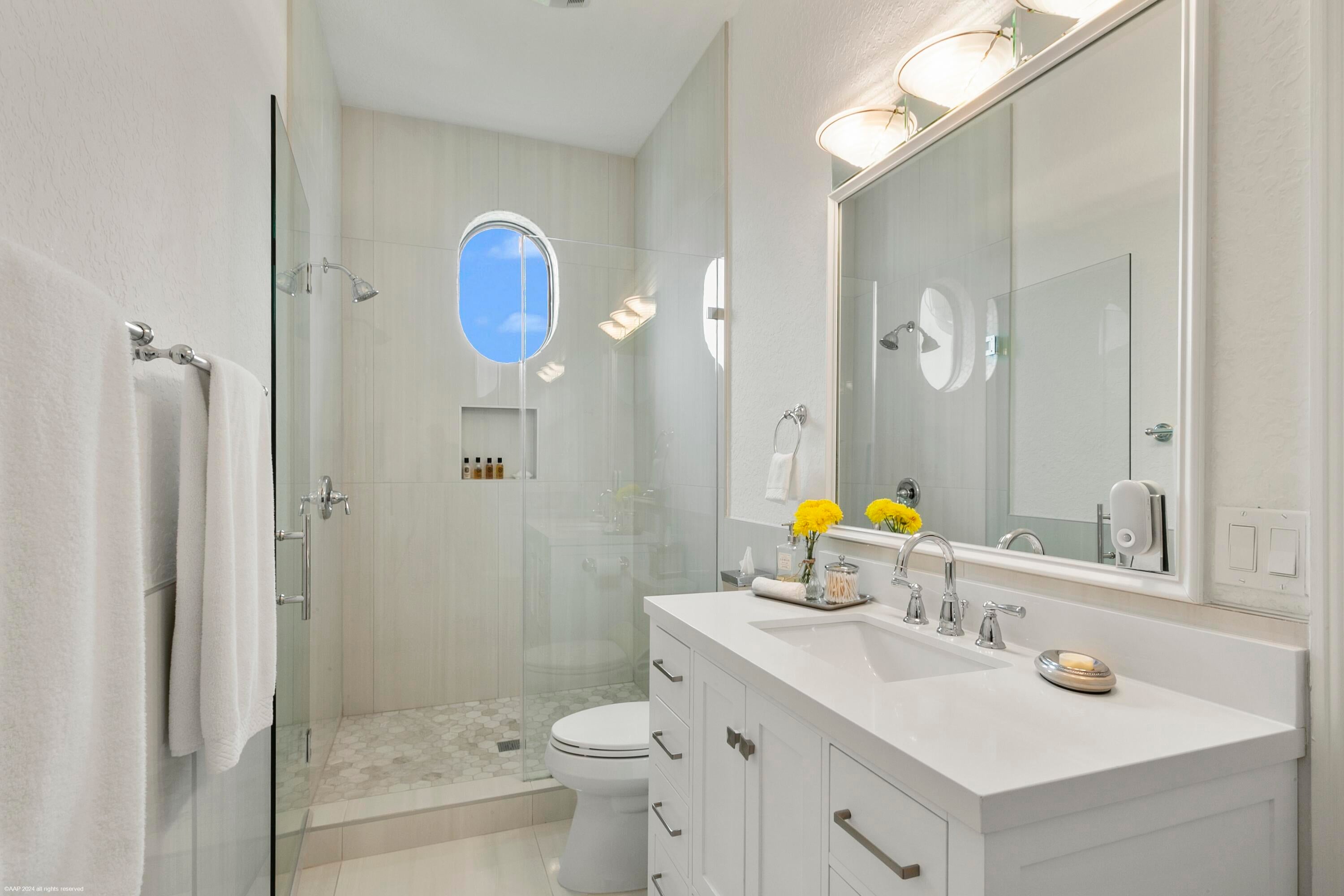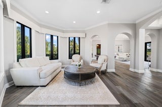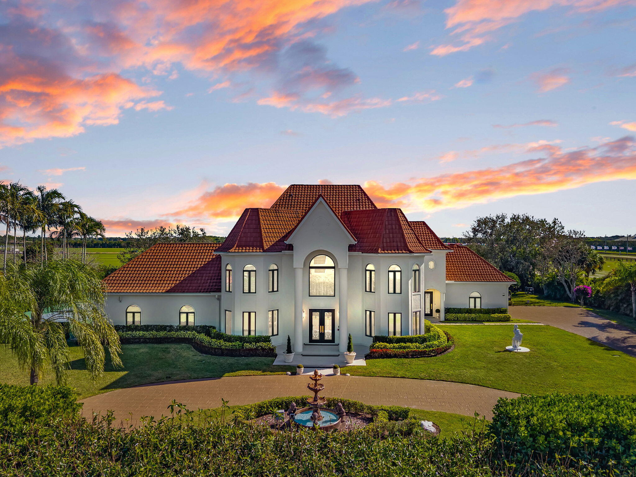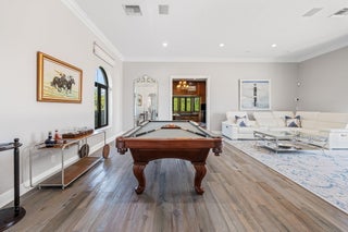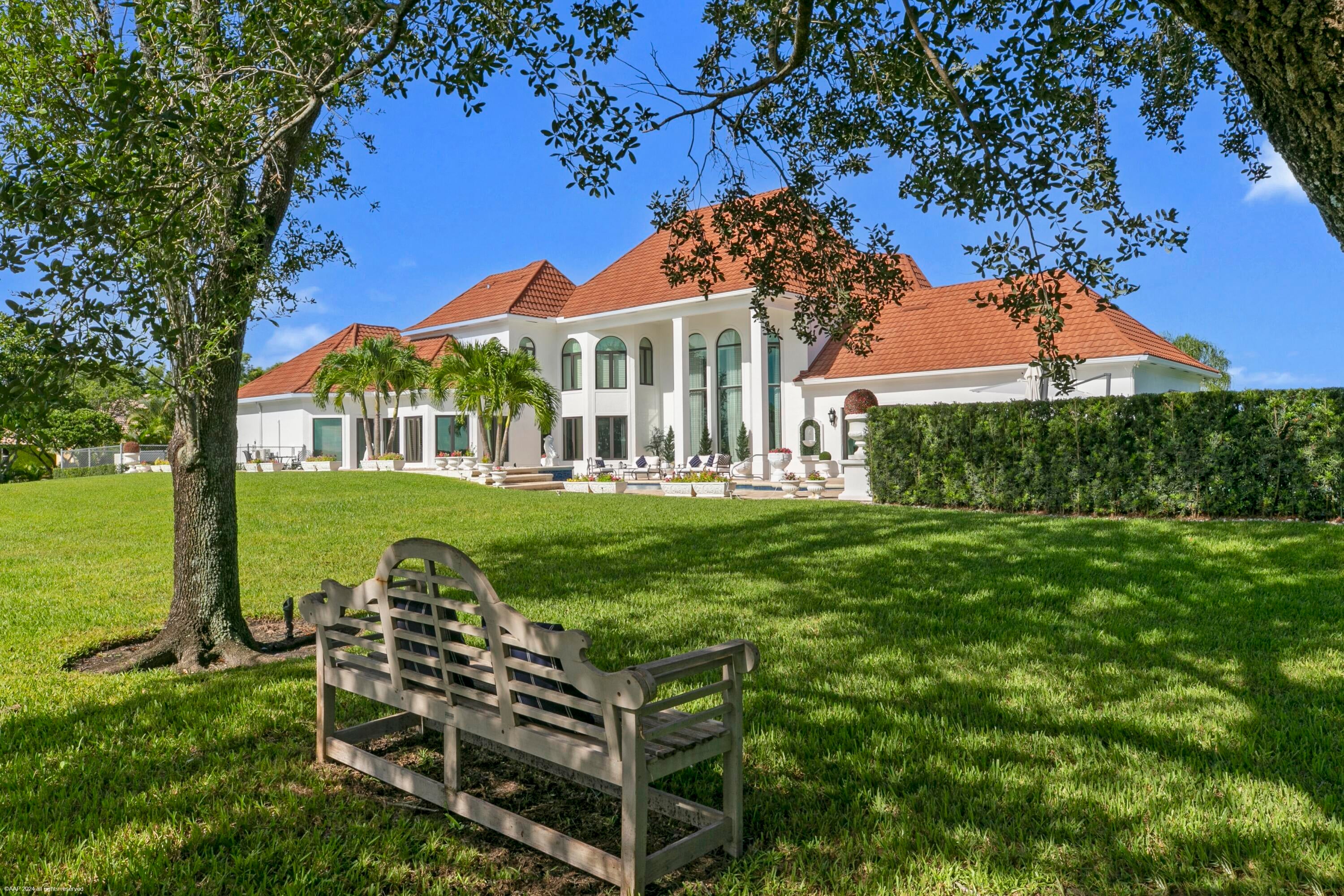 With no expenses spared, this completely renovated Southfield's of Palm Beach Polo Club Estate is situated on 5 private polo fields. This turn-key 5 bed, 4.5 bath, 5,677 sq. ft. home is just a short golf cart ride from all equestrian show grounds. Enjoy this 5 Star resort style estate with one of South Florida's largest residential heated salt water pools 88ft long, stone coated metal roof, gated entry, pickleball court, and full outdoor kitchen. Stunning interiors with soaring ceilings, picture windows, spiral staircase, and chef's catering kitchen with 120'' marble waterfall island. Upgrades include new hurricane-proof windows/doors, 5 new remodeled baths, AC garage, Sonos audio, security cameras, water-leak detection, and whole-house generator.
