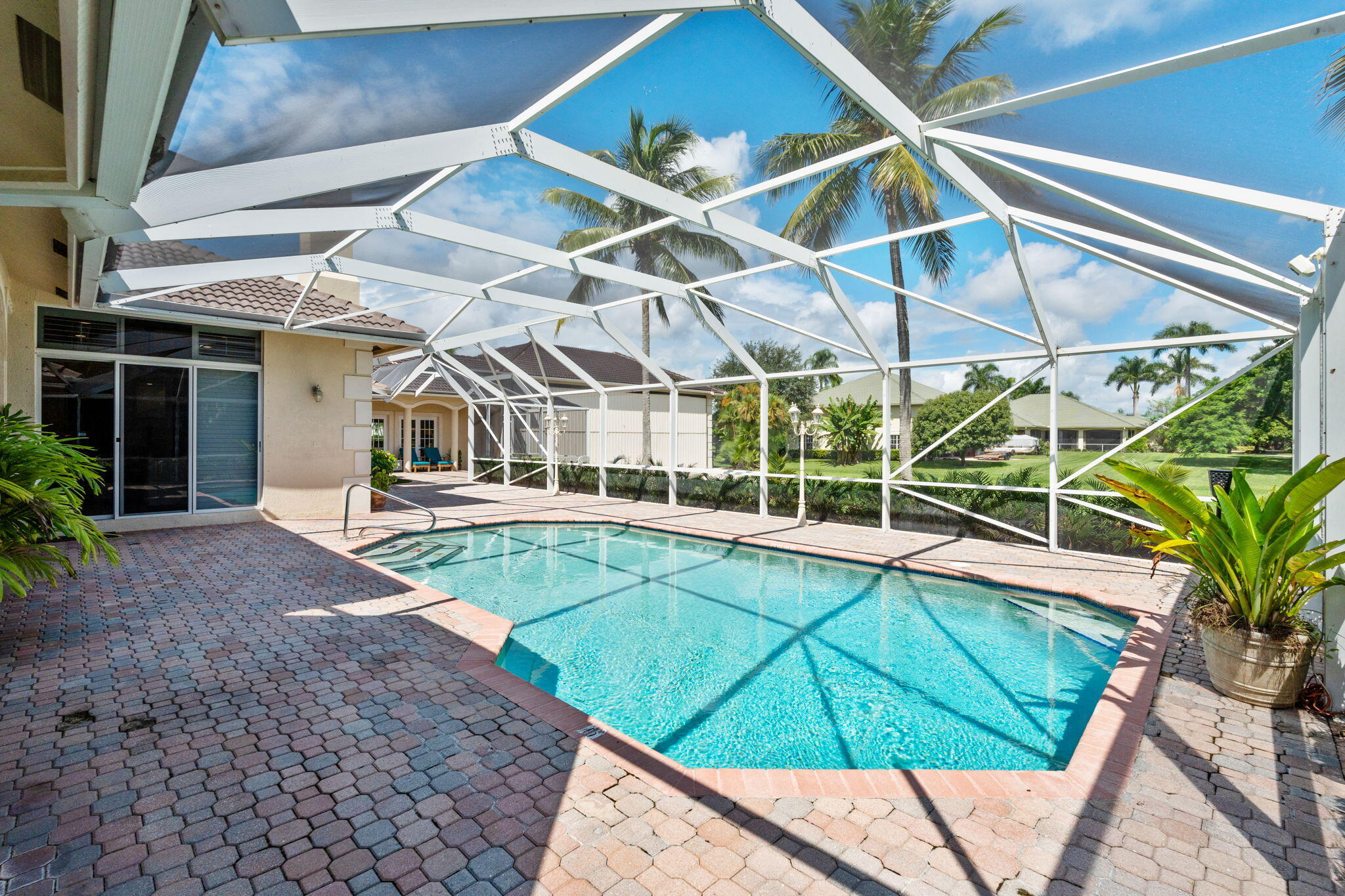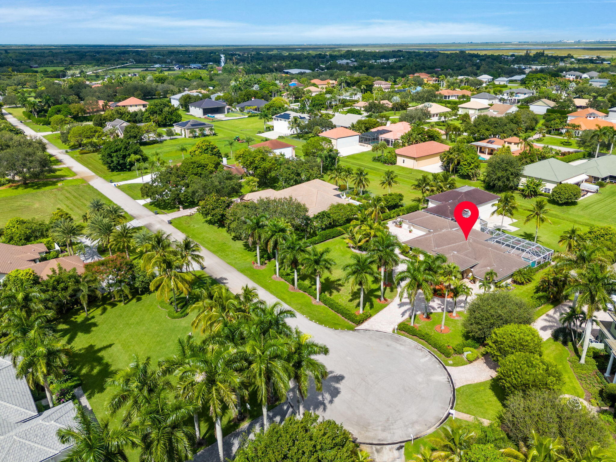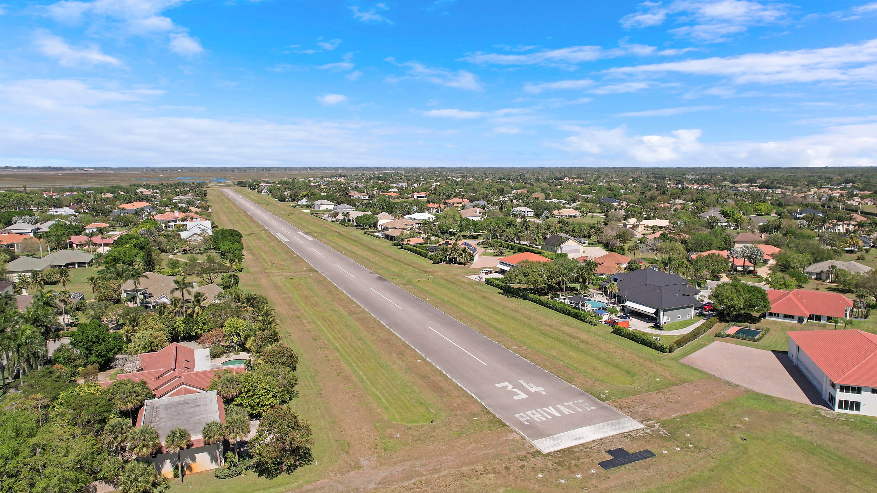 Experience unparalleled luxury and aviation lifestyle in Wellington's prestigious Aero Club, where elegance meets direct runway access. Just one lot away from the community's private, paved, and lighted 4,000-ft runway, the property provides unimpeded access for aircraft up to 12,500 lbs. gross takeoff weight, with fueling and additional parking available. A private 2,000 sq. ft. hangar, built in 2008, features impact-resistant windows and doors, a 50' x 40' interior with a 14-ft clearance bi-fold door to accommodate most jets and turboprops, plus an additional 10' x 14' door designed for RVs and buses. Engineered to withstand sustained winds of up to 140 mph, the hangar is a rare asset for pilots and aviation enthusiasts. This custom estate offers 7,240 total square feet of luxury living, including 3,707 sq. ft. under air: 3,289 sq. ft. in the main house and a 418 sq. ft. game room with a split AC unit that opens to the oversized screened patio. The home features 5 bedrooms (one currently used as an office) and 4 full bathrooms. The 2,651 sq. ft. patio includes standing lights and a 450 sq. ft. heated pool with a new heater, perfect for entertaining. A huge extended driveway provides ample parking, ideal for gatherings and hosting guests. The oversized 3-car garage (23 ft. deep by 34 ft. wide, featuring 8-ft. high impact-resistant doors) accommodates large SUVs, while the porte-cochere provides covered entry during inclement weather. Interior highlights include 8-ft. solid-core doors, plantation shutters, quartz countertops, two jetted Jacuzzis, upgraded factory-tinted impact sliders, central vacuum, and a gas fireplace. Additional features include a 2021 Roof, 250-gallon propane tank, 100-ft irrigation well, outdoor kitchen-ready hookups, newer AC units (under 4 years old), a newly serviced septic system, and new gutters around the main house and hangar. Built with superior construction featuring tie-beams, tie-columns, and a two-foot roof overhang, the home is enhanced by professional landscape lighting and a quiet cul-de-sac location for added privacy. Residents enjoy low HOA and unparalleled amenities, direct runway access, proximity to world-class equestrian venues, shopping, dining, and an A-rated school district. Dining room chandelier does not convey, and some photos have been digitally staged. All information provided by the broker and its representatives, including but not limited to pricing, square footage, calculations, and statistics, is deemed reliable but not guaranteed and is subject to errors, omissions, or changes without notice. Buyers and their representatives must independently verify all details.