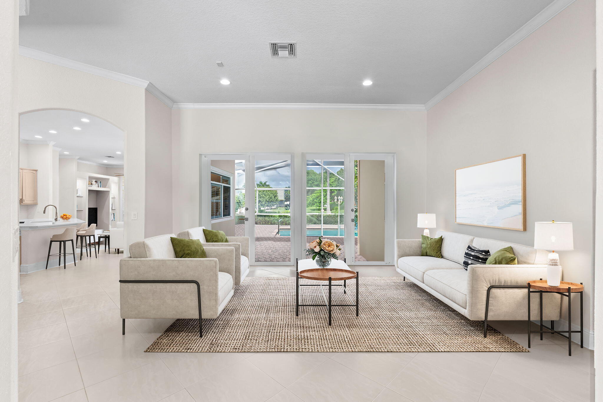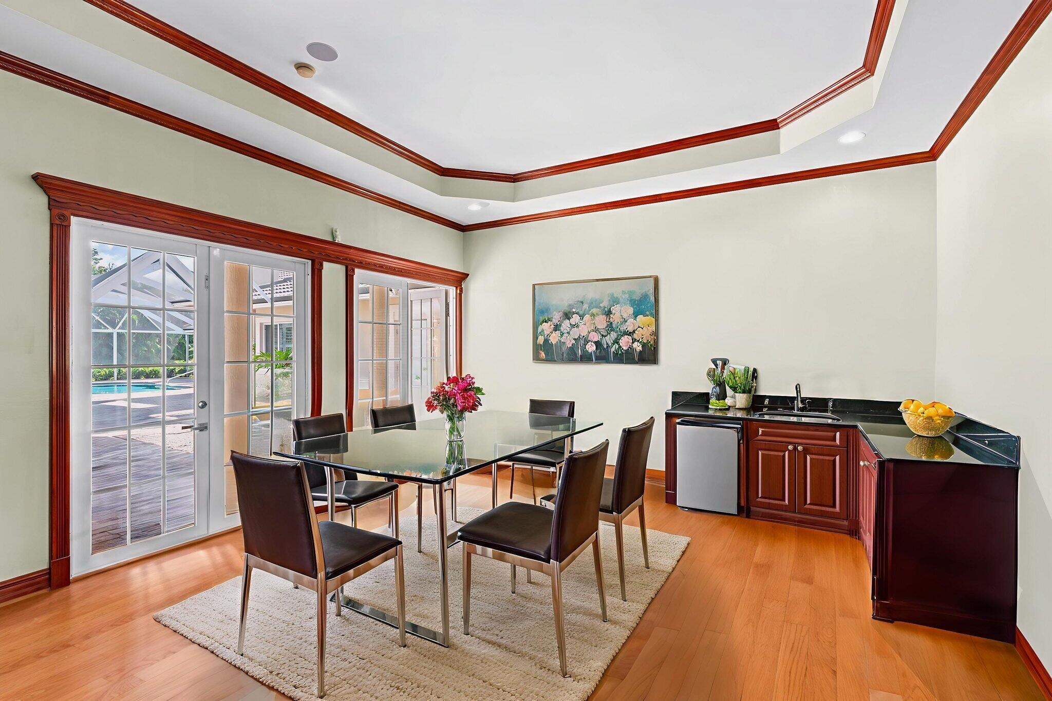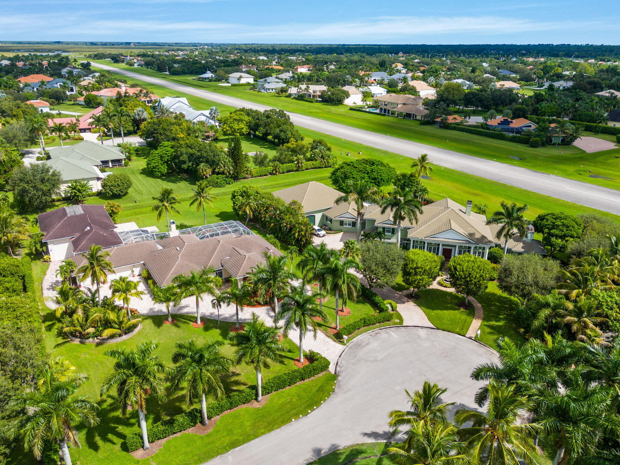 Experience unparalleled luxury and aviation lifestyle in Wellington's prestigious Aero Club, where elegance meets direct runway access. Just one lot away from the community's private, paved, and lighted 4,000-ft runway, the property provides unimpeded access for aircraft up to 12,500 lbs. gross takeoff weight, with fueling and additional parking available. A private 2,000 sq. ft. hangar, built in 2008, features impact-resistant windows and doors, a 50' x 40' interior with a 14-ft clearance bi-fold door to accommodate most jets and turboprops, plus an additional 10' x 14' door designed for RVs and buses. Engineered to withstand sustained winds of up to 140 mph, the hangar is a rare asset for pilots and aviation enthusiasts. This custom estate offers 7,240 total square feet of luxury living, including 3,707 sq. ft. under air: 3,289 sq. ft. in the main house and a 418 sq. ft. game room with a split AC unit that opens to the oversized screened patio. The home features 5 bedrooms (one currently used as an office) and 4 full bathrooms. The 2,651 sq. ft. patio includes standing lights and a 450 sq. ft. heated pool with a new heater, perfect for entertaining. A huge extended driveway provides ample parking, ideal for gatherings and hosting guests. The oversized 3-car garage (23 ft. deep by 34 ft. wide, featuring 8-ft. high impact-resistant doors) accommodates large SUVs, while the porte-cochere provides covered entry during inclement weather. Interior highlights include 8-ft. solid-core doors, plantation shutters, quartz countertops, two jetted Jacuzzis, upgraded factory-tinted impact sliders, central vacuum, and a gas fireplace. Additional features include a 2021 Roof, 250-gallon propane tank, 100-ft irrigation well, outdoor kitchen-ready hookups, newer AC units (under 4 years old), a newly serviced septic system, and new gutters around the main house and hangar. Built with superior construction featuring tie-beams, tie-columns, and a two-foot roof overhang, the home is enhanced by professional landscape lighting and a quiet cul-de-sac location for added privacy. Residents enjoy low HOA and unparalleled amenities, direct runway access, proximity to world-class equestrian venues, shopping, dining, and an A-rated school district. Dining room chandelier does not convey, and some photos have been digitally staged. All information provided by the broker and its representatives, including but not limited to pricing, square footage, calculations, and statistics, is deemed reliable but not guaranteed and is subject to errors, omissions, or changes without notice. Buyers and their representatives must independently verify all details.