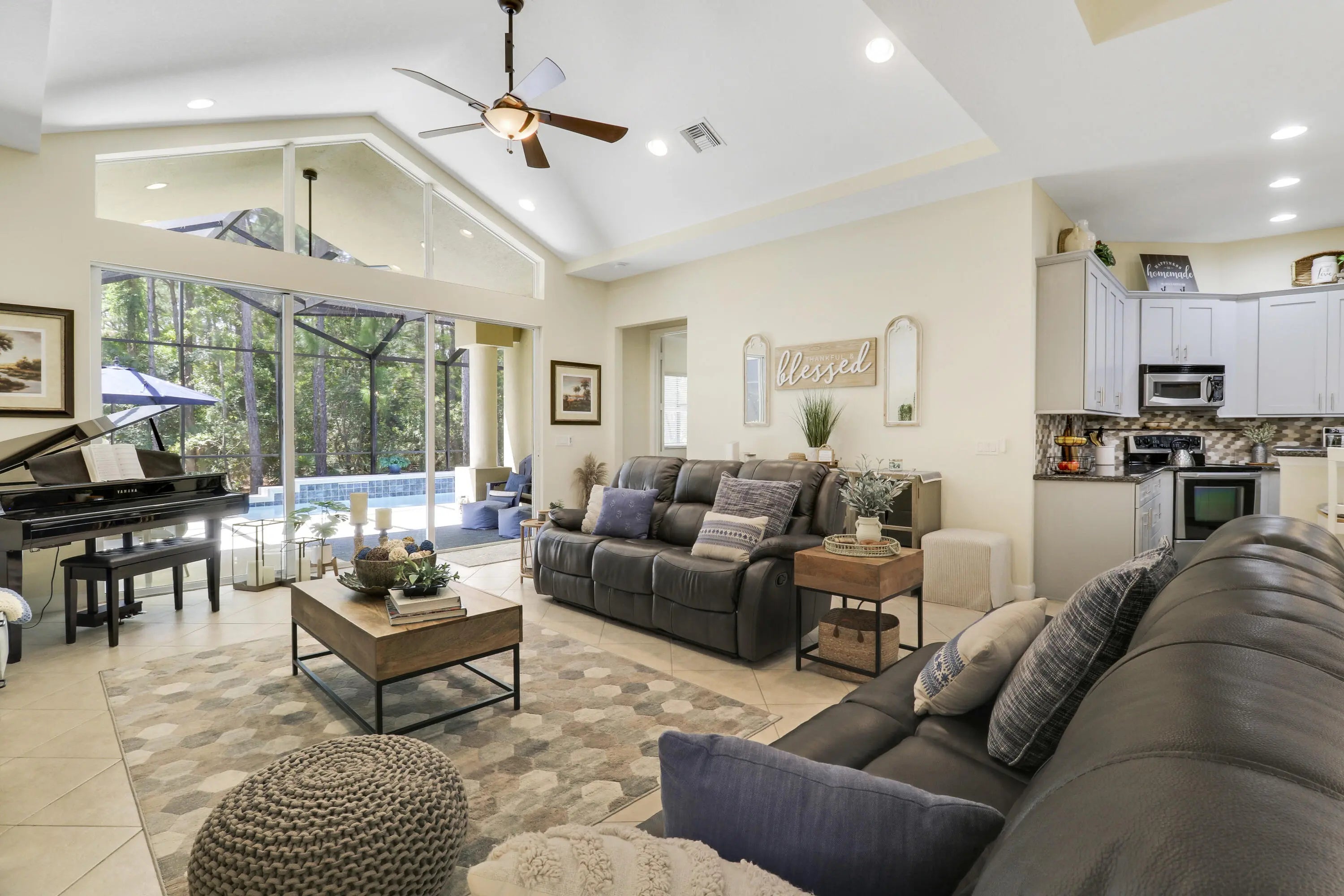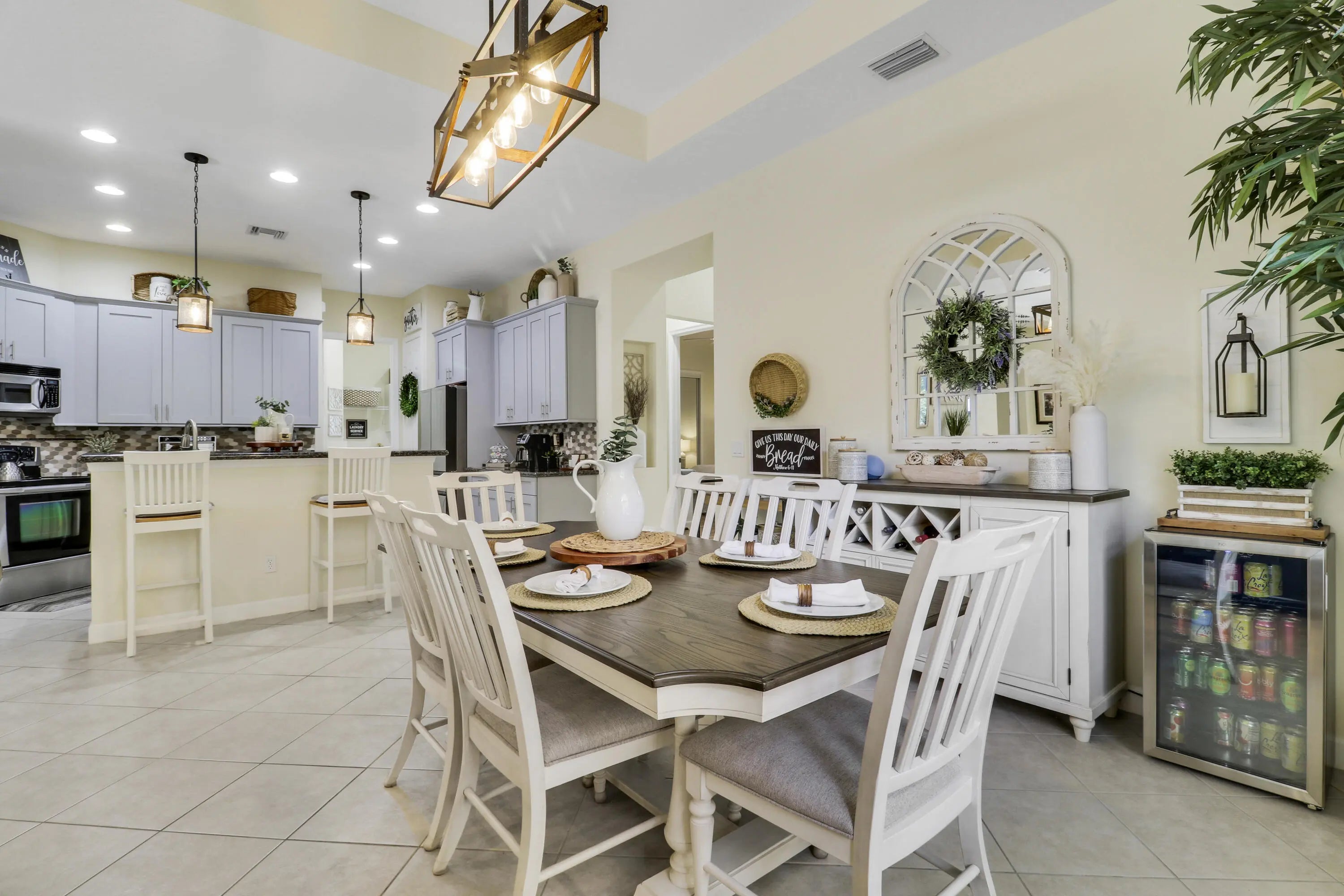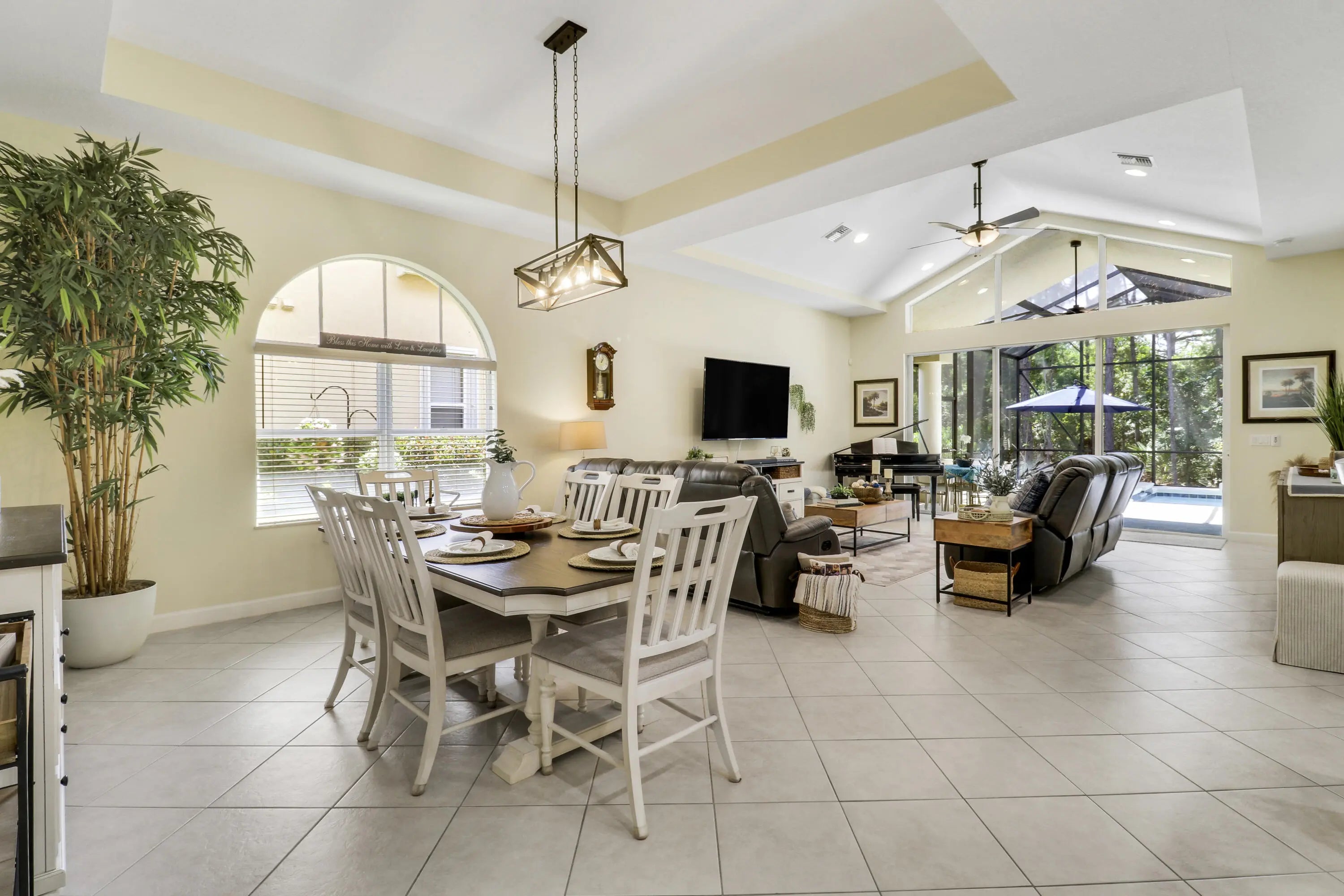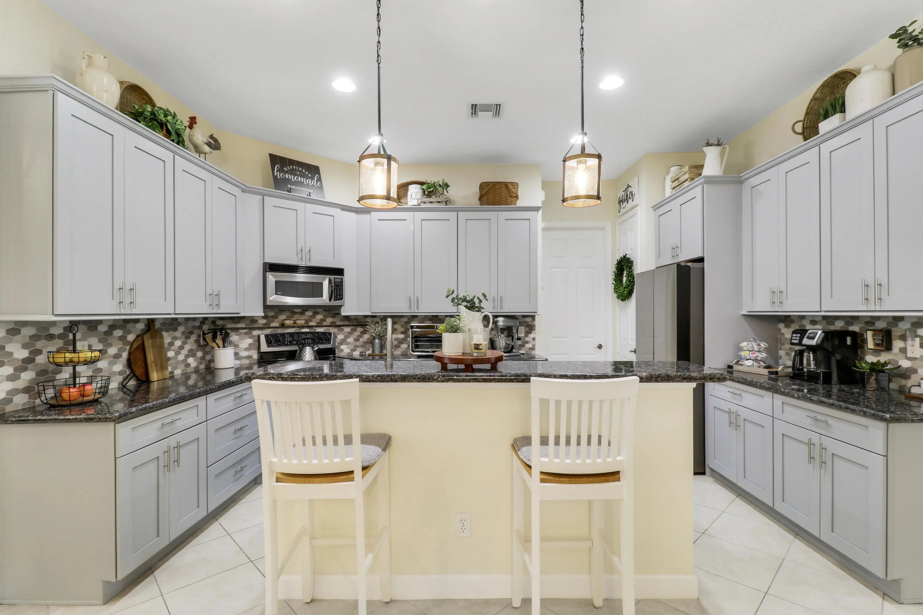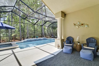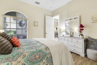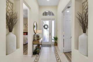 WELCOME HOME! Popular Fairview plan in PGA Village w/ NEW 2024 SALTWATER POOL & SPA! This 2BR+Den/2BA/2CG home has an open floor plan ideal for entertaining & modern living. Special features include tile flooring throughout, decorative glass entry front door, neutral interior paint, new refrigerator, washer, dryer and water heater, vaulted ceilings, updated cabinetry and more. The spacious kitchen features gray cabinetry, granite counters, tile backsplash, SS appliances, pantry closet and breakfast bar. Master Suite has large walk-in closets and a spa like ensuite w/ soaking tub, walk in shower and large vanity w/ dual sinks. The guest bedroom and den are both close to the hall bathroom. Spacious laundry room leads to the garage. The star of the show is the NEW POOL & SPA, built in 2024.