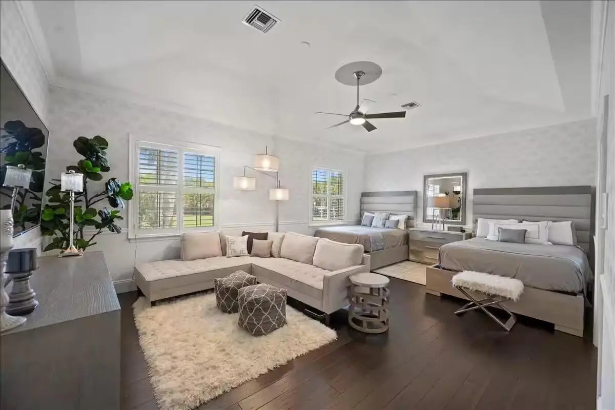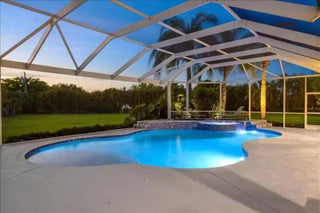 RENTED UNTIL MARCH 3! SHORT TERM/ DAILY/ WEEKLY/ MONTHLY RENTALS AVAILABLE. Experience elegance and luxury in this 5-bedroom family home in Wellington's prestigious Paddock Park II. Perfect for your seasonal getaway, the residence sits on 1.52 acres in a fully fenced property with lush palms, offering a resort-style heated pool, jacuzzi, and expansive outdoor areas. Inside, discover 4,000 sq. ft. of Southern charm with a gourmet eat-in kitchen featuring quartz counters, stainless steel appliances, and gas stove. The grand great room boasts a soaring 2-story ceiling, wood-burning fireplace, and custom built-ins. Additional highlights include a second sitting room, 3-car garage, hardwood floors, and two Level 2 Tesla charging stations. Golf cart distance to all equestrian venues.