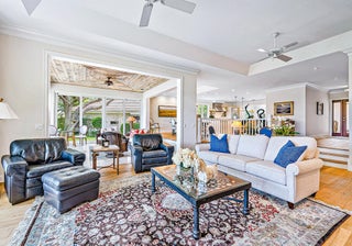 Sleek with an open floor plan, this amazing Prestwick model offers the best of everything. Clean lines and light-filled rooms make this home one of a kind. Oversized sliders capture lovely views of the 15th hole on the Village Course. The primary bedroom is large and the spa-like bath makes one feel like they are truly on vacation. Two guest bedrooms with ensuite baths are perfect for entertaining family and friends. If you would like to write a note or want to browse the internet, the light and bright office located adjacent to the kitchen is just the place to do it. A two-car garage with golf cart storage completes the picture. Steps to the Ferland pool. Shopping, wonderful restaurants and beaches all within a short ride.