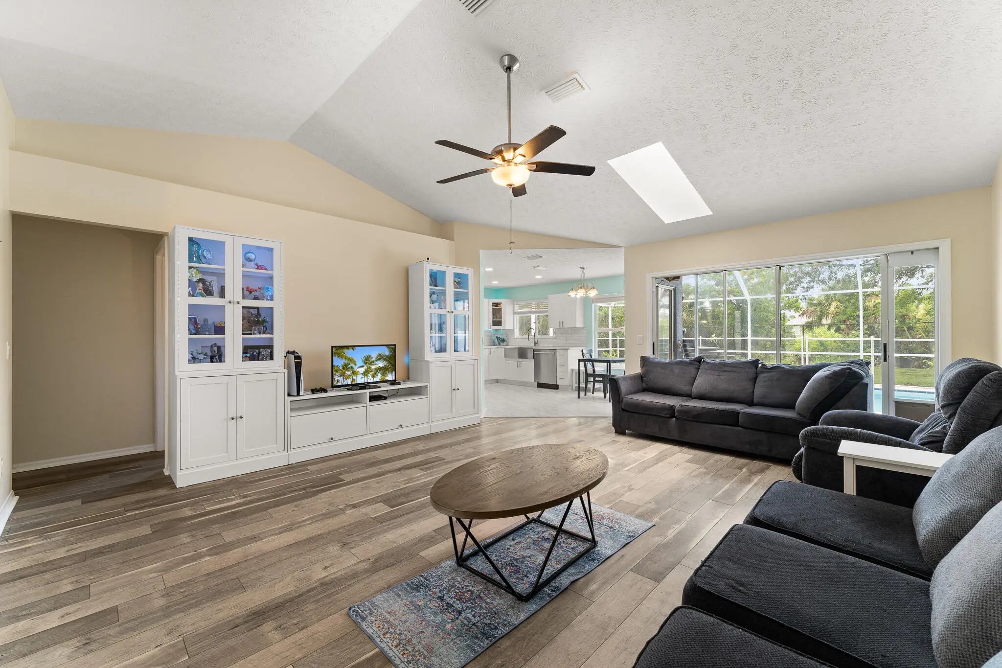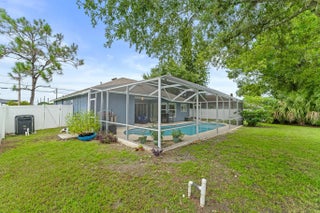 Discover this beautifully UPDATED 3 bedroom, 2 bathroom, 2 car GARAGE home with nearly 1,700 TOTAL SQFT, and a SCREENED-IN and HEATED POOL facing SOUTH to get all-day fun-in-the-sun! And a CABANA BATH to keep the wet swimmers from soaking your floors! The completely FENCED-IN backyard backs up to a very wide drainage canal/creek keeping away any future rear neighbors, maintaining your privacy and peace. Large main bedroom CUSTOM WALK-IN CLOSET! Positioned between I95 and the FL TPK, you can get almost anywhere in no time! Request your private showing, Today!
