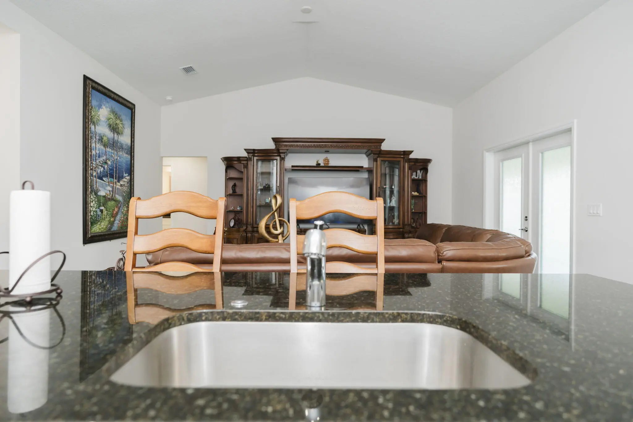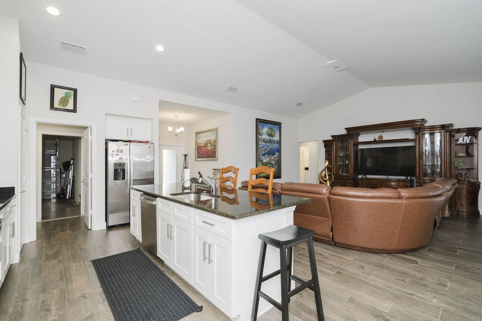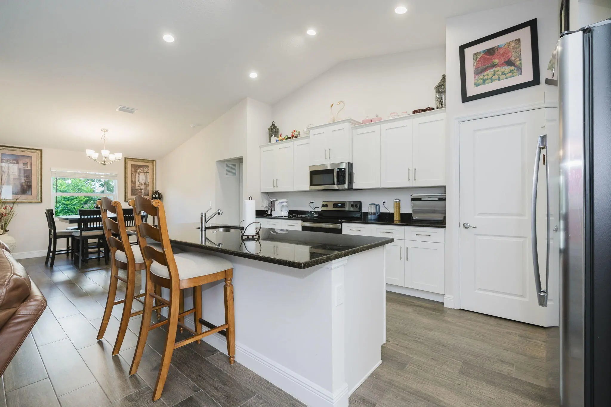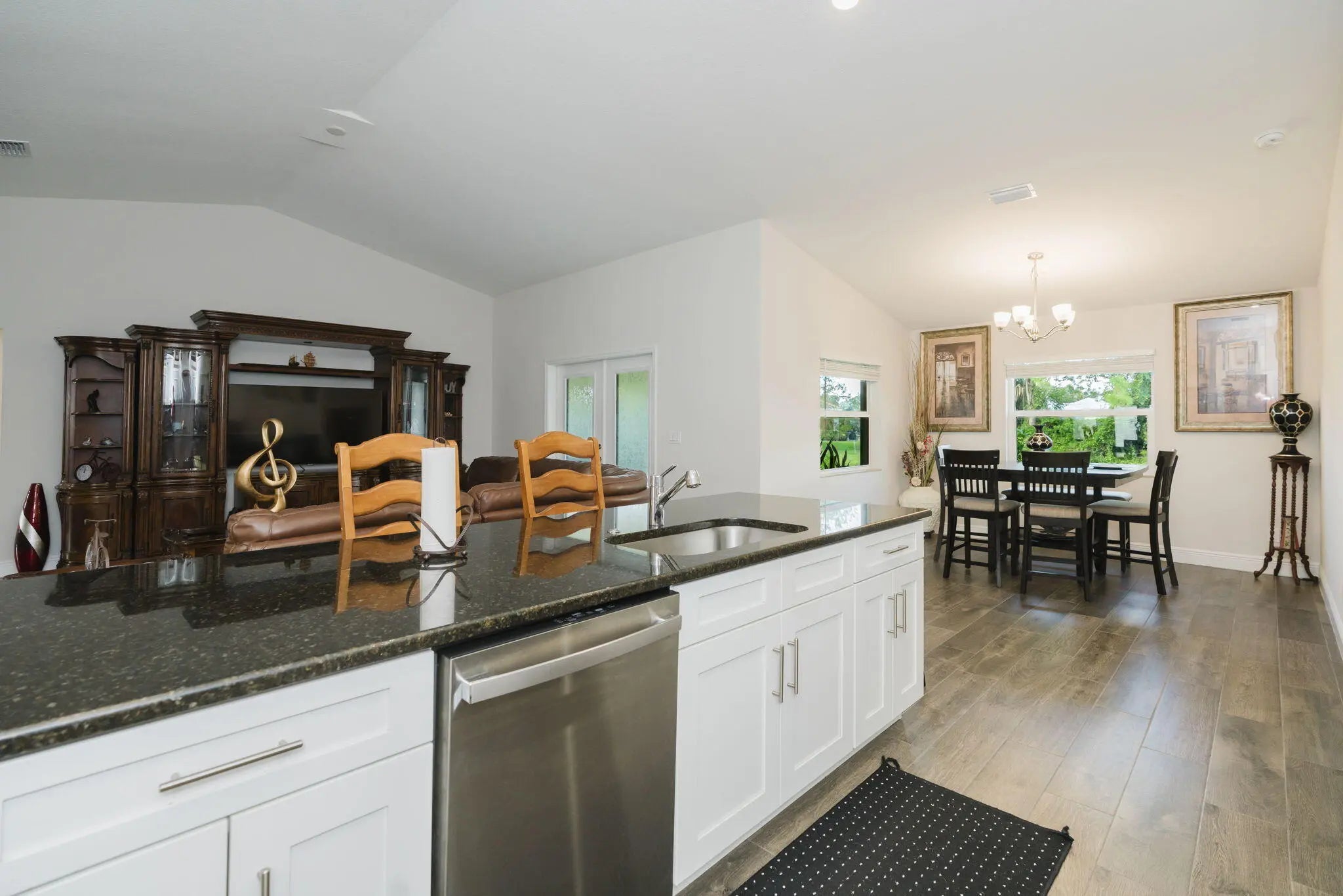 Experience the perfect balance of modern luxury, energy efficiency, and everyday comfort in this stunning 2023 Synergy-built CBS home located in the peaceful Gatlin Pines neighborhood. Offering 4 bedrooms, 2 bathrooms, and 2,012 square feet of living space, this thoughtfully designed residence features impact-resistant windows and Icynene spray foam insulation for enhanced efficiency, comfort, and peace of mind. Step inside to an expansive open-concept layout highlighted by soaring volume ceilings, wood-look tile flooring, and abundant natural light. The contemporary kitchen showcases crisp white cabinetry, dark granite countertops, a spacious pantry, and a social island that seamlessly connects to the dining and living areas perfect for entertaining and everyday living. The desirable