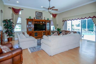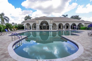 FURNISHED SEASONAL RENTAL: This beautiful single story 4/3/3 plus office home offers a private oasis with a sparkling pool and peaceful lake views. Perfect for relaxation and entertaining, the open layout blends indoor comfort with outdoor living, creating a quiet retreat you will love coming home to. Guard gate. Internet, cable TV, lawn care, and pool service included. The HOA has a community pool, playground and walking areas.
