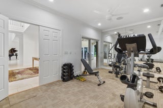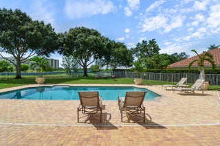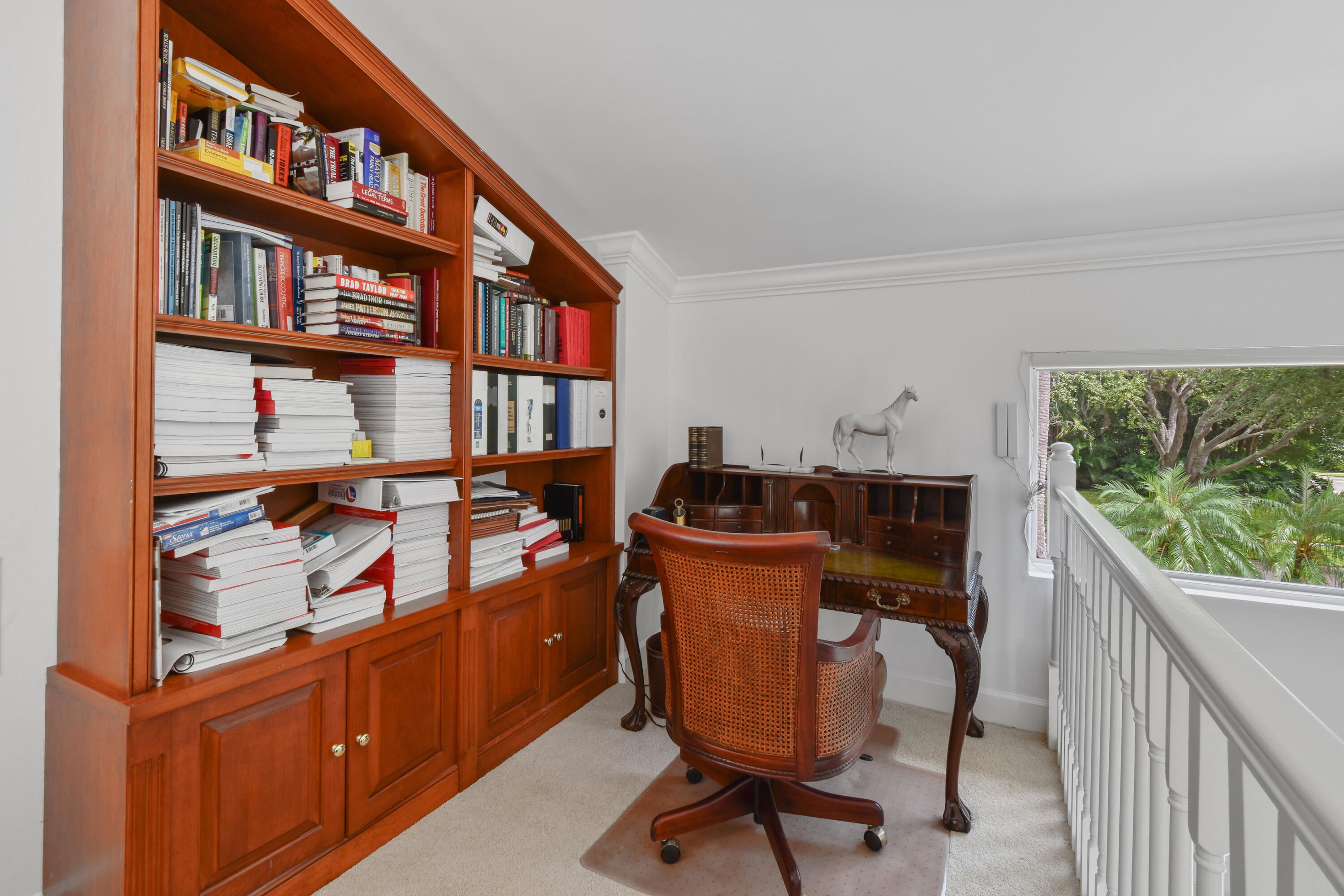 A private sanctuary on an oversized homesite, this custom residence blends timeless architecture with resort-style comfort. Beyond the manned gate, a circular paver drive leads to a light-filled 4BR/3.5BA home with 4,661 SF of gracious living--formal living and dining, a generous family room, and a wet bar--all beneath volume ceilings with a fireplace and French doors opening to the pool. Freshly painted interiors provide a crisp, move-in-ready backdrop.within 10 minutes to palm beach and PBI airportThe open layout kitchen is designed for effortless hosting: expansive granite prep surfaces, refined wood cabinetry, an island cooktop, stainless double wall ovens, stainless French-door refrigerator, tumbled-stone backsplash, and direct flow to a walk-in pantry and oversized laundry/utility room with sink and storage. Just off the entry, a main-level den behind French doors, currently outfitted as a home gym, offers flexible use as a private office, wellness room, or play space. A main-level full bath functions as a true cabana bath with direct pool/patio access, perfect for seamless indoor-outdoor living. A true owner's retreat, the primary suite is exceptionally large, anchored by a generously proportioned sitting area with ample space for full-size seating and additional furnishings. The spa-sized bath features dual vanities with a make-up station, soaking tub, separate shower, and walk-in closets. An open loft adds flexible living space, while secondary bedrooms are well-scaled in a split layout for privacy. Outdoor living is the showpiece: a sparkling pool, expansive covered loggias, and an upper sun terrace with wrought-iron railing, all set against a tranquil canal-side backdrop, perfect for quiet mornings or festive evenings. The convenient cabana bath keeps pool days easy and mess-free. Notable upgrades include complete impact glass, central & zoned A/C, a full-house 60kW generator, and a 2-car garage. Within the coveted President Country Club / Presidential Estates, you're minutes to beaches, dining, shopping, cultural venues, and PBIdelivering space, security, and classic Palm Beach style.
