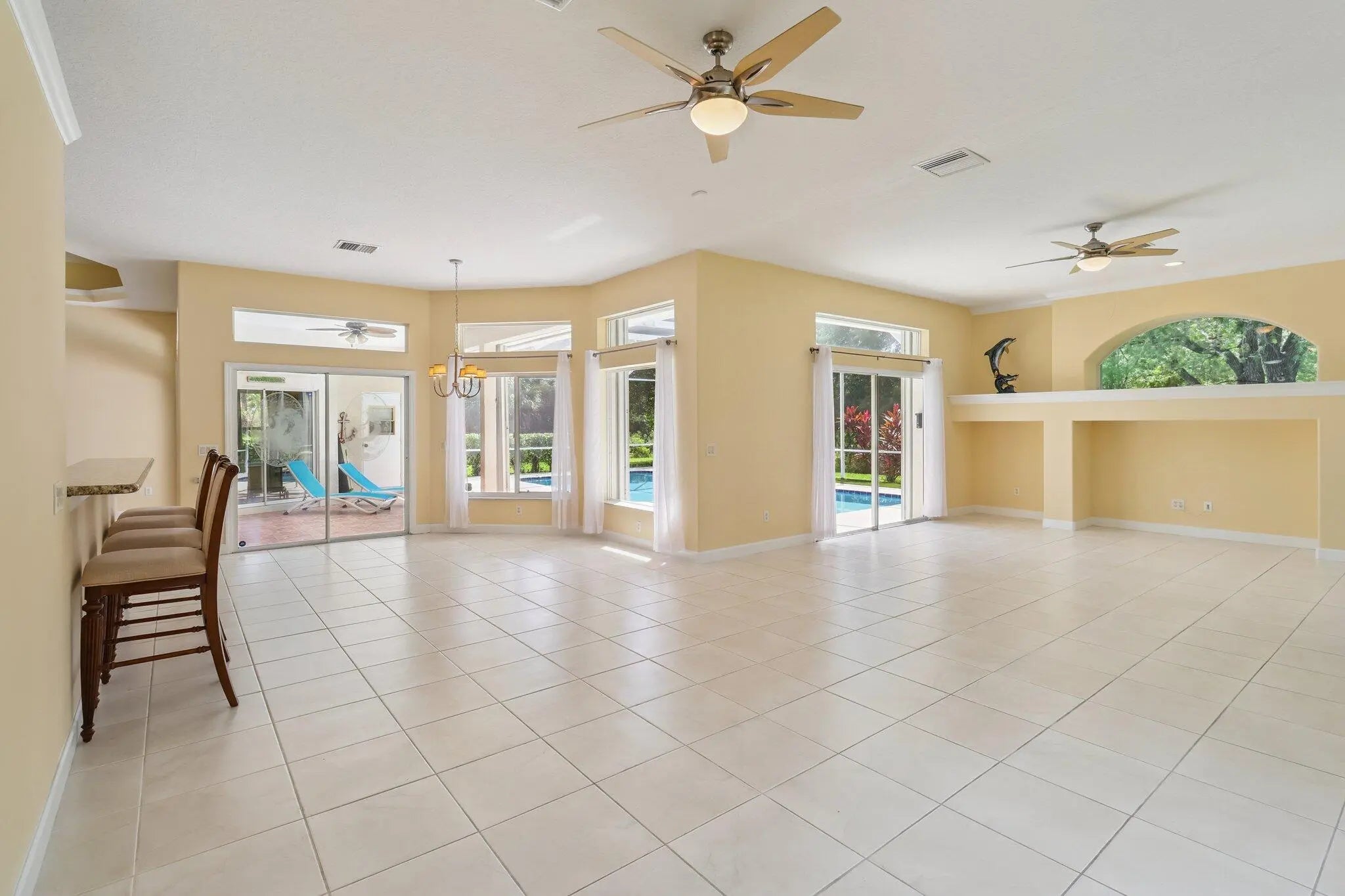 Major upgrades - NEW ROOF, 2-stage AC unit, ductwork, HWH, storm windows, new duct work and electric heat pump for newly resurfaced pool, for year-round enjoyment. Location, location, location! Rare private corner lot backing to a lush greenbelt in gated golf community Country Club Estates! CBS 3BR/2.5BA enclosed pool home. Nearly 2,600 SF of light-filled living with a split plan, soaring ceilings, open kitchen featuring granite counters, newer SS appliances, pantry, breakfast nook and snack bar, ready to make your own! Formal & casual dining spaces and generous family room make entertaining easy. Conveniently located near golf, shopping, dining, Mets, & 95. Schedule your private showing today!