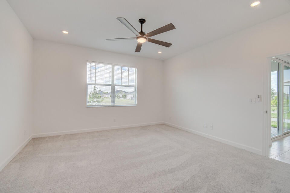 Charming 3/2/2 corner villa with serene park-like views. Spacious floor plan with neutral color palette flooded with natural light. Ceramic tile throughout living areas. Beautiful white kitchen cabinets with elegant quartz counter tops and stainless steel appliances including a gas stove. Enormous walk-in pantry. Other features include smart home features, an abundance of storage space, impact windows, and an open and covered patio. Gated community with resort style amenities. Excellent, A-rated schools and brand new, Saddle View Elementary .