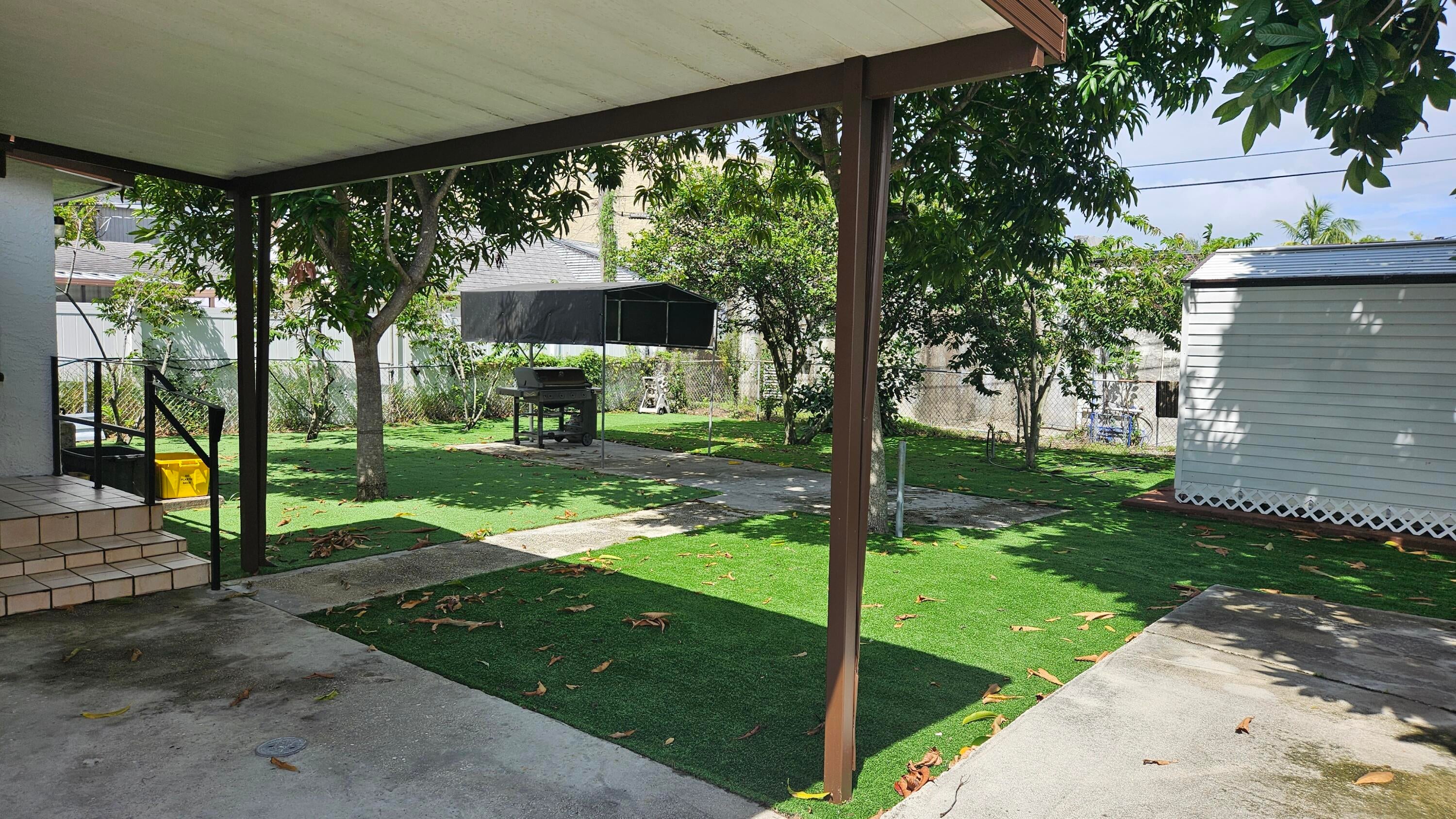 This charming home has everything you need - inside and out! The home features 3 bedrooms, 1 bathroom, LARGE kitchen, easy to maintain yard. plenty of off-street parking, LARGE fenced yard with a storage shed, and a grill area ready for you to entertain guests! Tropical fruit trees abound! The foyer can double as an office offering extra space. Freshly painted interior with a remodeled bathroom, this home is available for immediate move in. Approval within 24 hours - no wait time and NO HOA! Be close to downtown West Palm Beach without the hustle and bustle! Schedule your tour today!