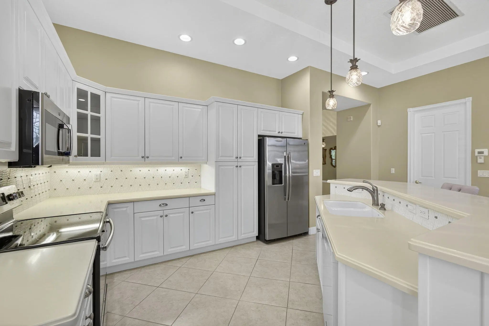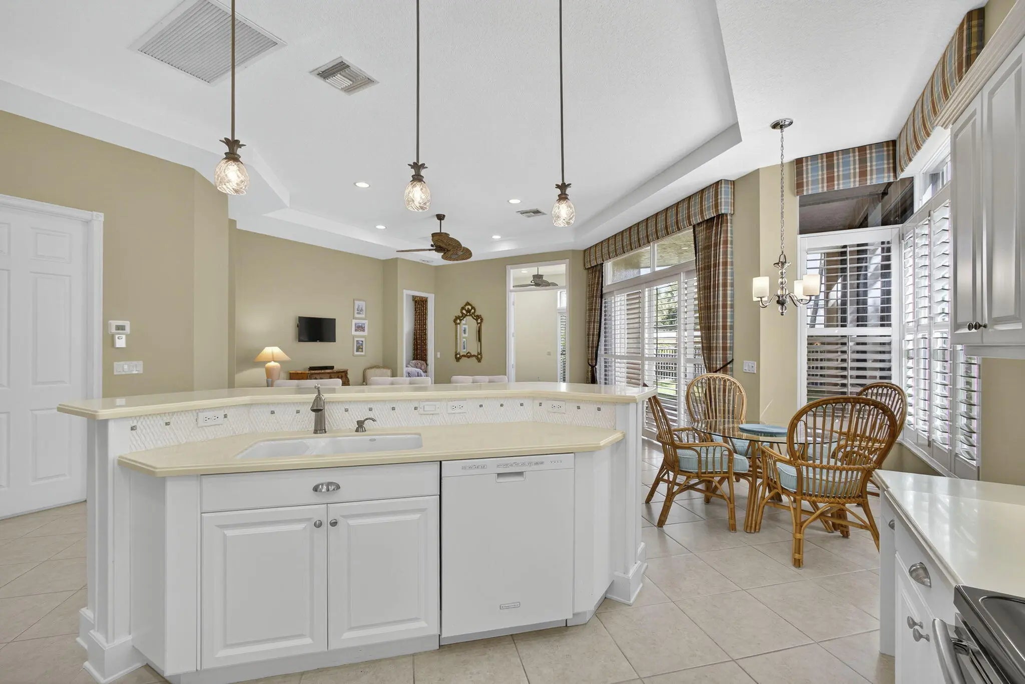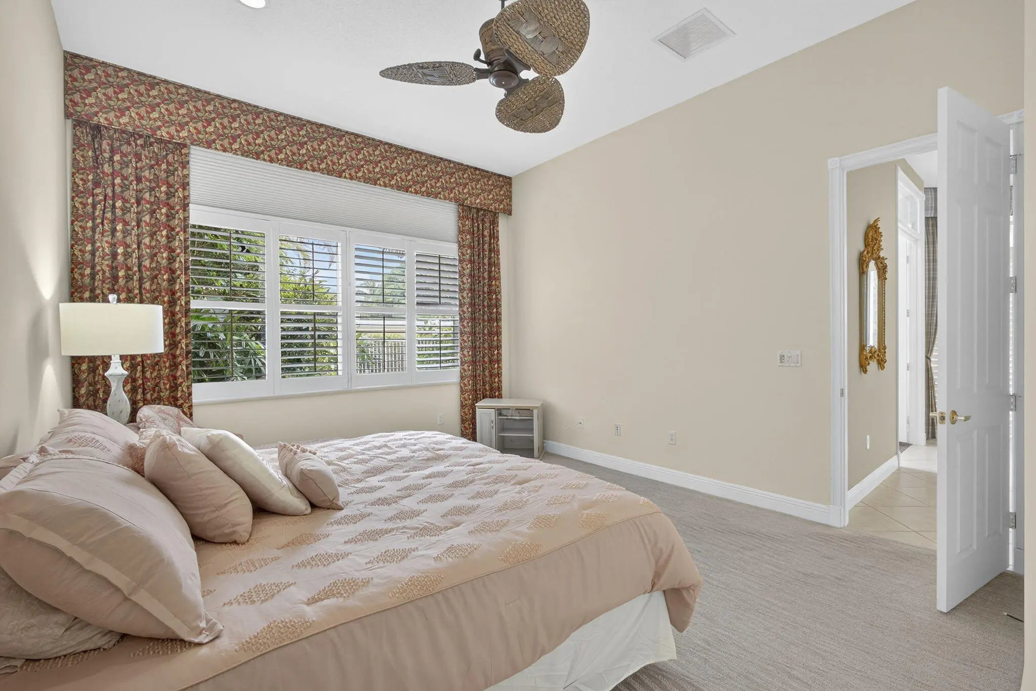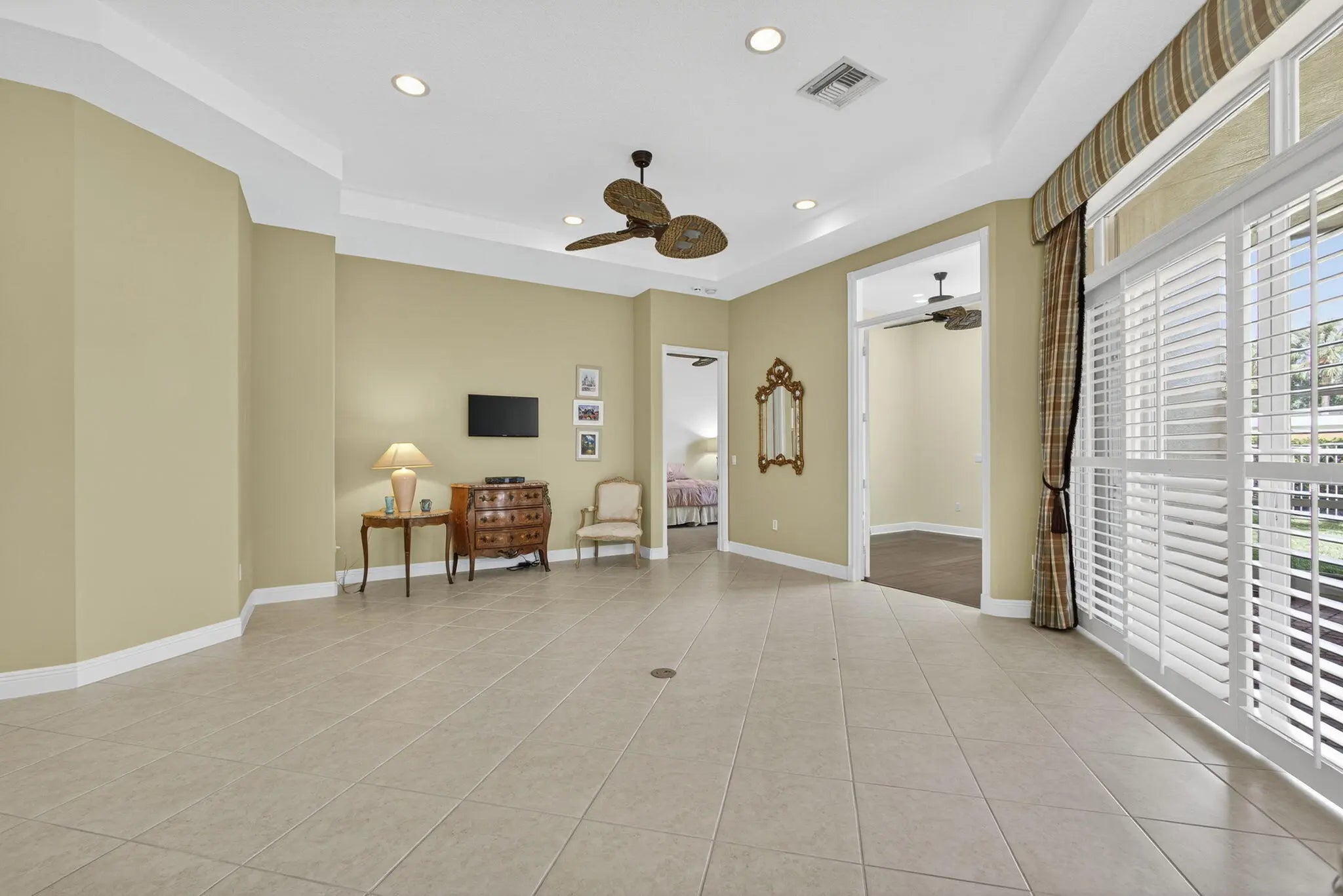 Great opportunity to own a stunning and private Coronado model situated on an oversized fenced lot in desirable Buena Vida! As you enter this impeccable home through double glass front entry doors you'll see it's move-in ready, has many extras! This home boasts NEW A/C w/WARRANTY (2024), ACCORDION HURRICANE SHUTTERS, Plantation Shutters throughout, custom drapery, a den w/ laminate wood flooring & French doors. The den can also be easily converted to a 3rd bedroom w/ easy access through a sliding glass door to your private backyard. This home also features tile on the diagonal throughout, strategically placed custom mirrors in the foyer, tray ceilings, rounded corner beads and abundance of high-hat lighting keeping this home light and bright. The upgraded formal dining room offers ...