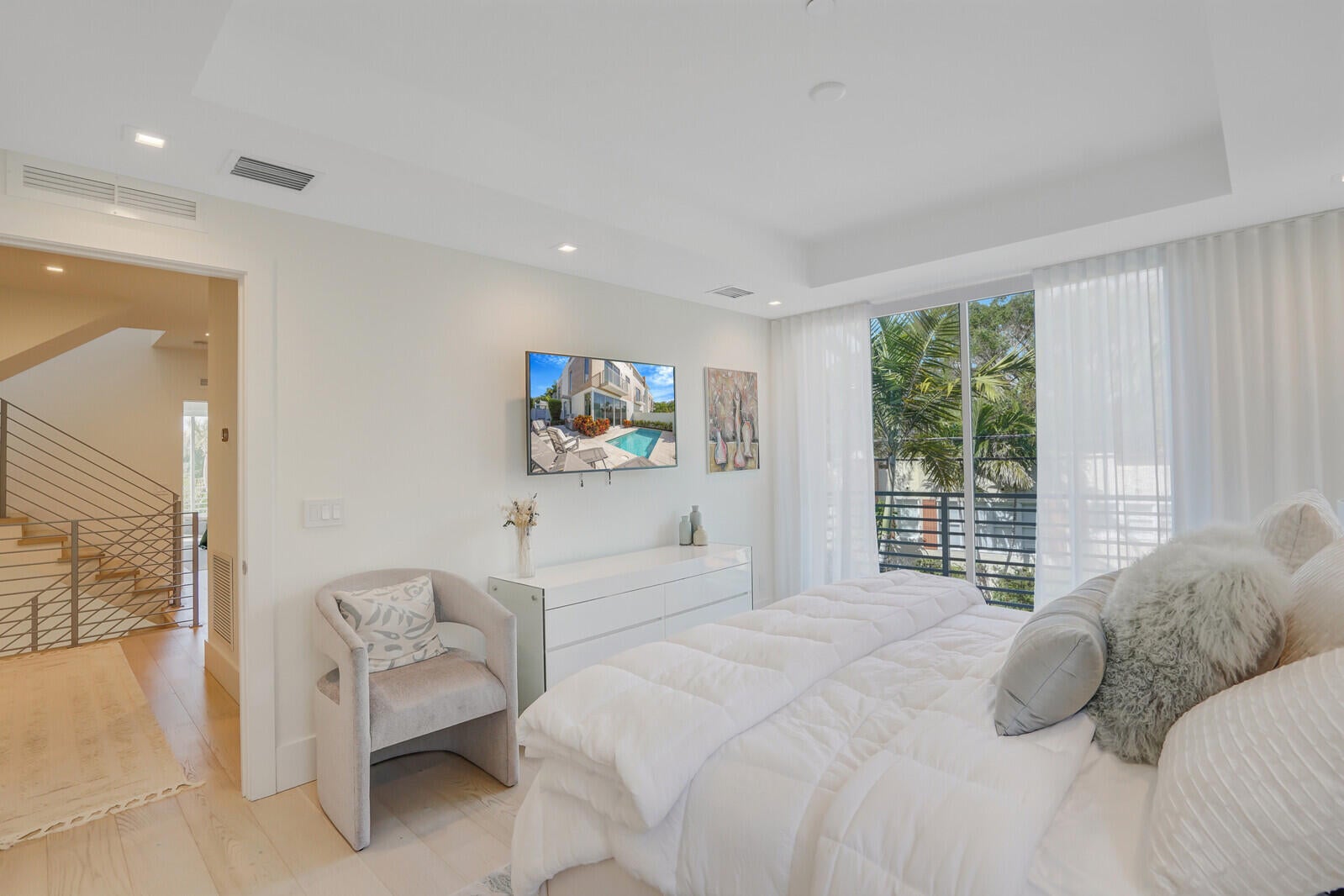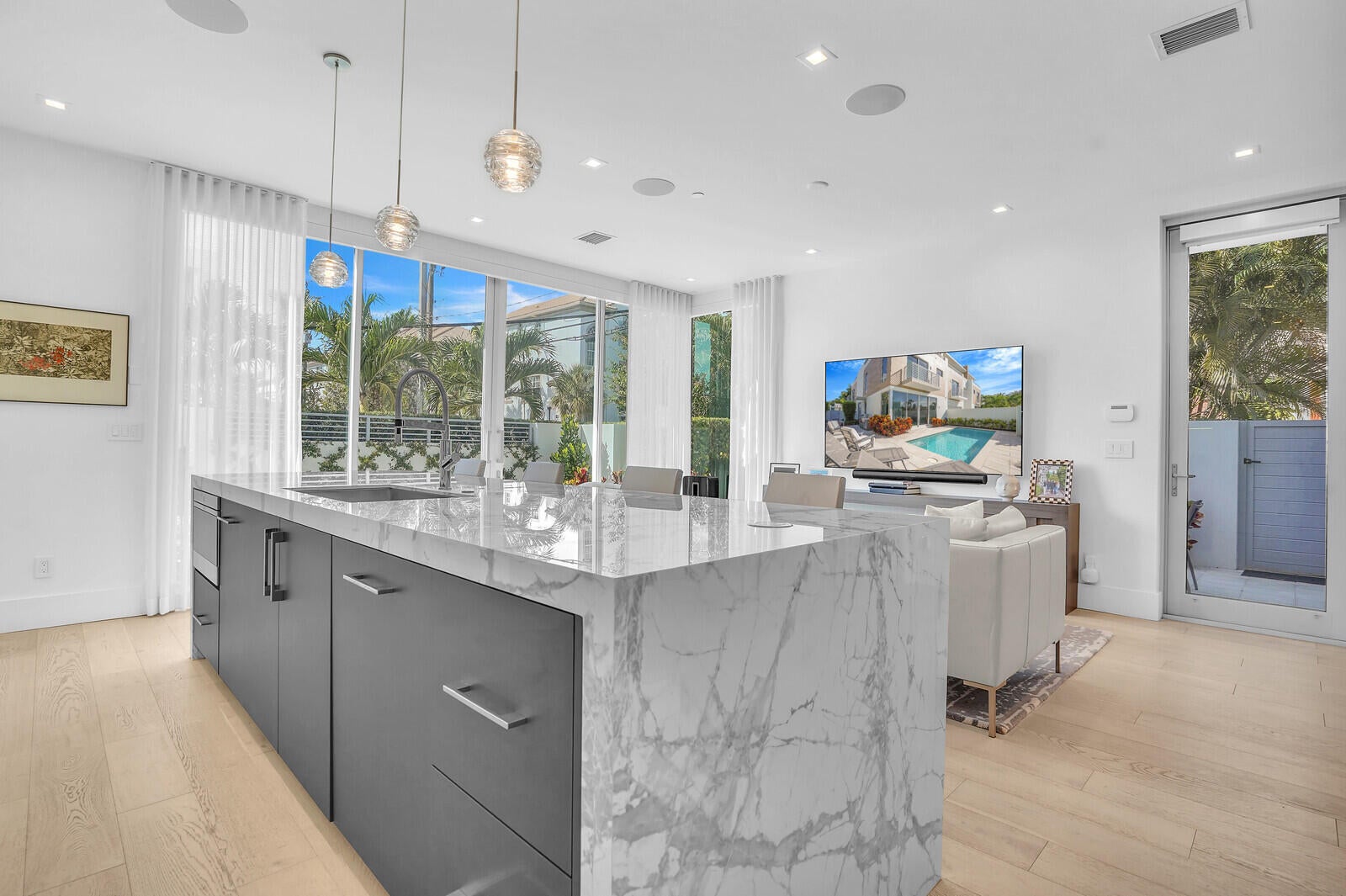 Experience the perfect blend of sophistication and convenience in this tri-level townhome, located just two blocks from the boutiques and restaurants of Atlantic Avenue and within walking distance of the intracoastal and ocean. Featuring 3 bedrooms plus a loft, 3.5 baths, a private elevator, and a two-car garage, the residence offers 2,500 SqFt of beautifully appointed interiors. Designed for both relaxation and entertaining, this home showcases a large rooftop terrace with sweeping 270-degree views, while the main level features a beautifully landscaped outdoor living area with a south-facing private pool, dining space, and a fully equipped summer kitchen. Completed in 2021 with uncompromising attention to detail, it blends modern luxury with timeless style--and is now ready to be yours