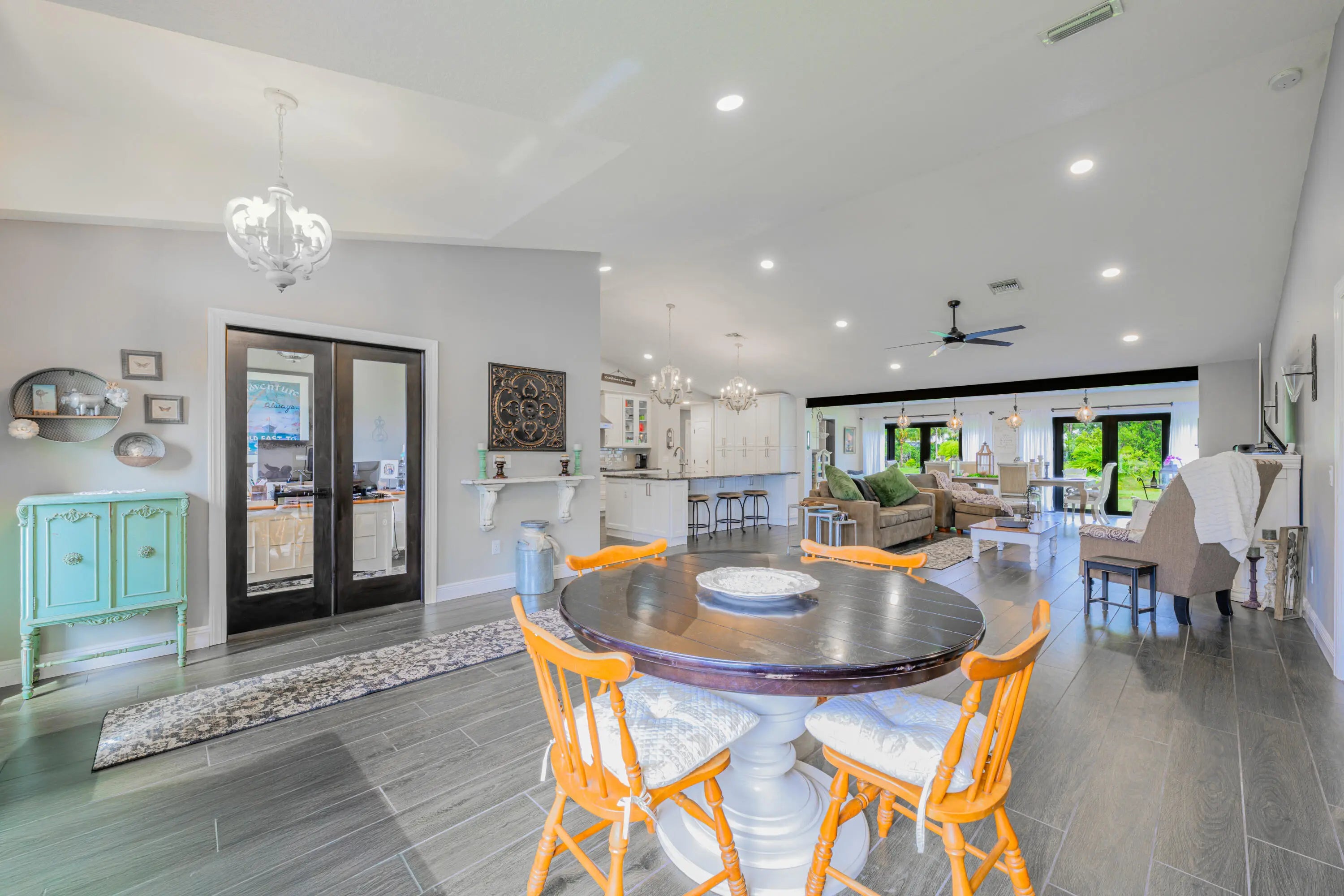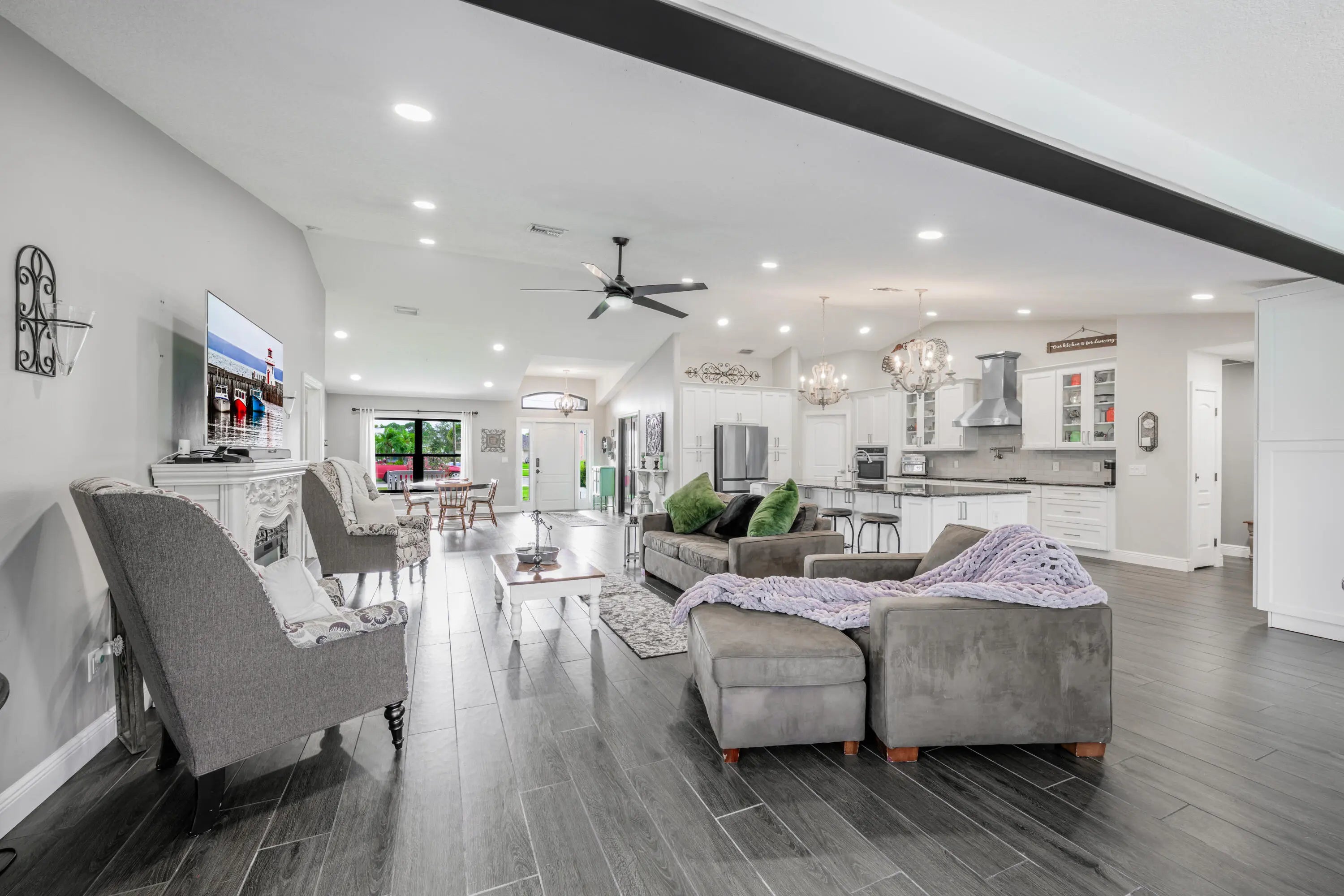 Welcome to this stunning 5-bedroom + den, 3-bath home with 3,110 sq ft on a quiet cul-de-sac in the desirable area of Torino! This beautifully updated property features impact windows and doors, a 2022 metal roof, 2024 plumbing and 2018 wiring for modern comfort and peace of mind. The open-concept floor plan showcases wood-look tile floors, high ceilings, and a spacious great room that flows into a gourmet kitchen with granite countertops, stainless steel appliances, and 9 feet island.